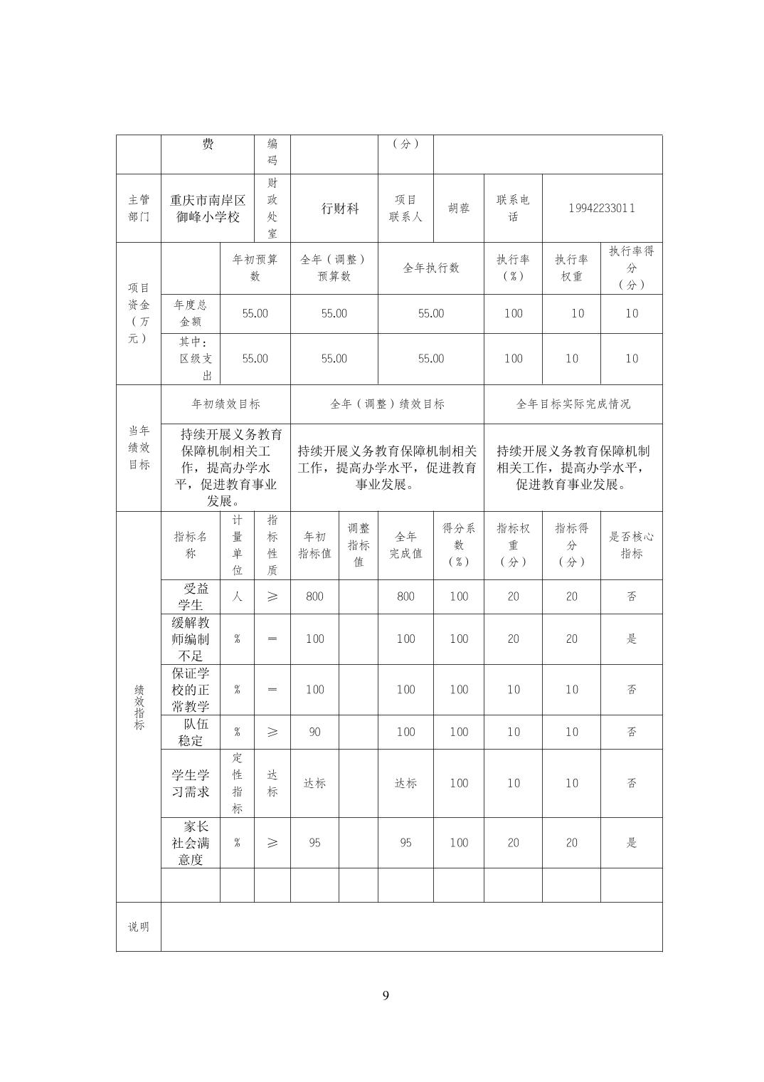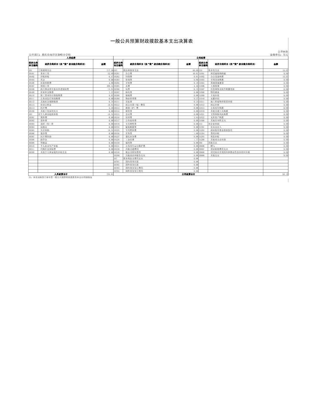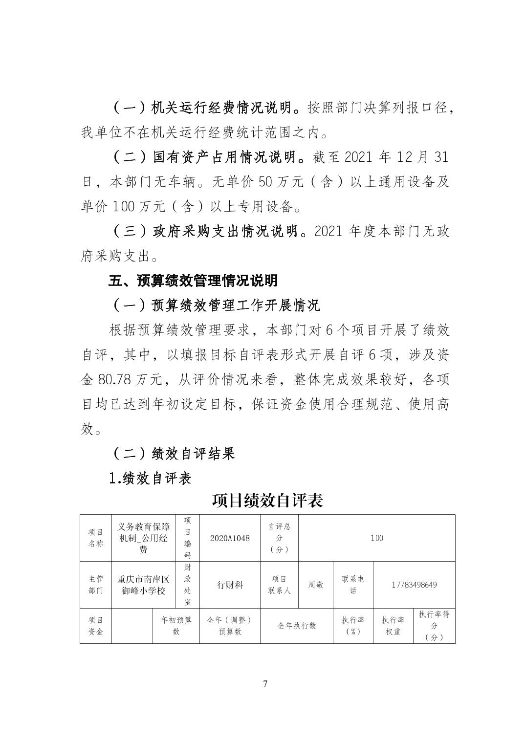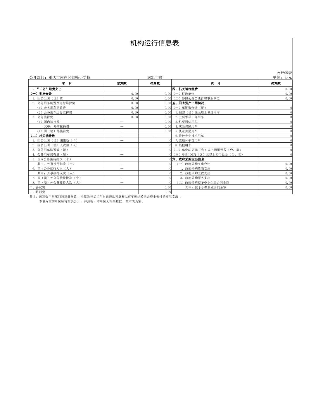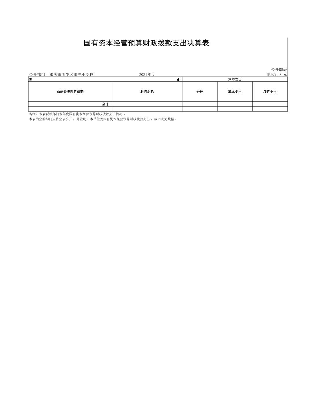 重庆市南岸区御峰小学校2021年决算