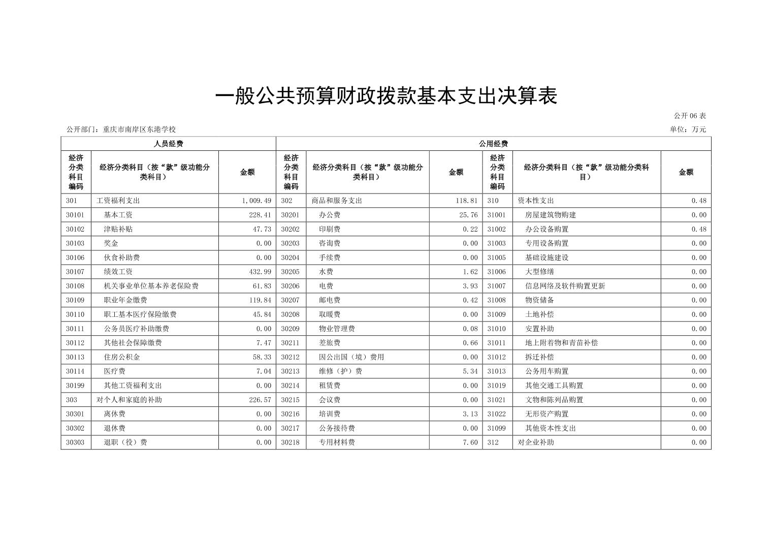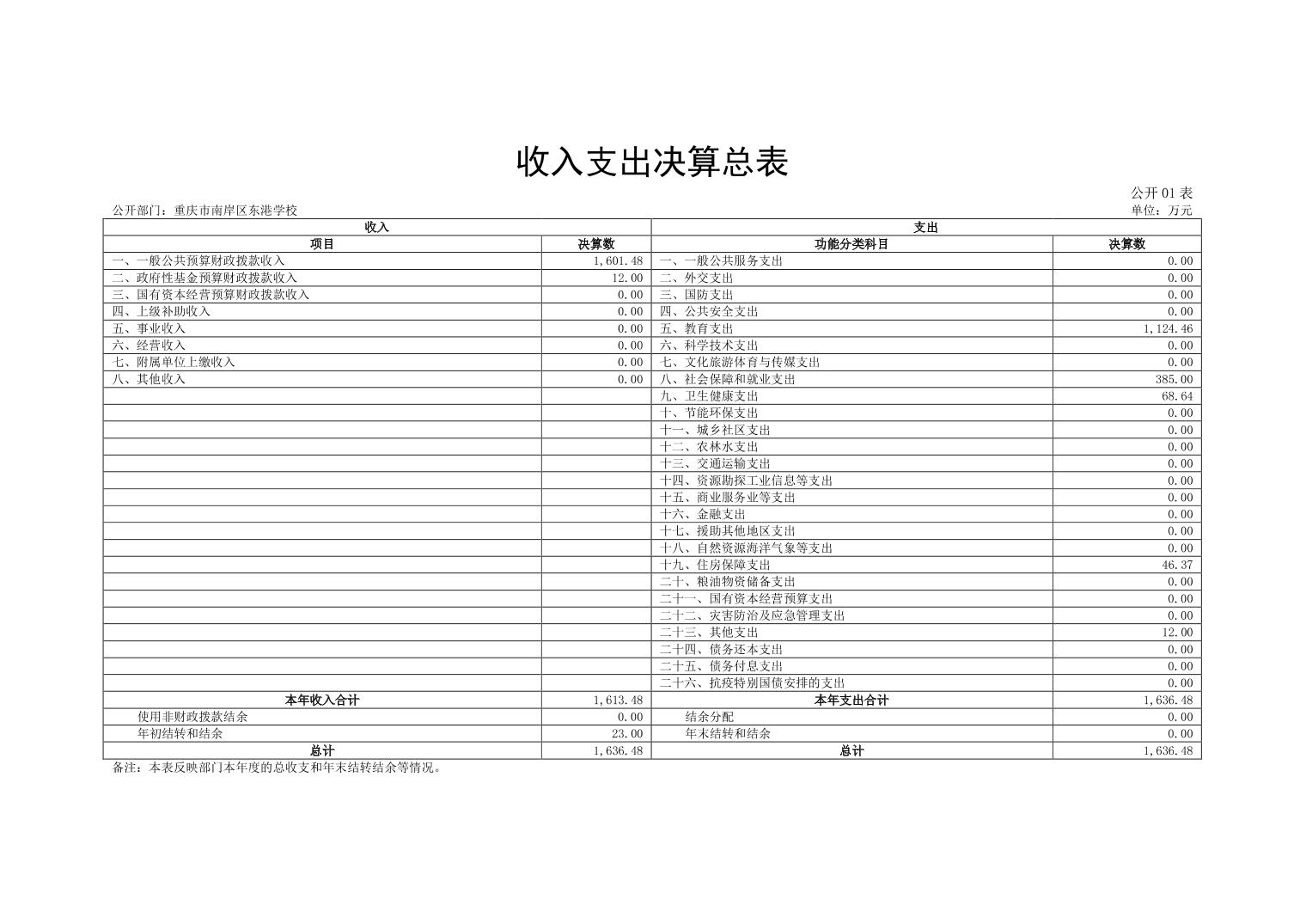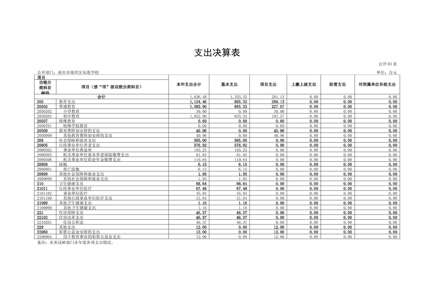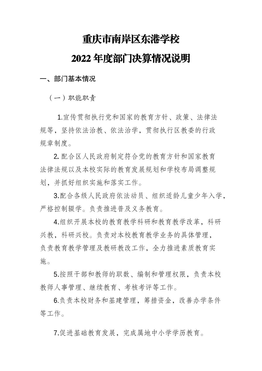 重庆市南岸区东港学校2022年度部门决算情况说明