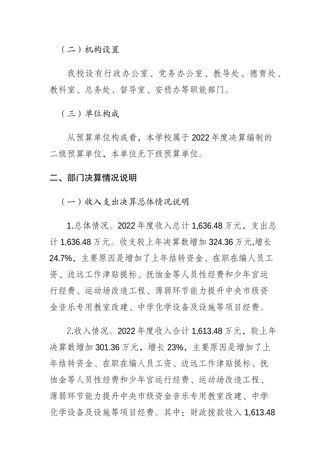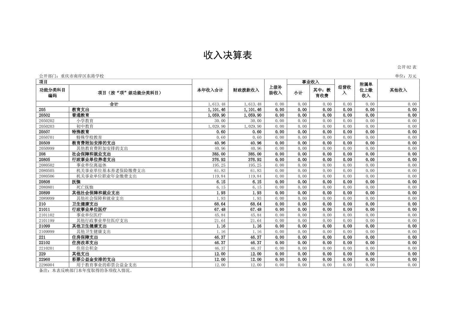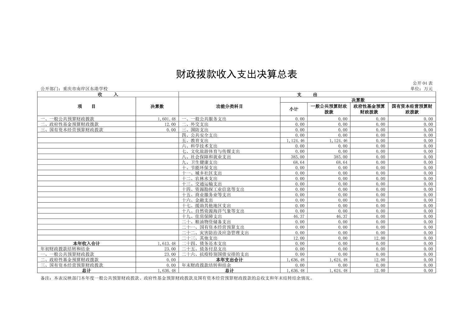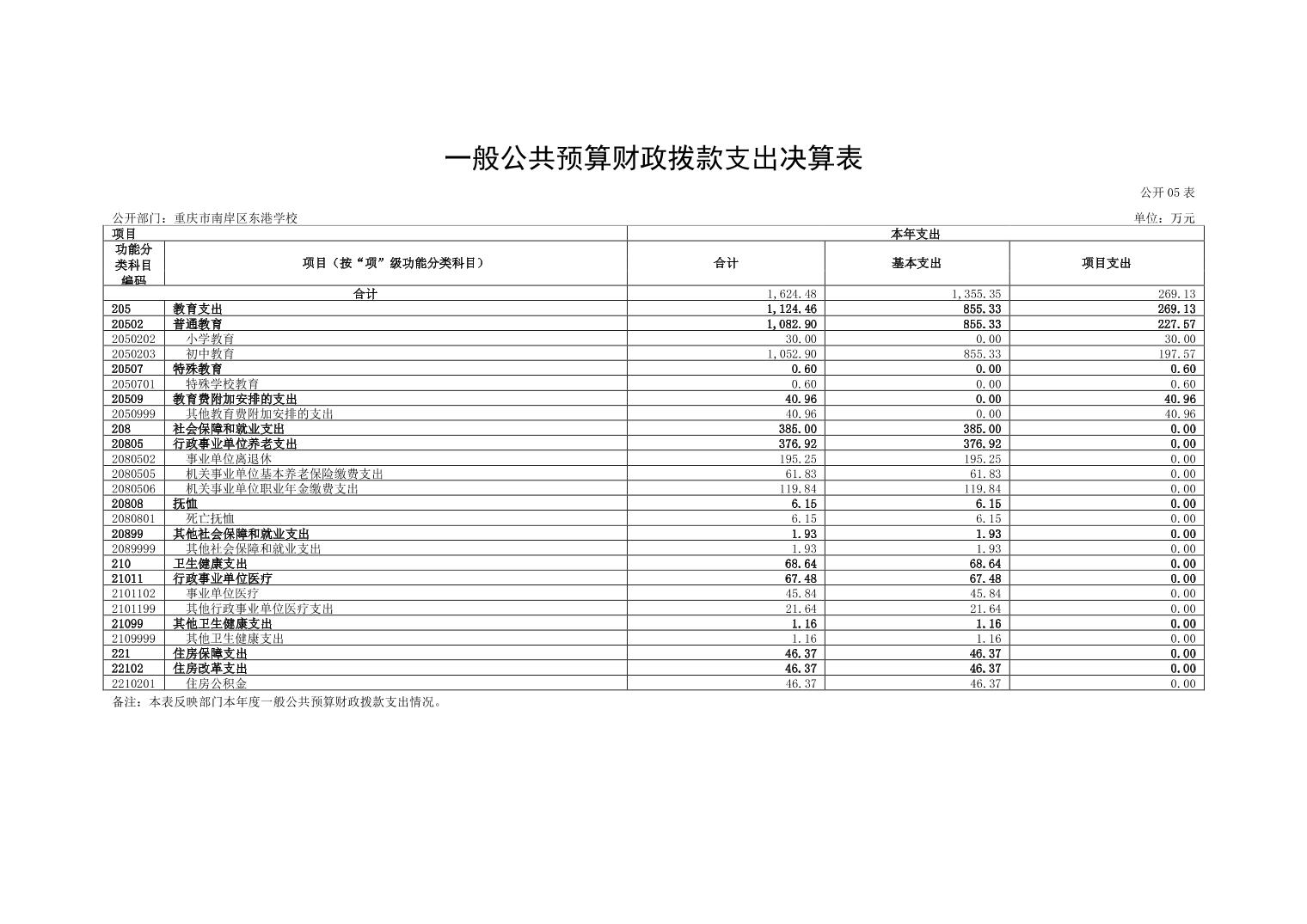 重庆市南岸区东港学校2022年度部门决算情况说明