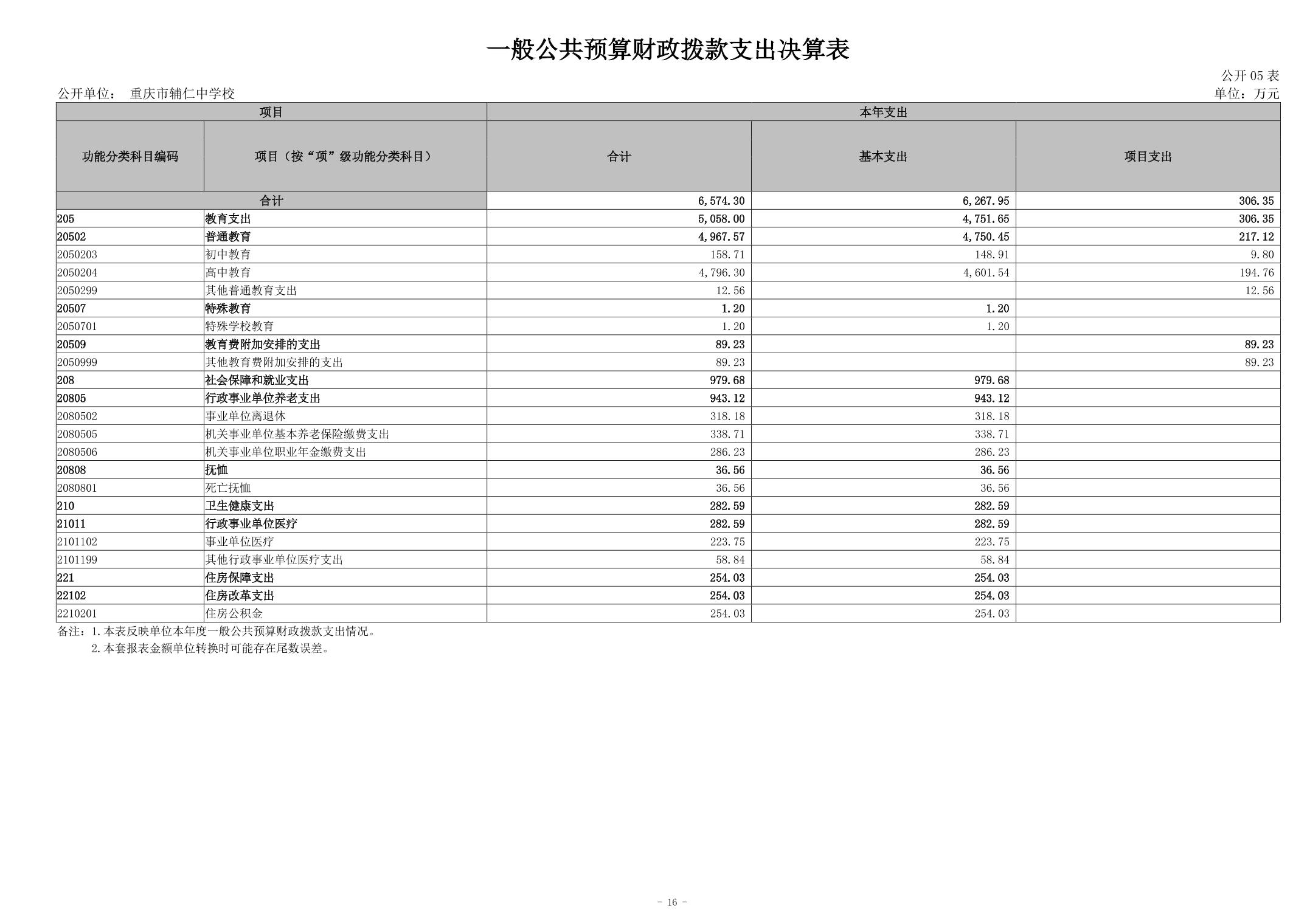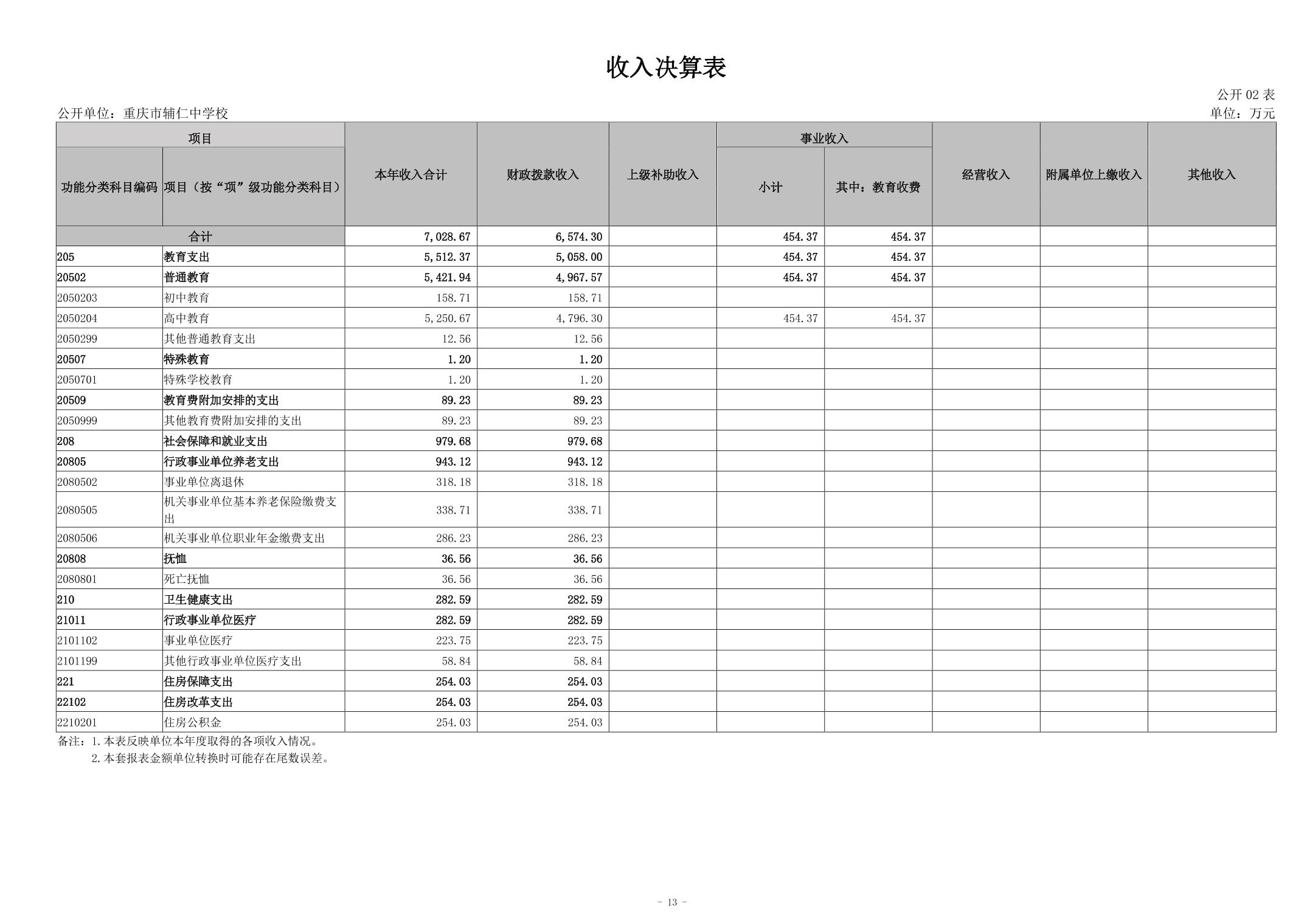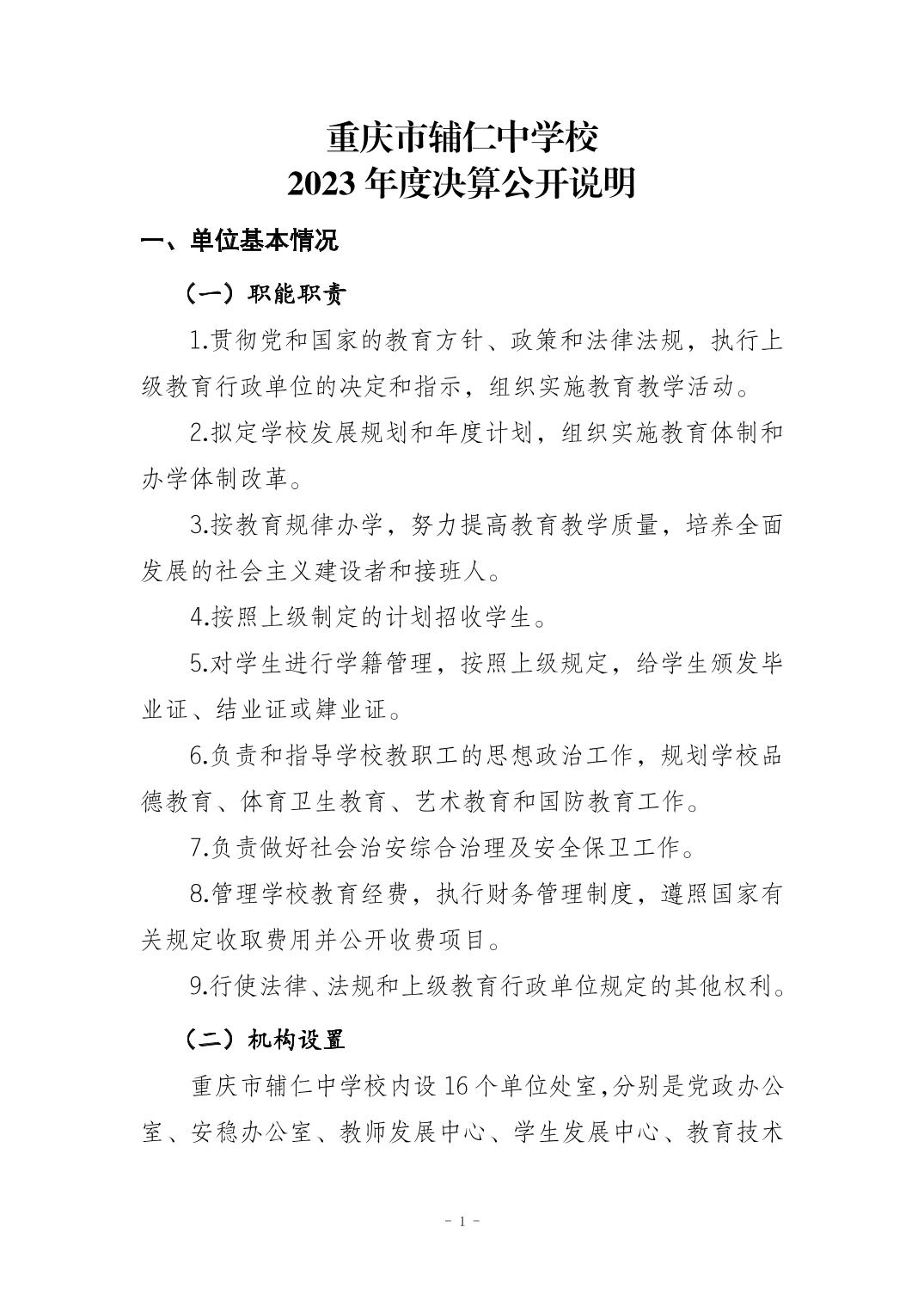 重庆市辅仁中学校2023年度决算公开说明