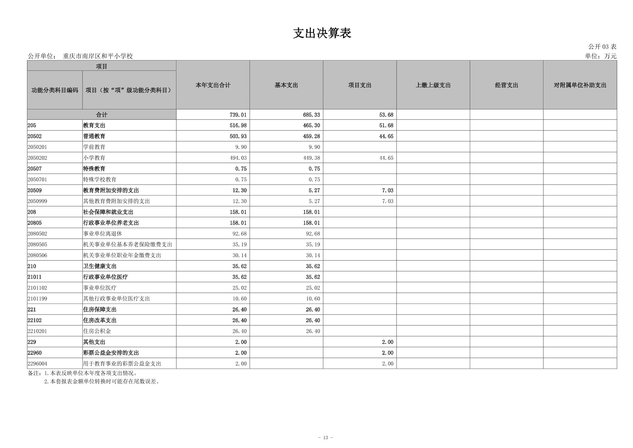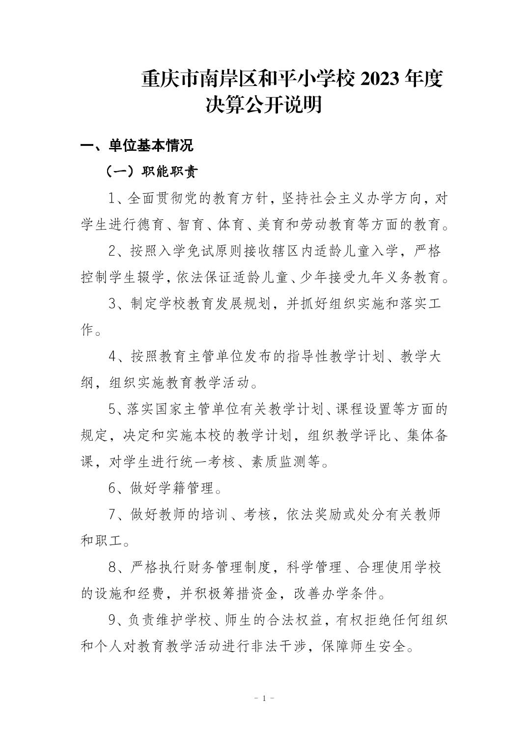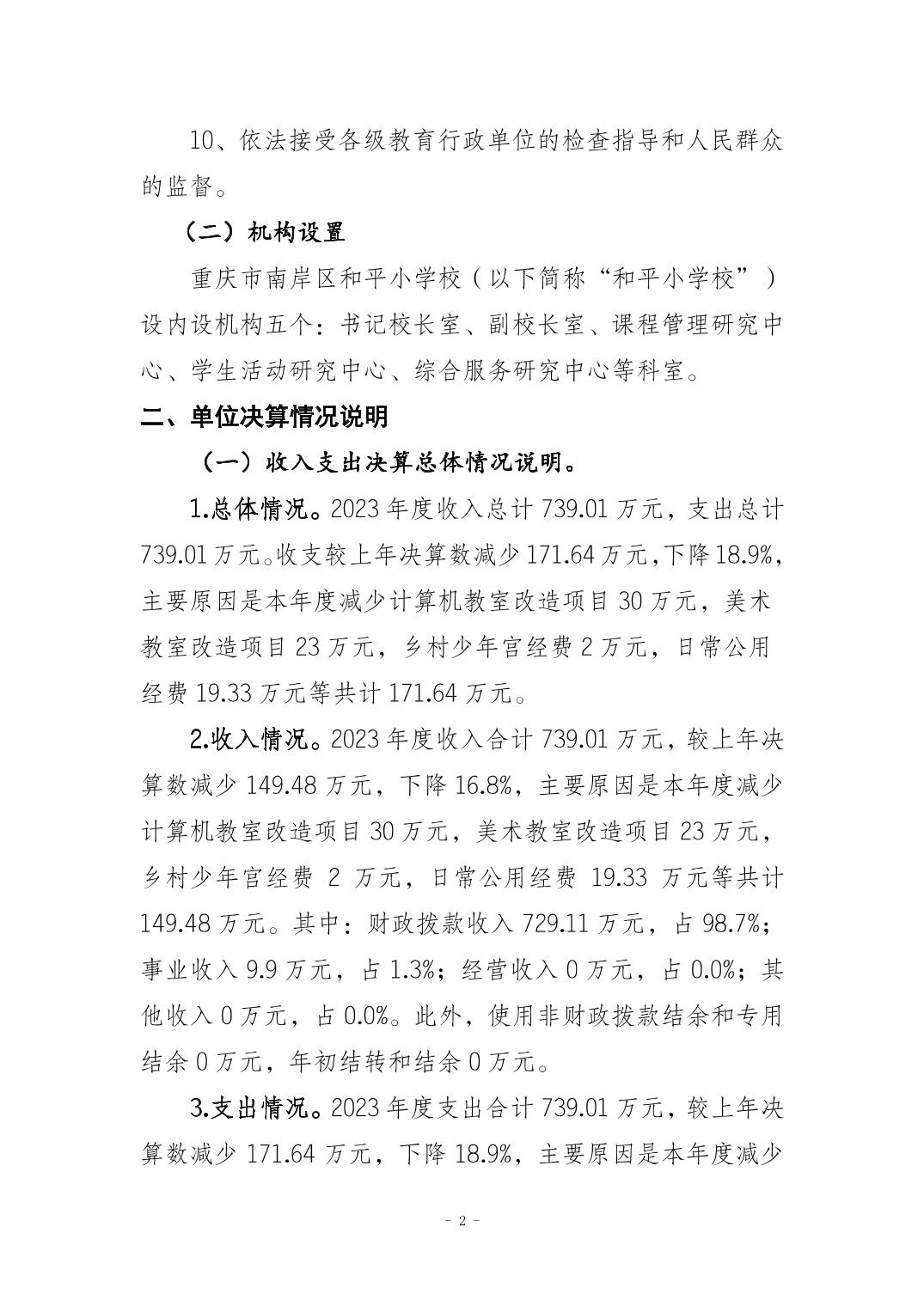 重庆市南岸区和平小学校2023年度决算公开说明