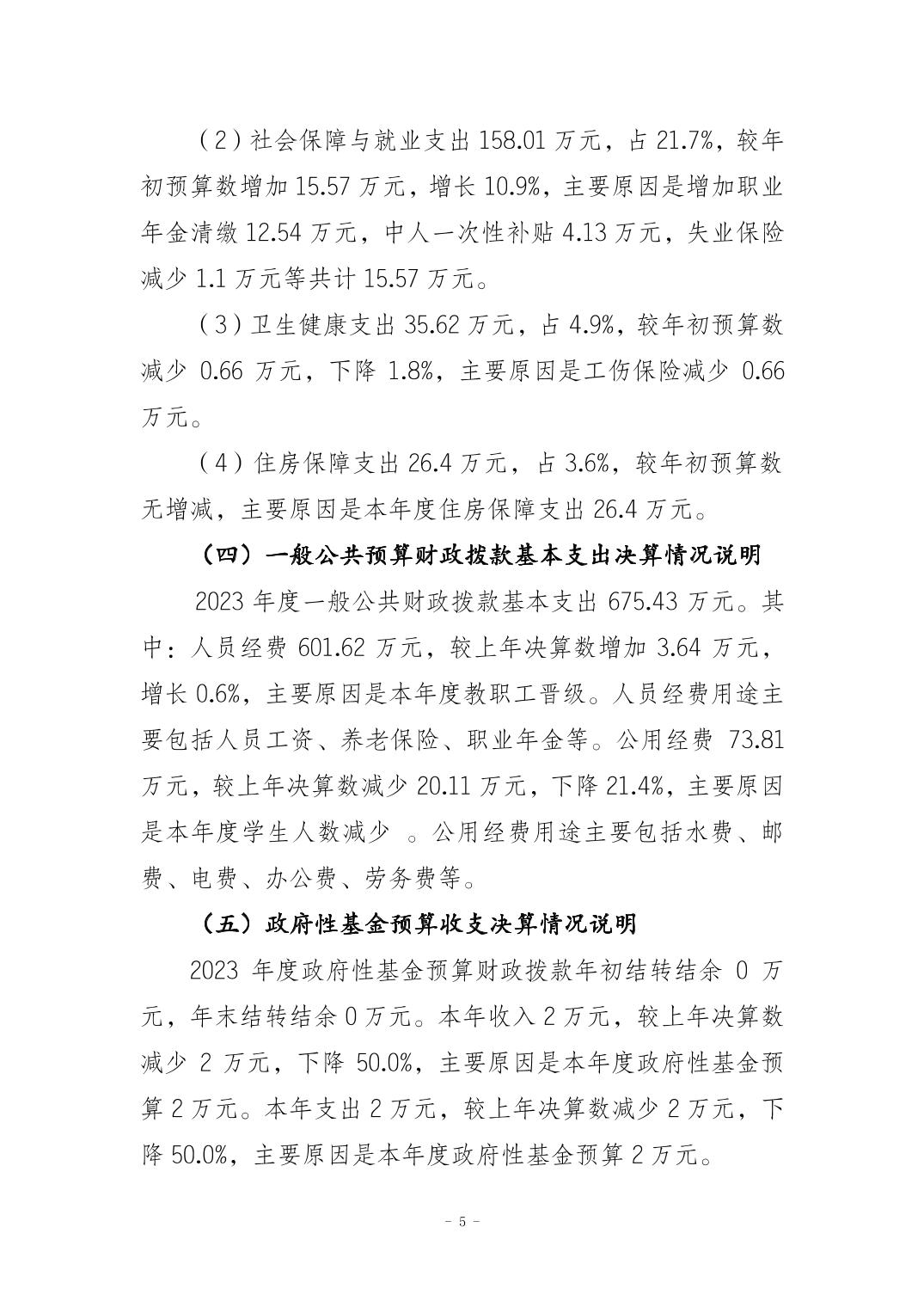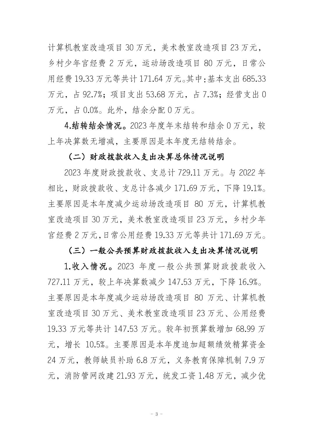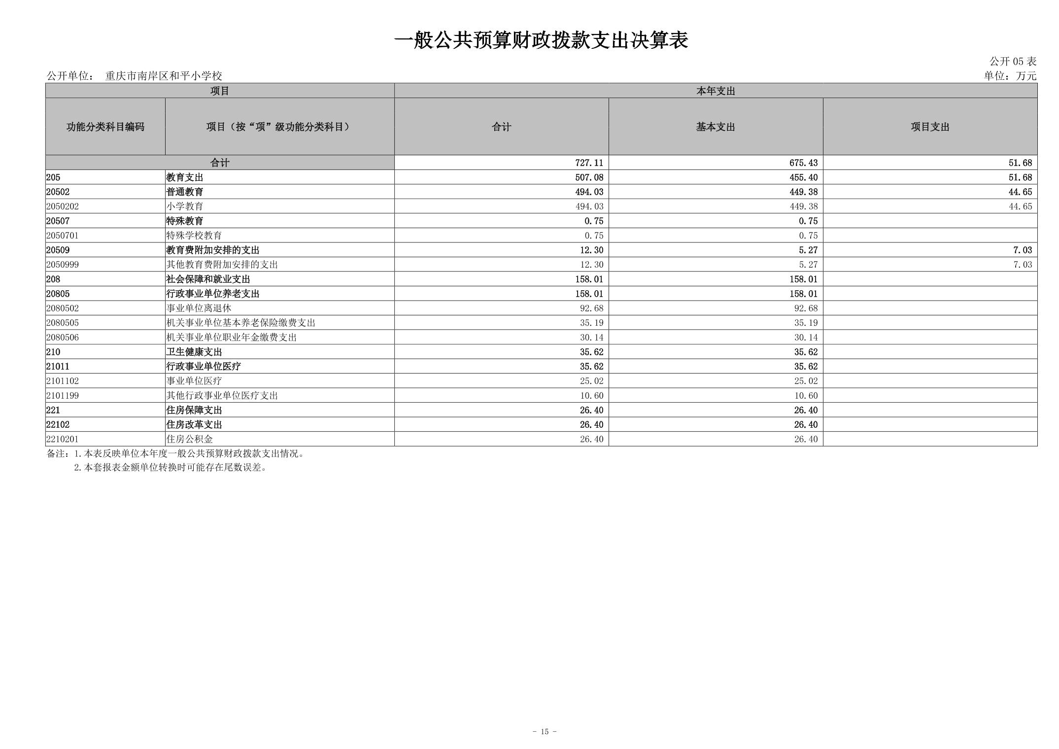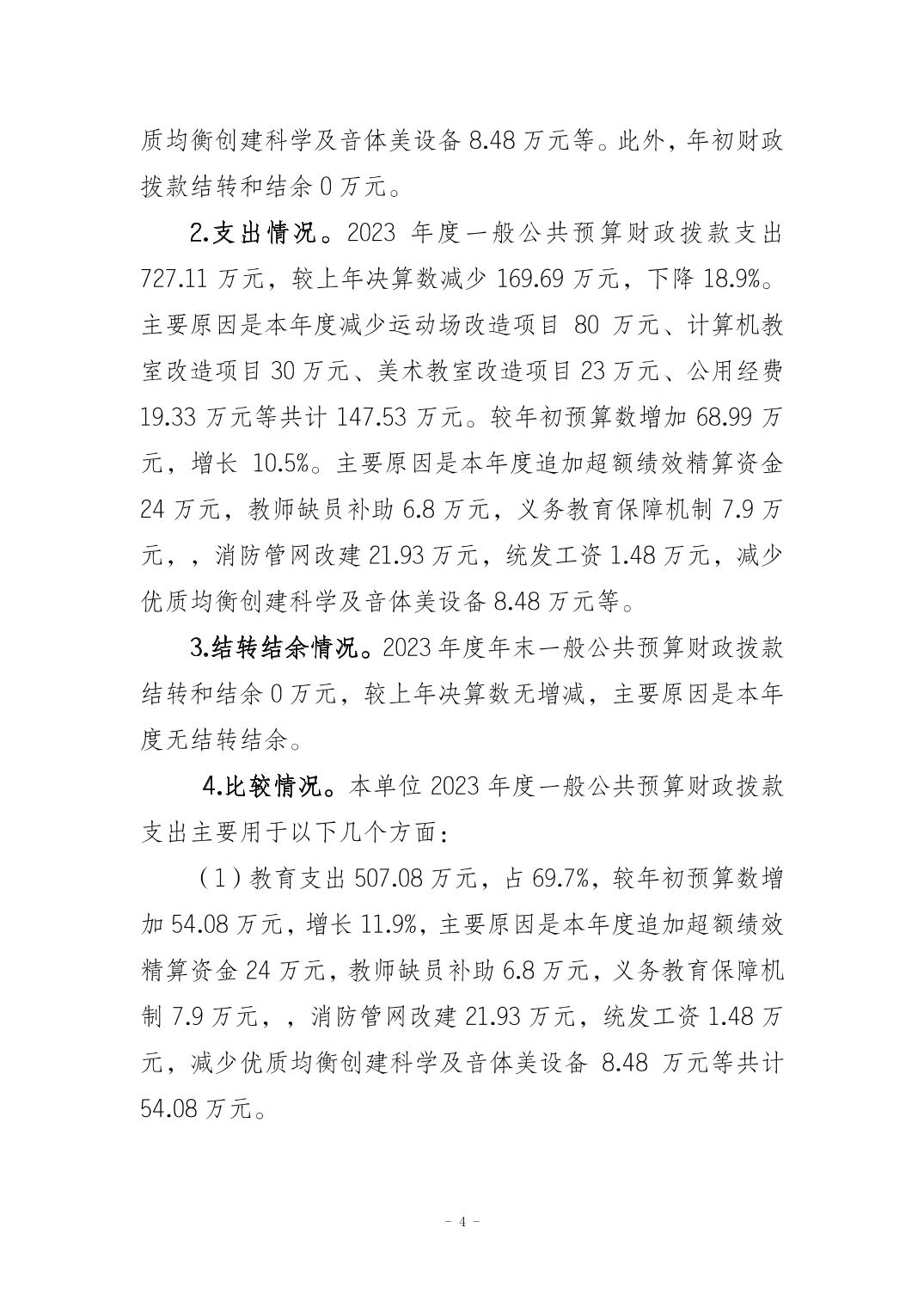 重庆市南岸区和平小学校2023年度决算公开说明