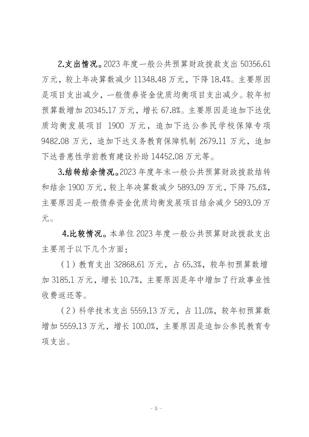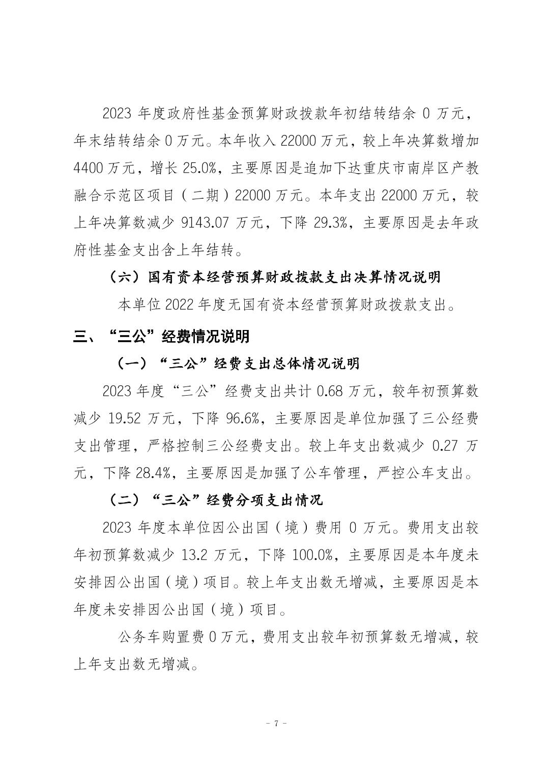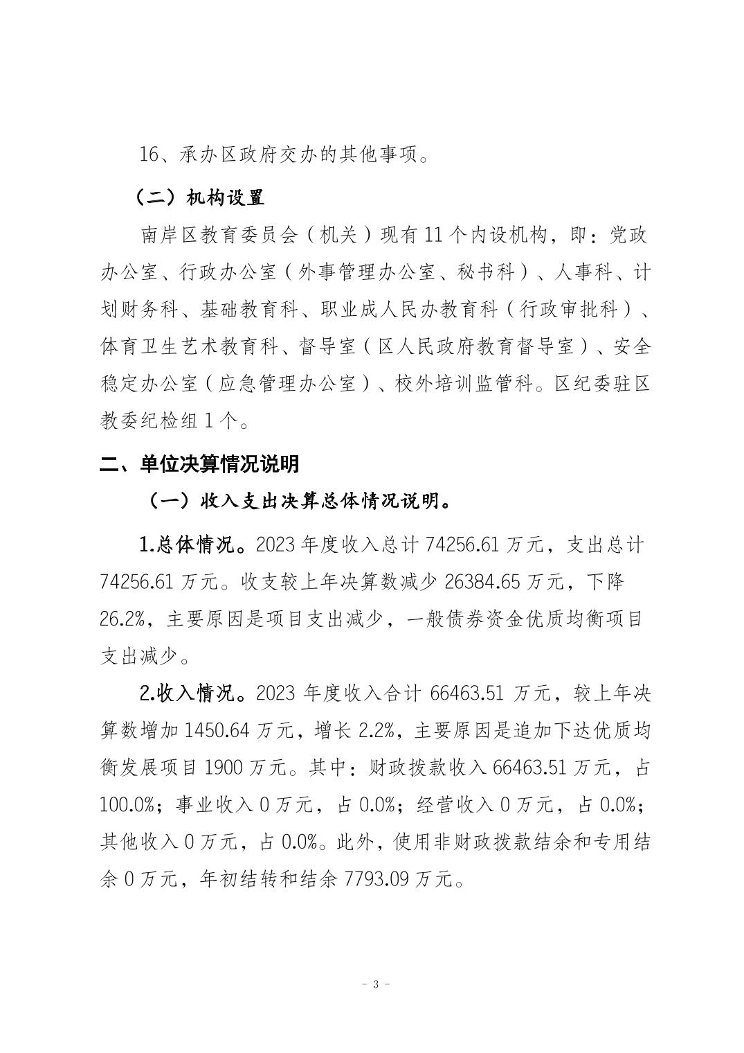 重庆市南岸区教育委员会(本级)2023年度决算公开说明