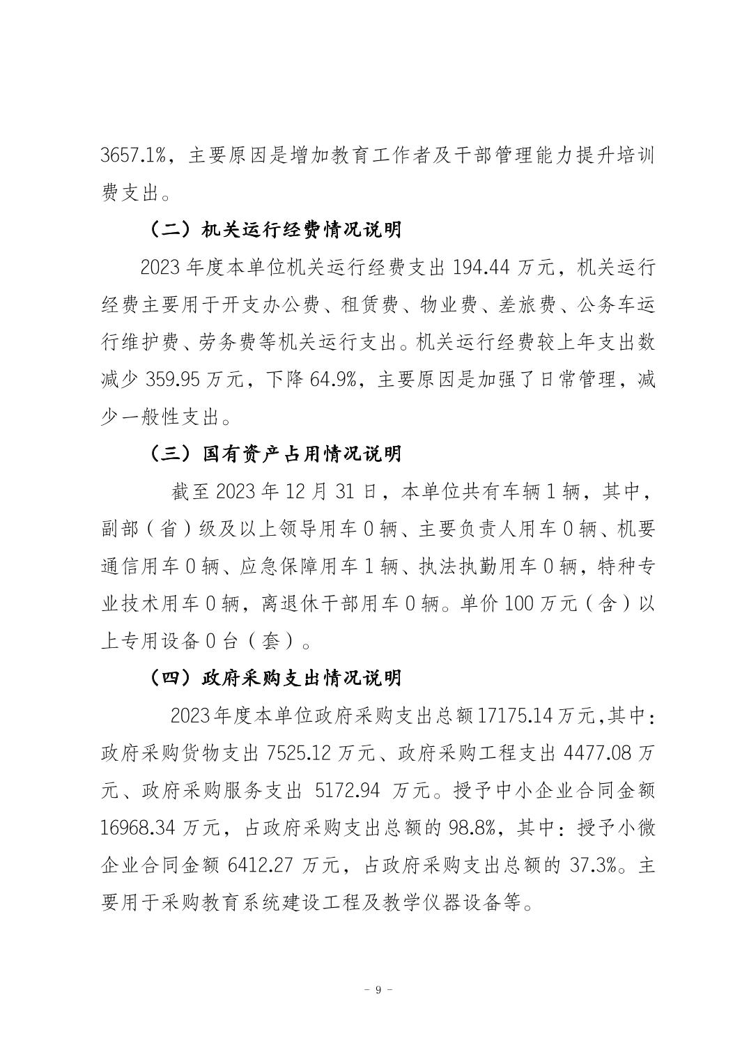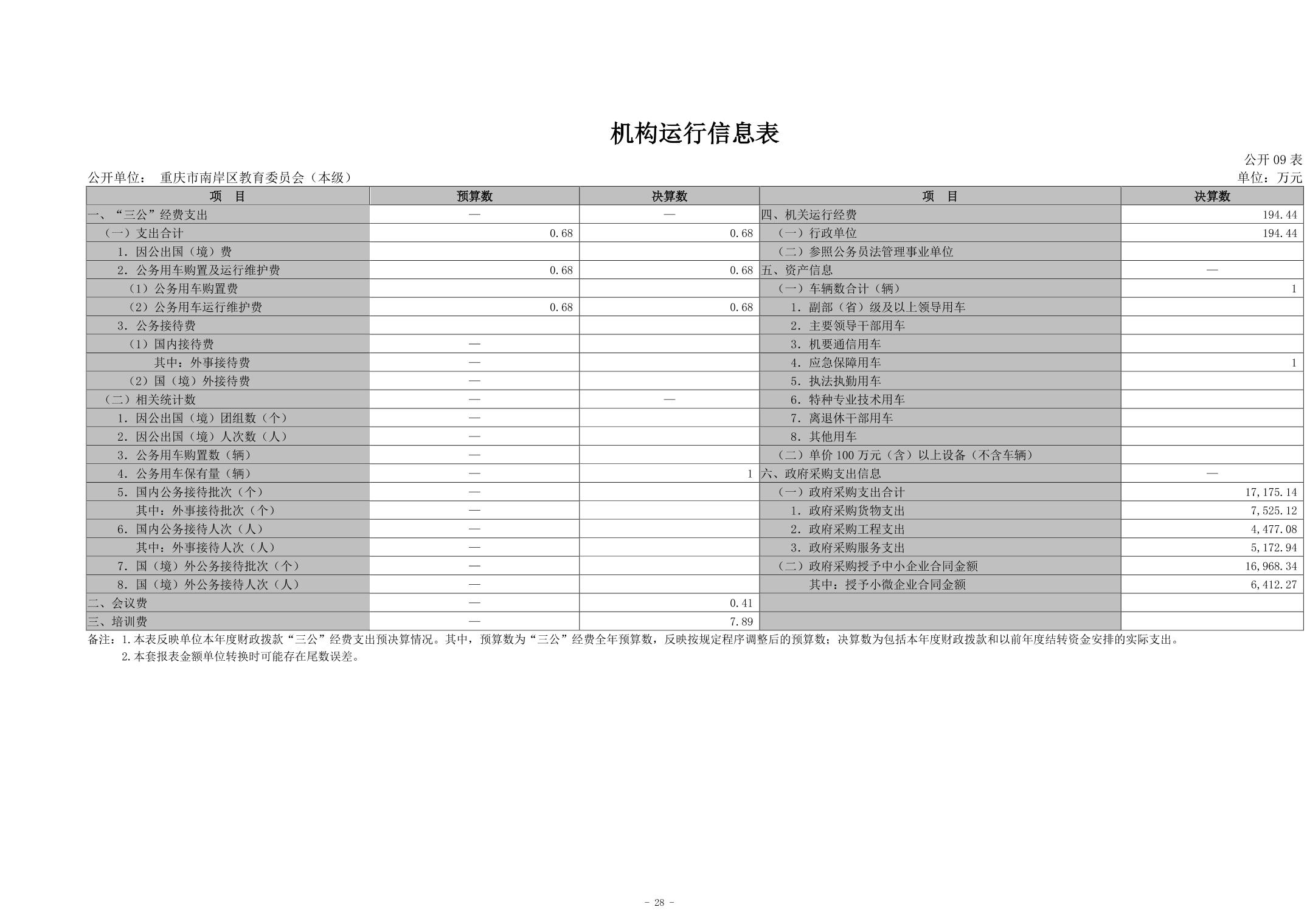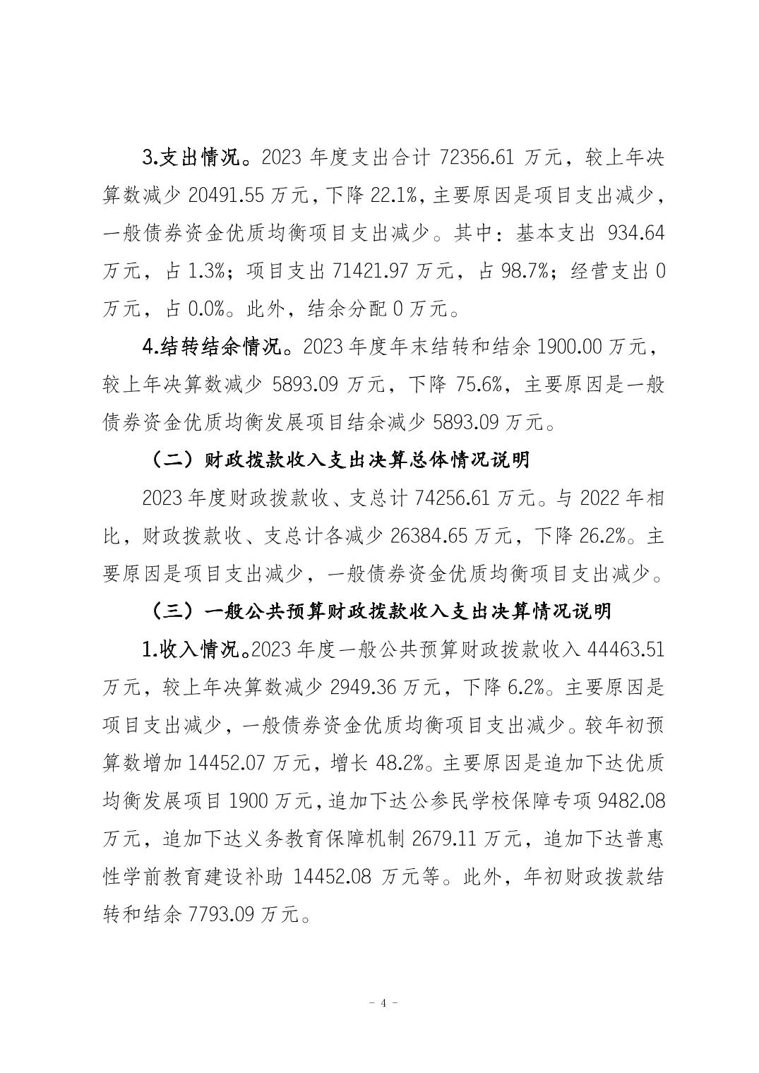 重庆市南岸区教育委员会(本级)2023年度决算公开说明