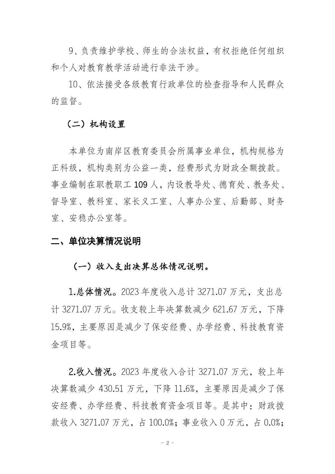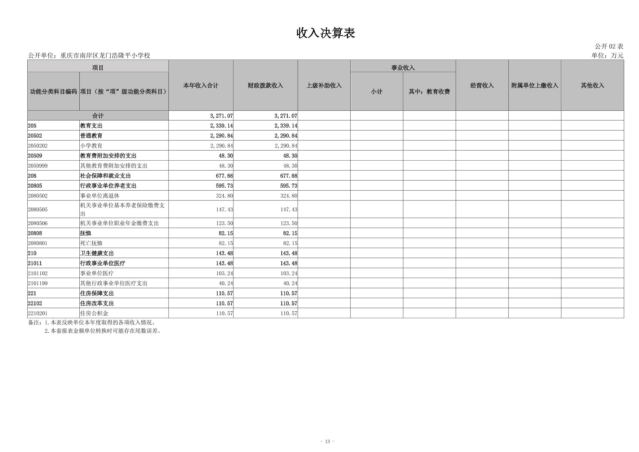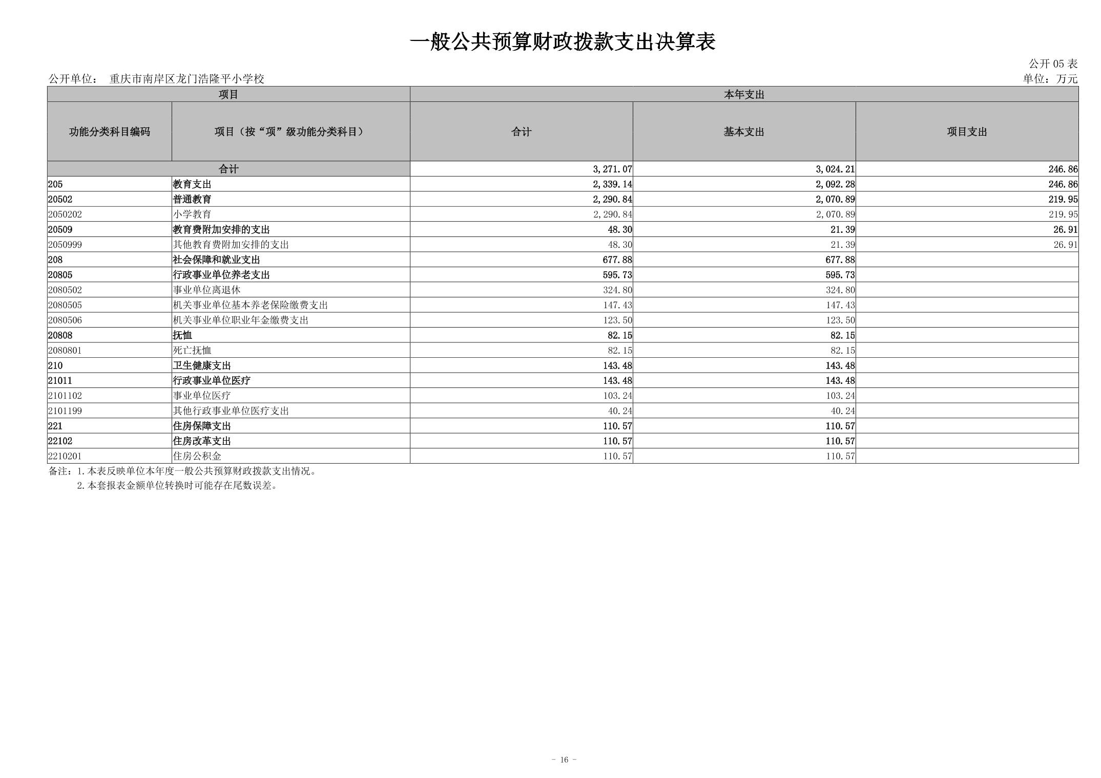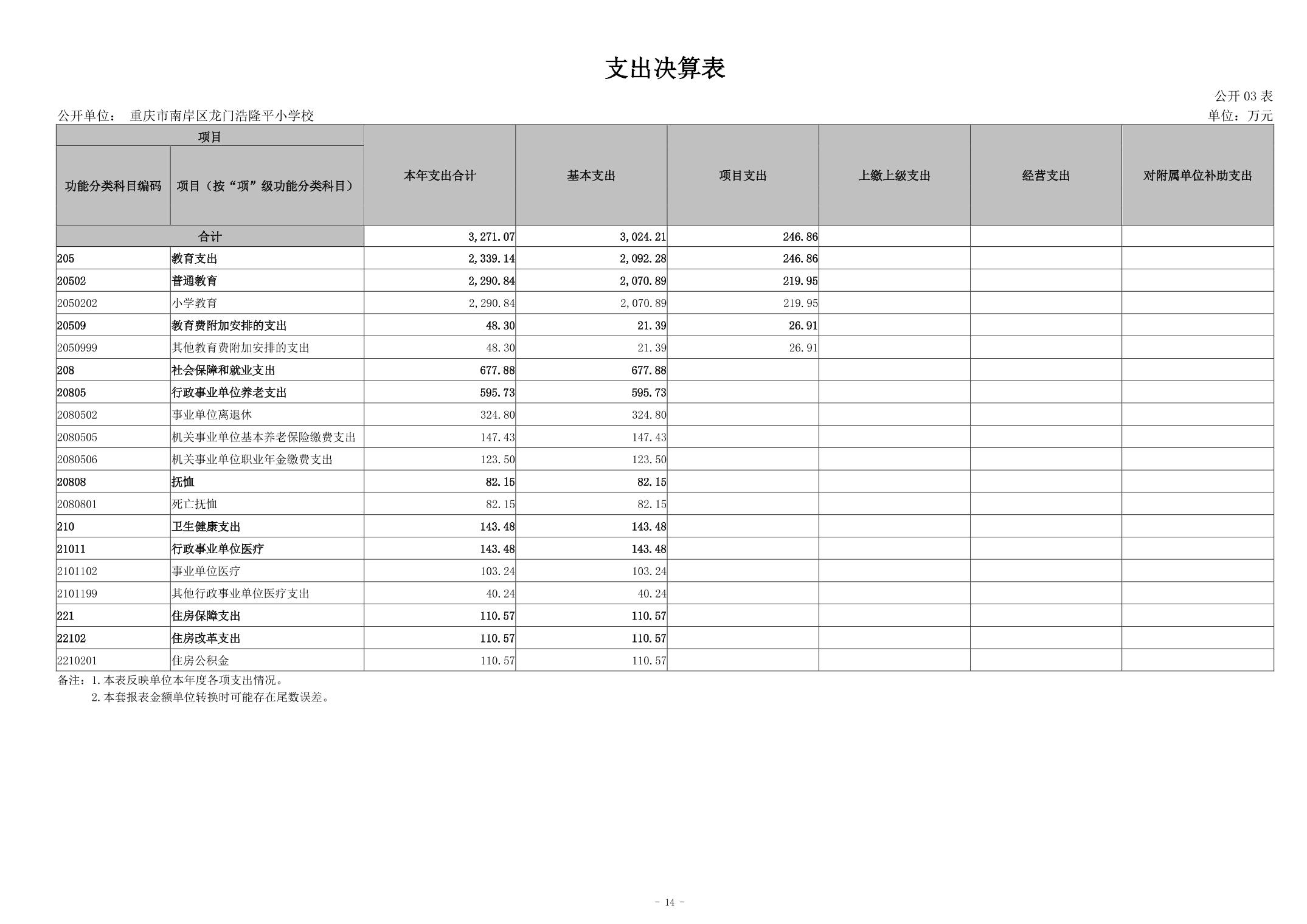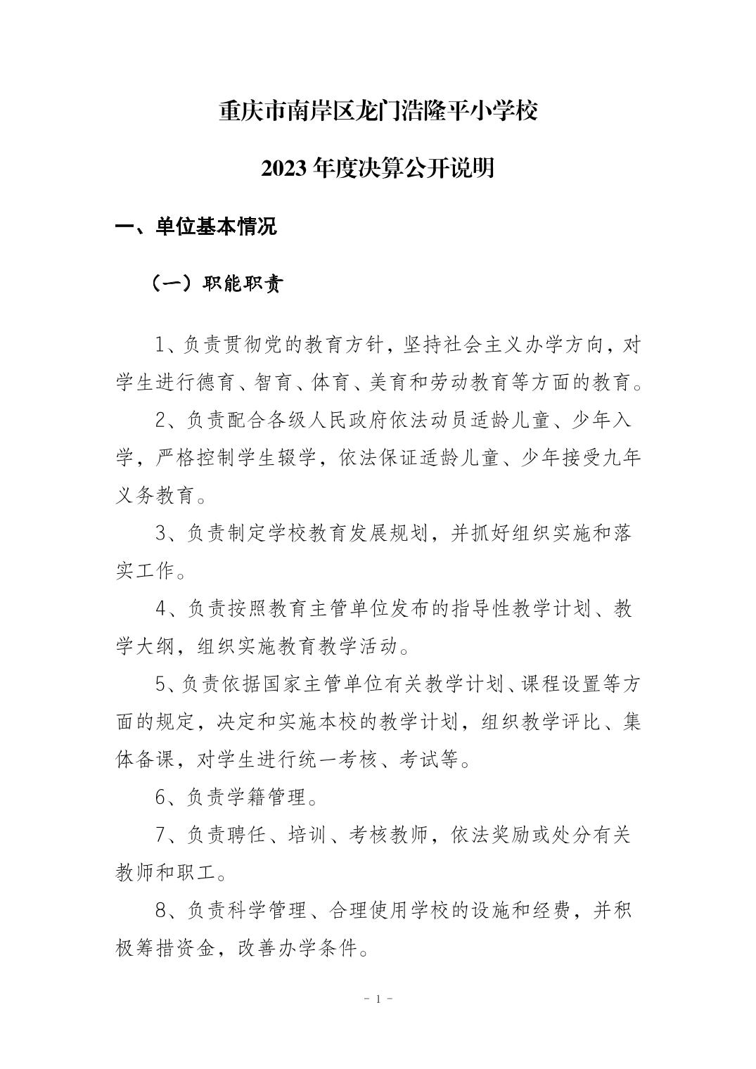 重庆市南岸区龙门浩隆平小学校2023年度决算公开说明