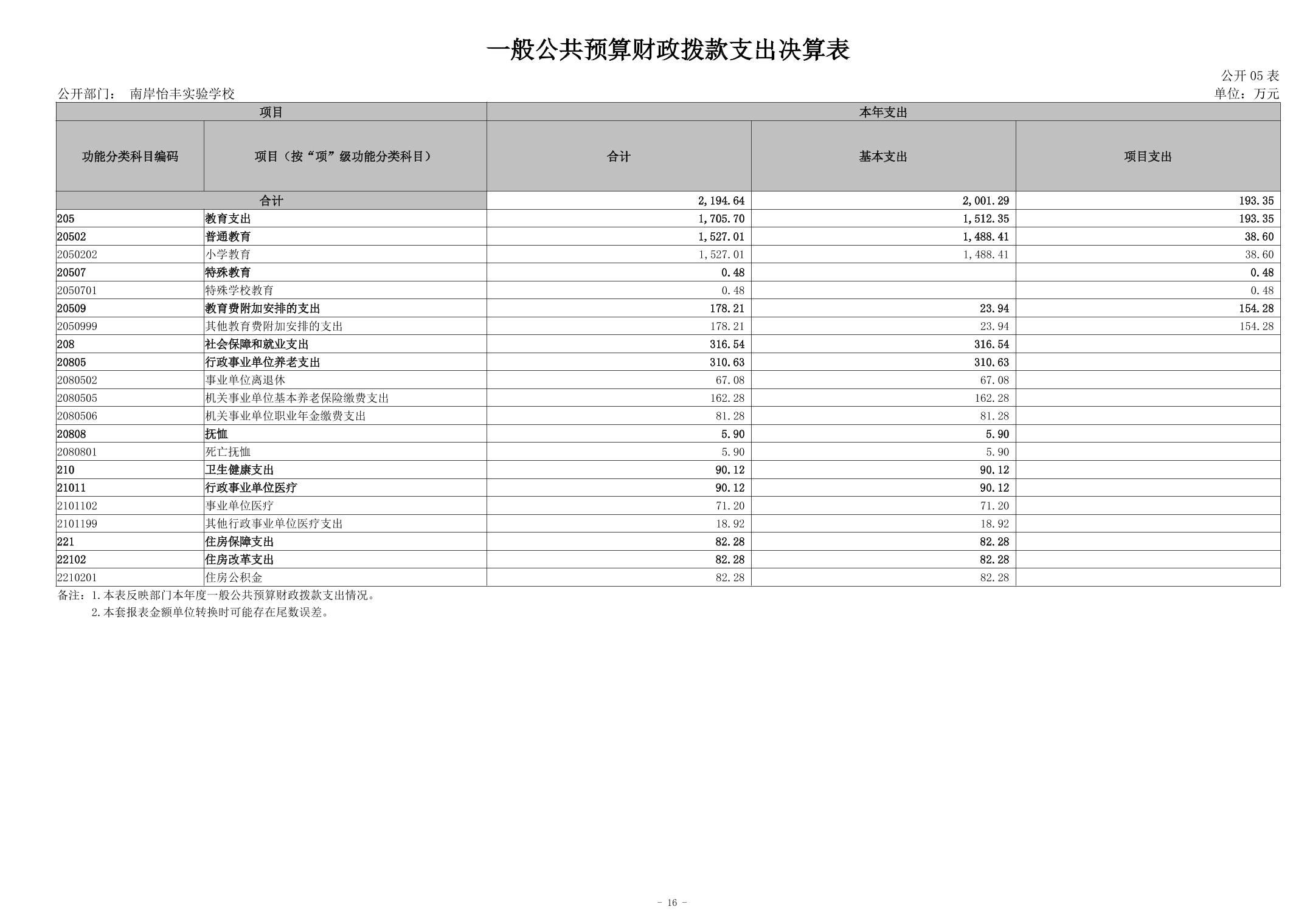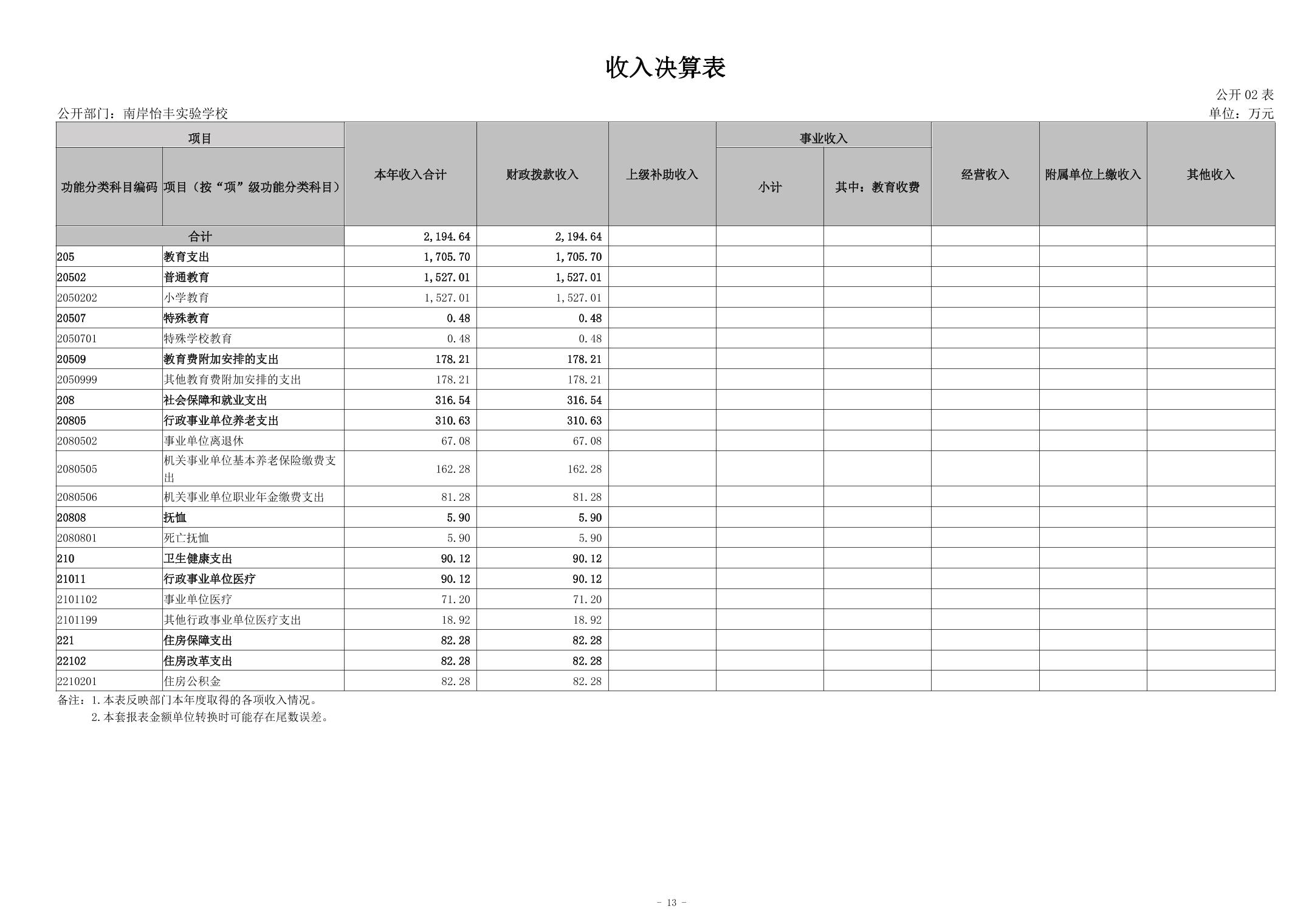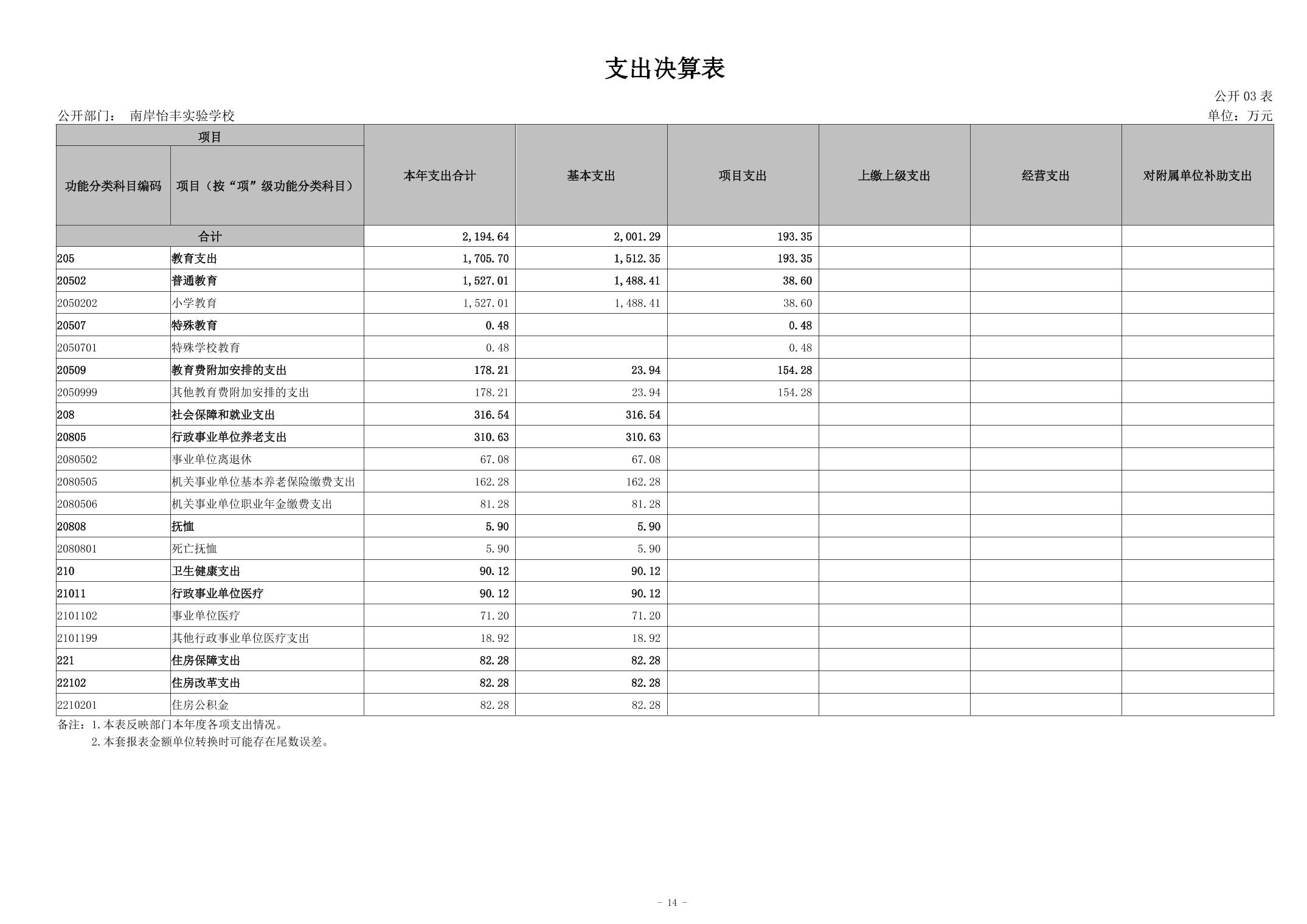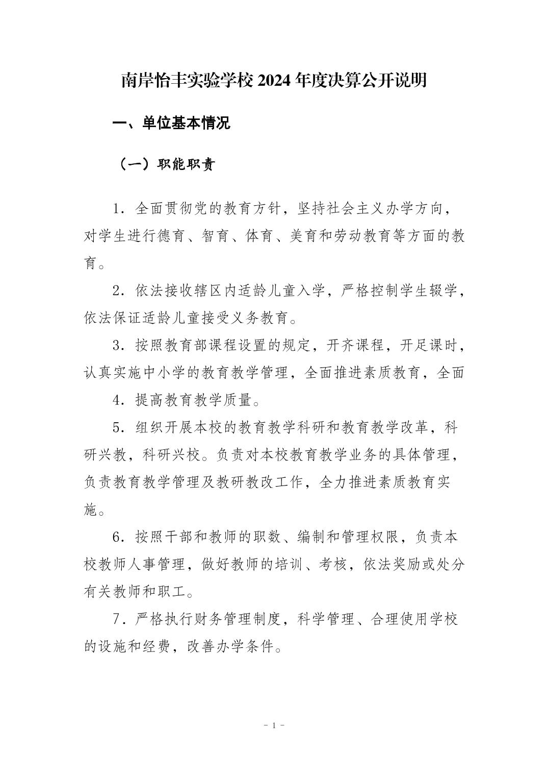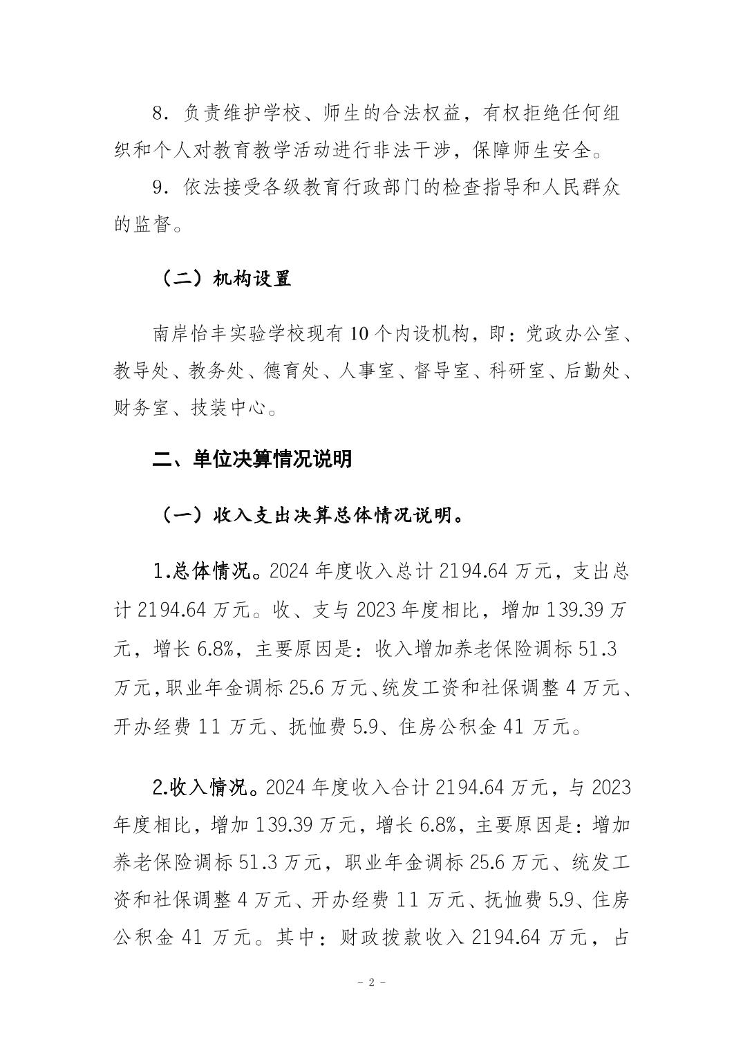 南岸怡丰实验学校2024年度决算公开说明