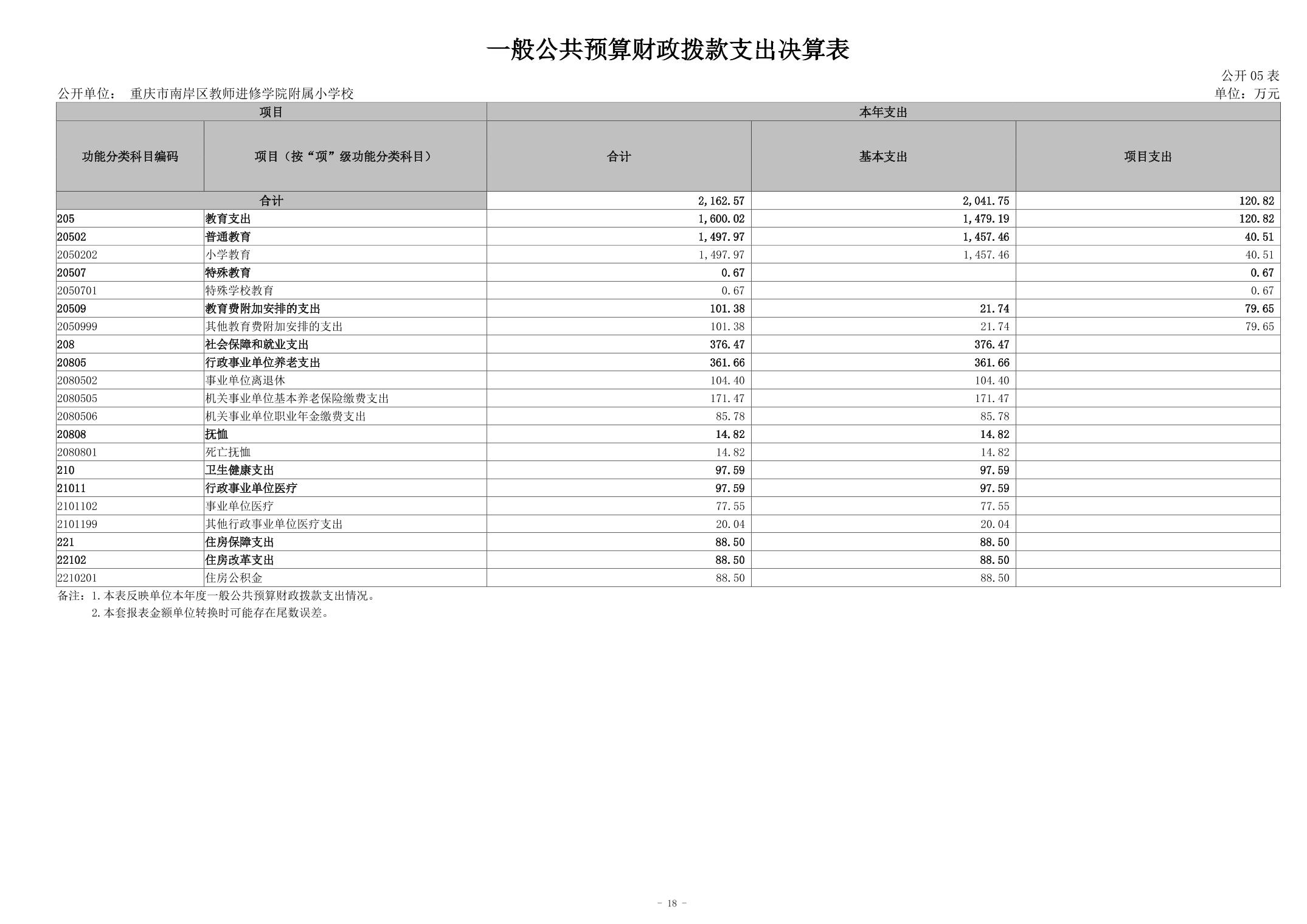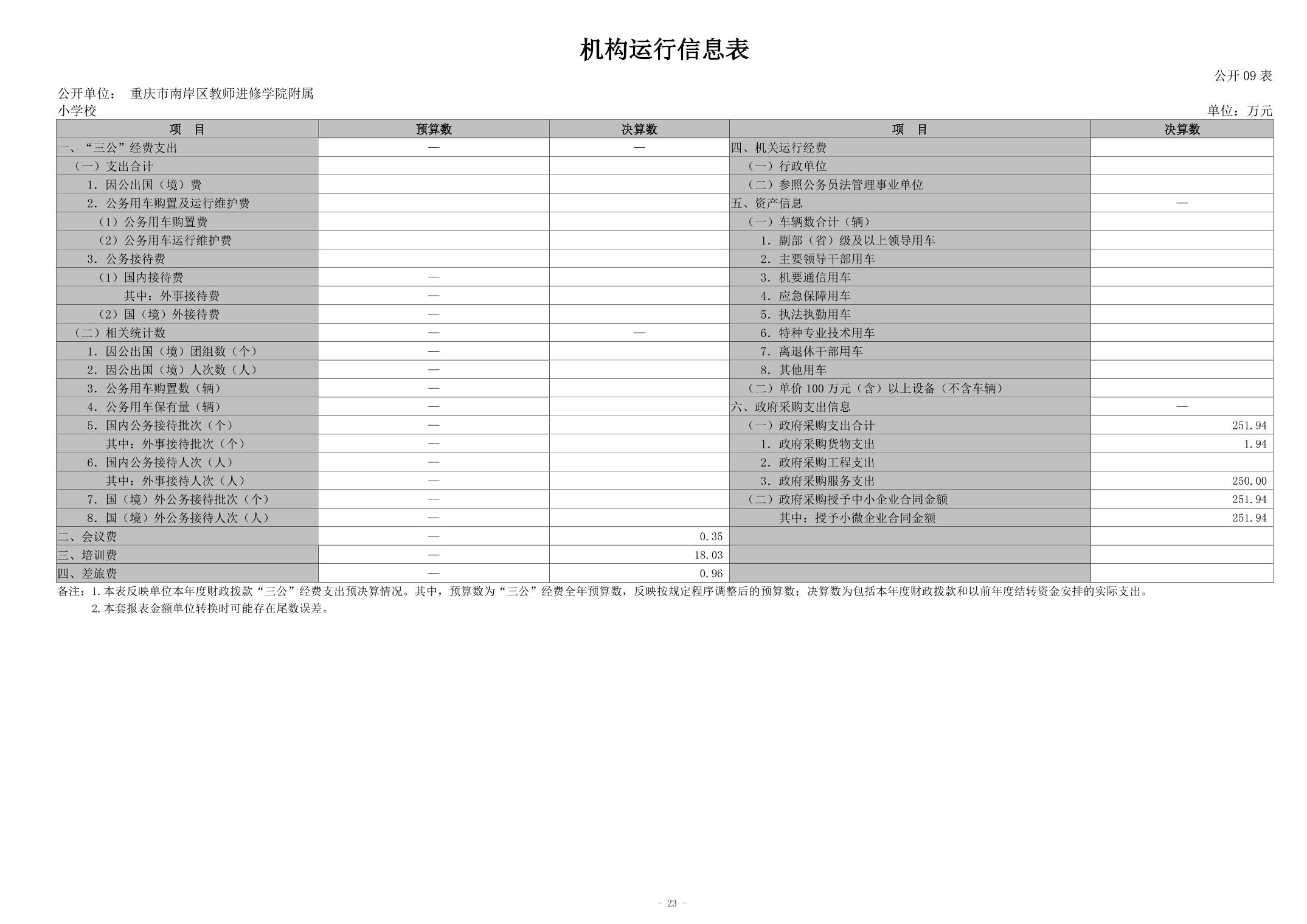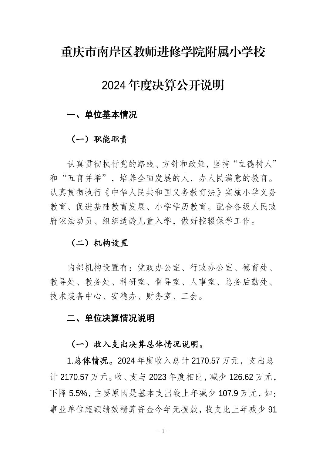 重庆市南岸区教师进修学院附属小学校2024年度决算公开说明