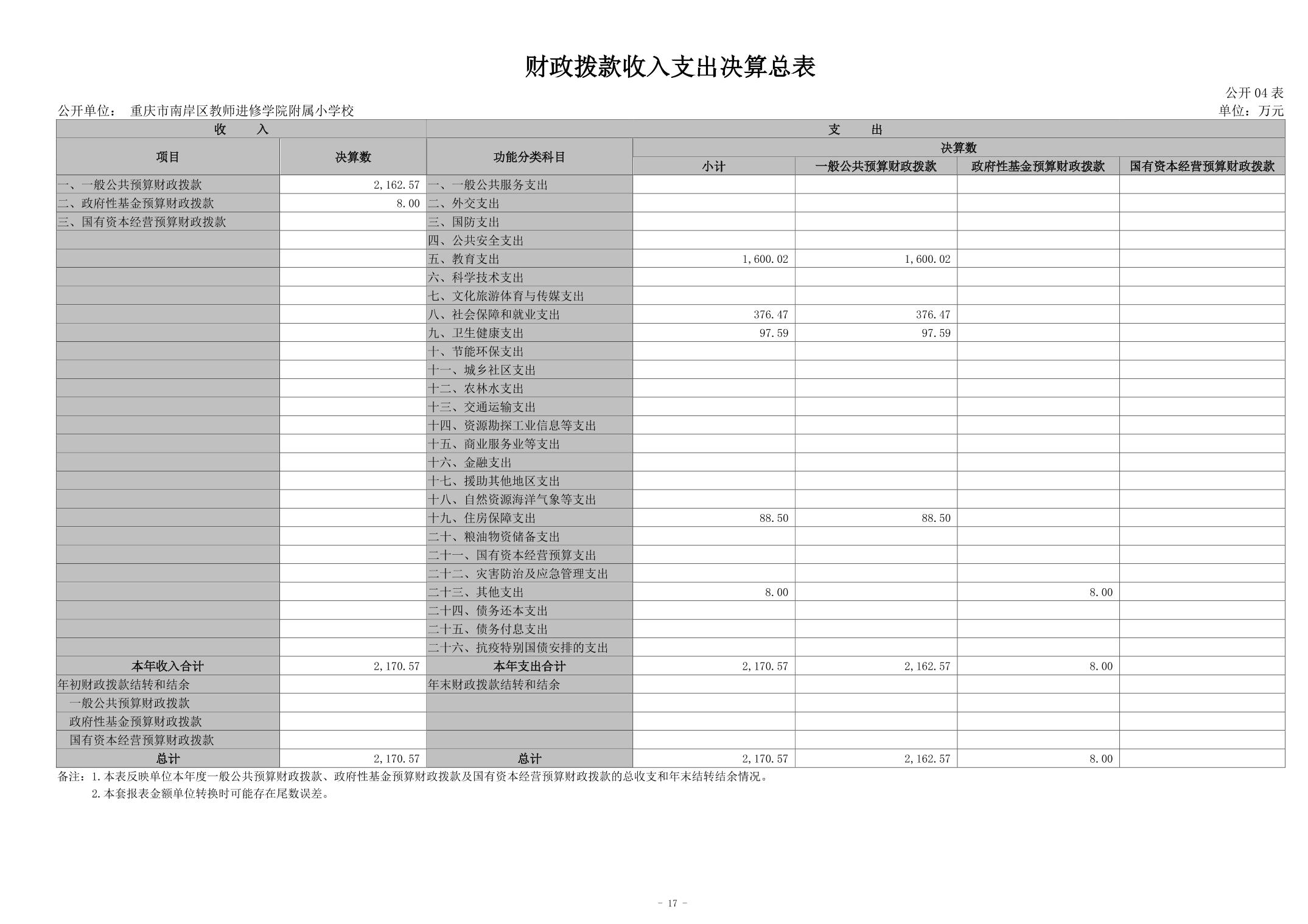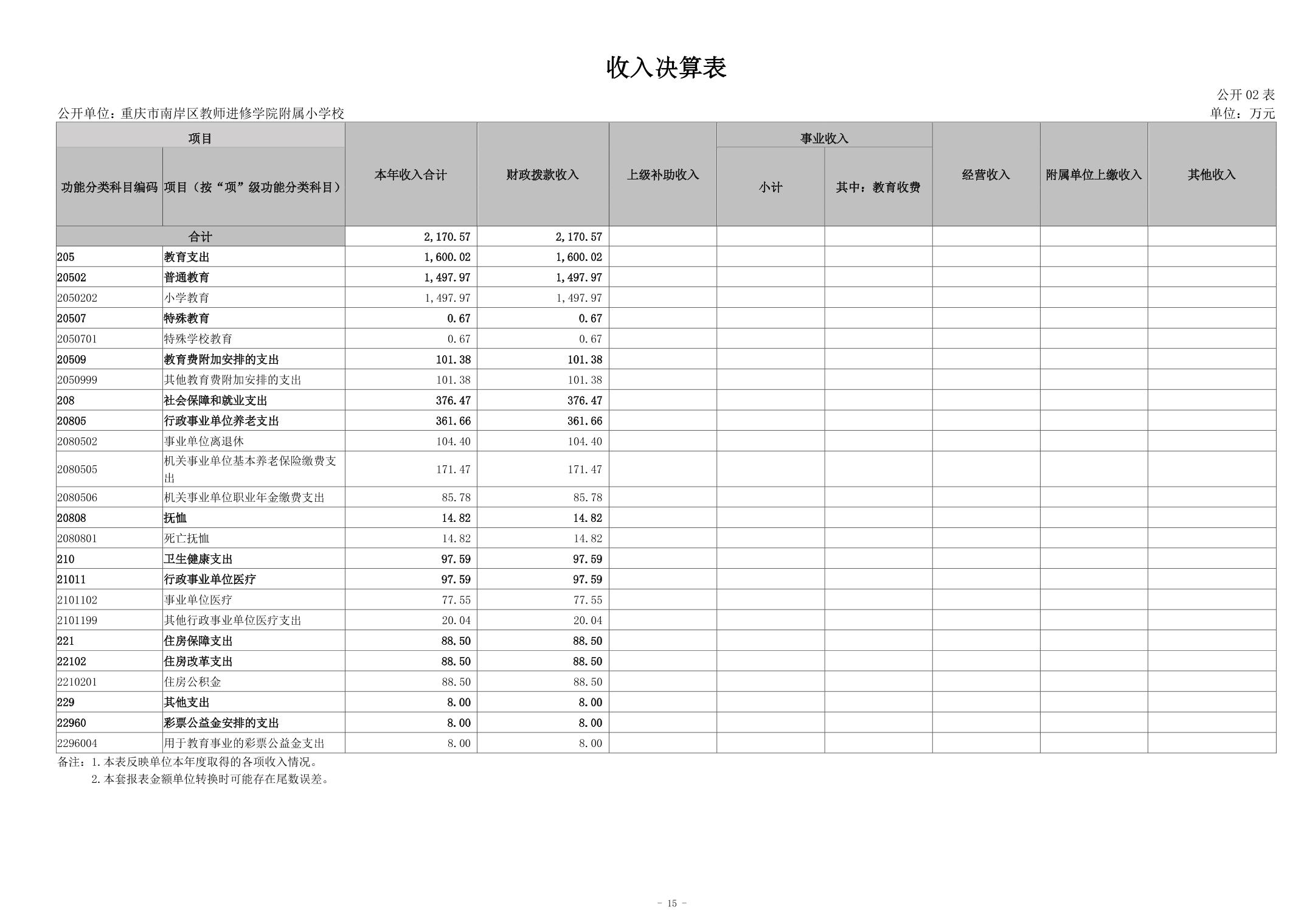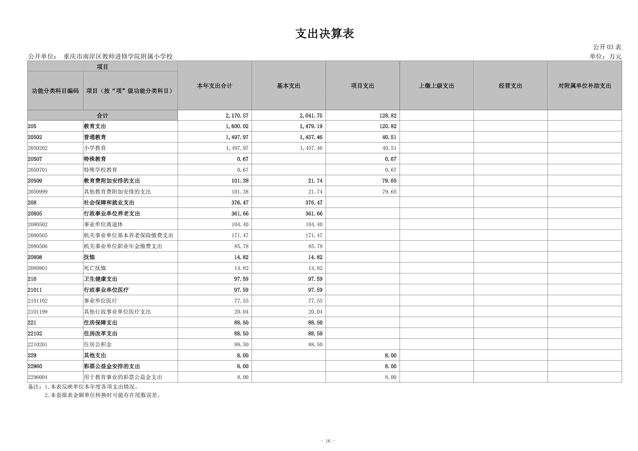 重庆市南岸区教师进修学院附属小学校2024年度决算公开说明