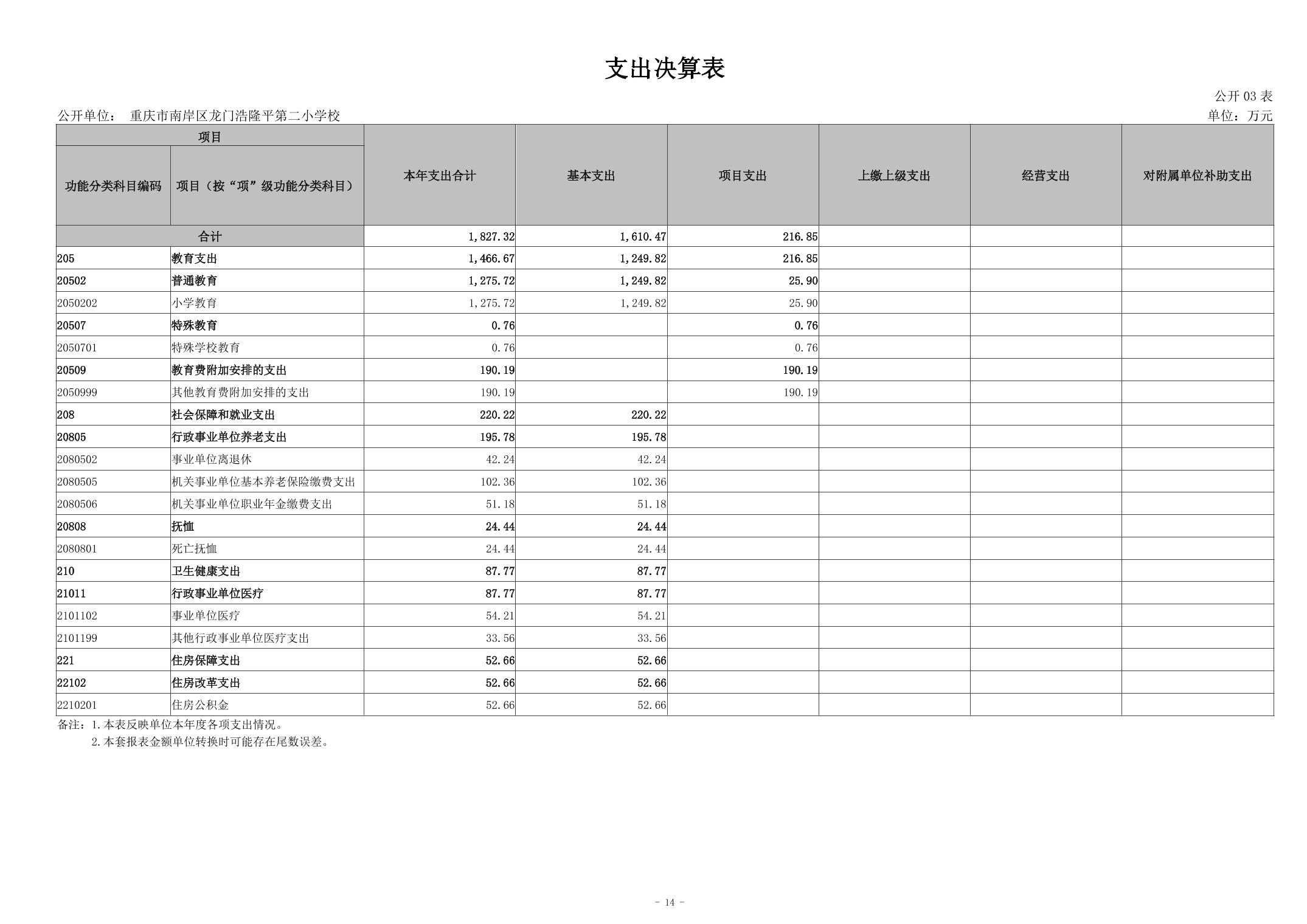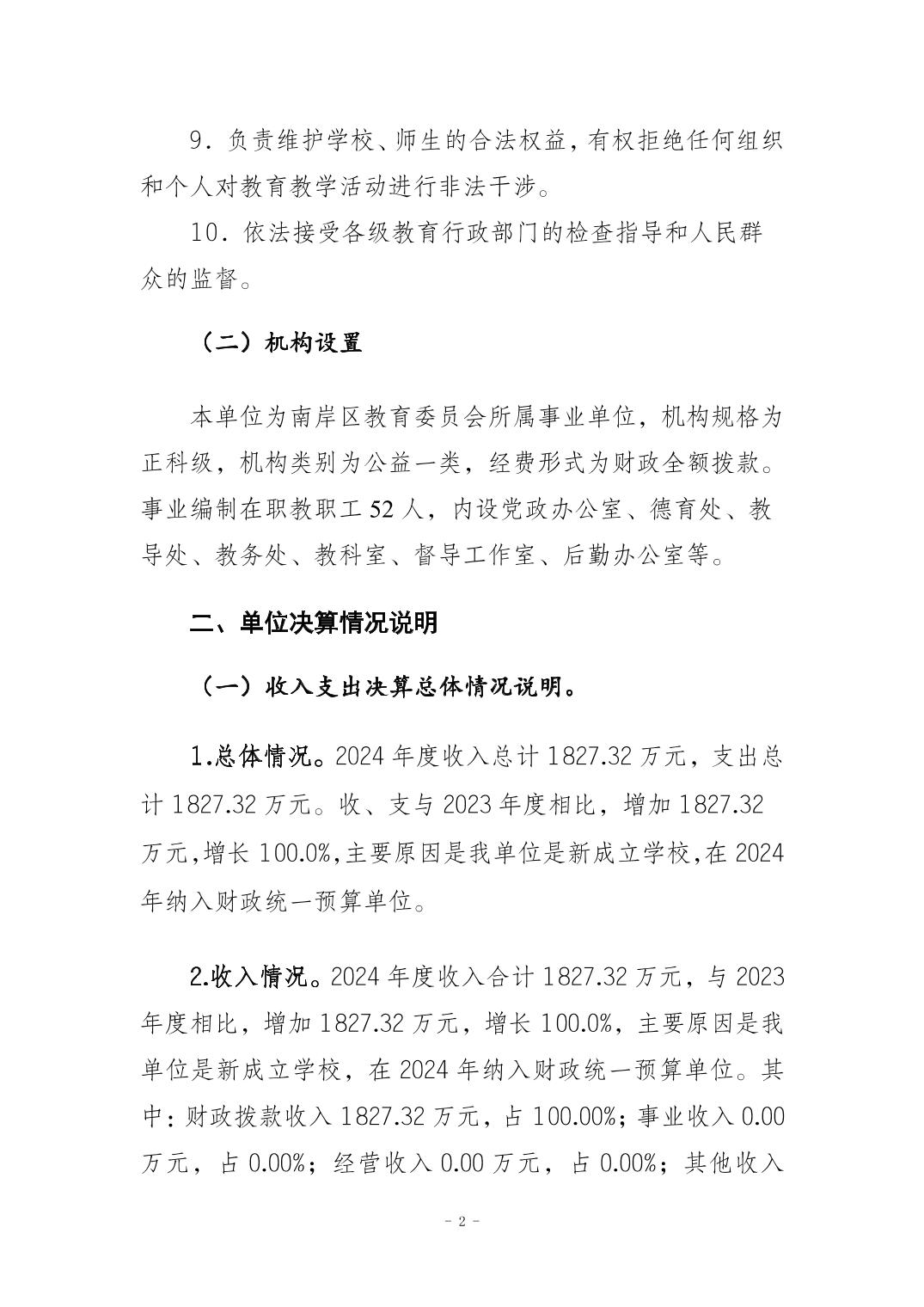 重庆市南岸区龙门浩隆平第二小学校2024年度决算公开说明