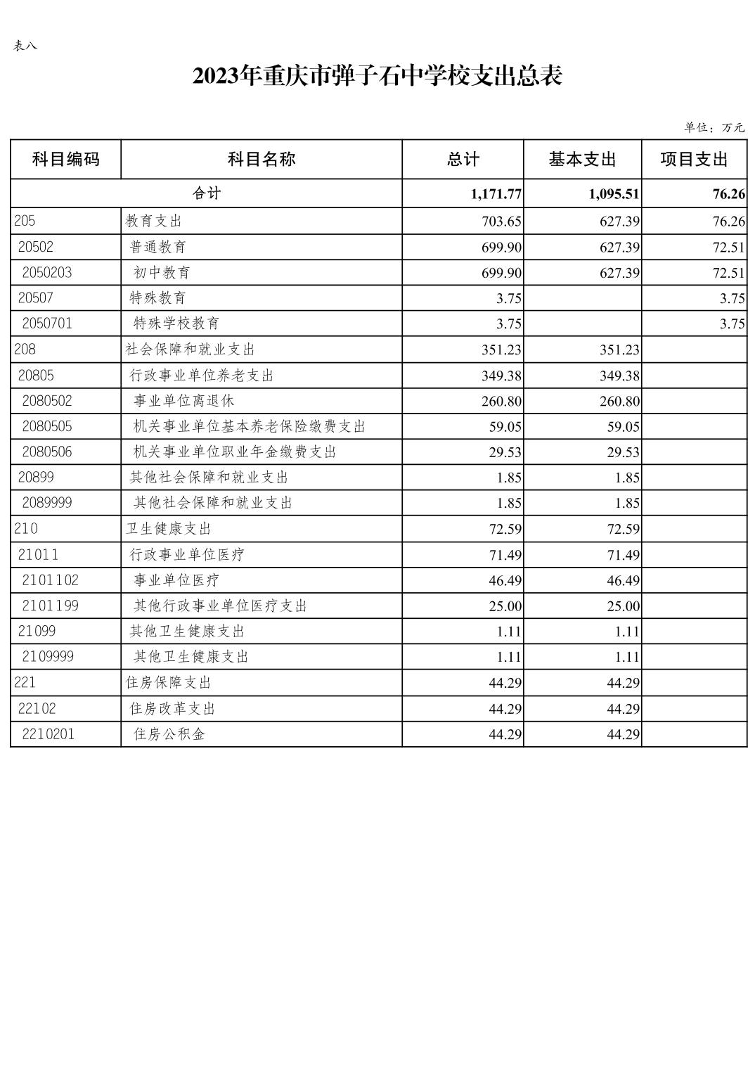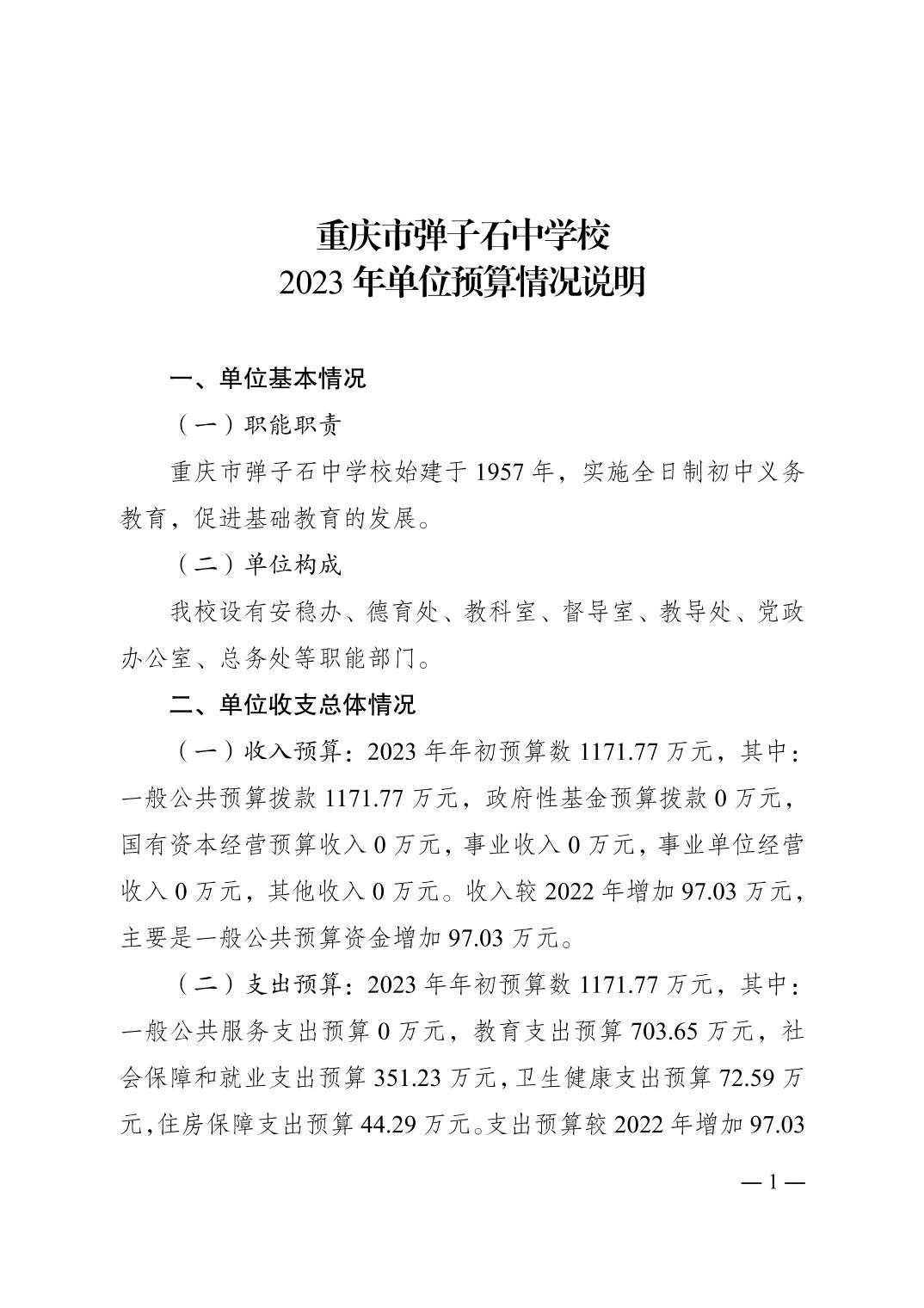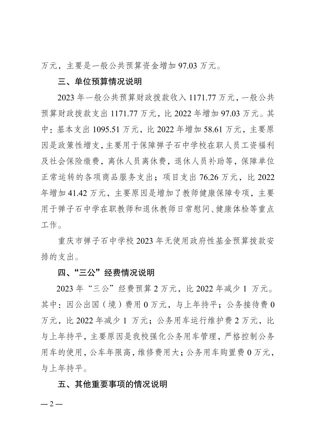 重庆市弹子石中学校2023年单位预算公开