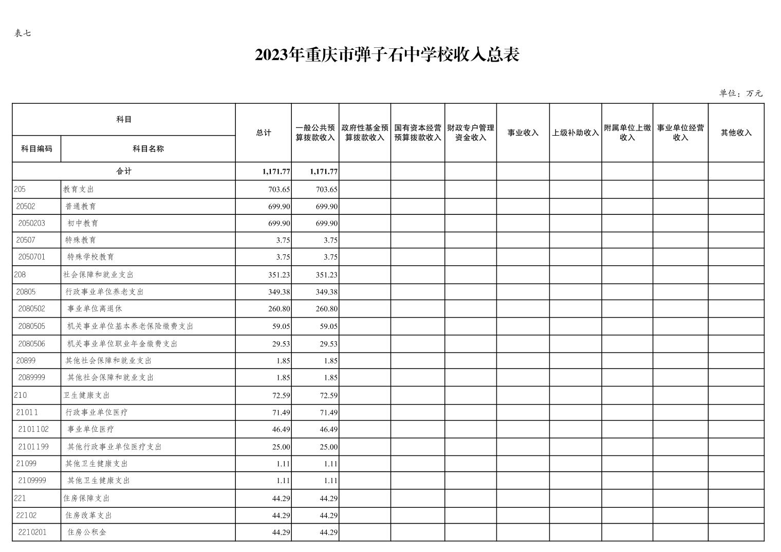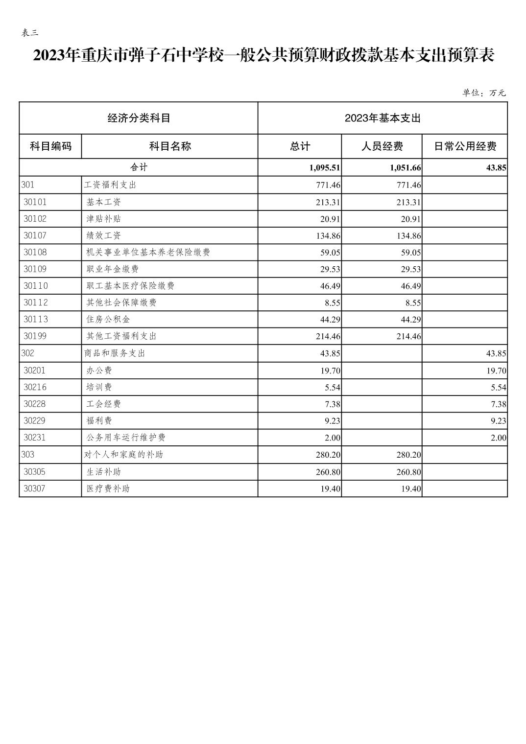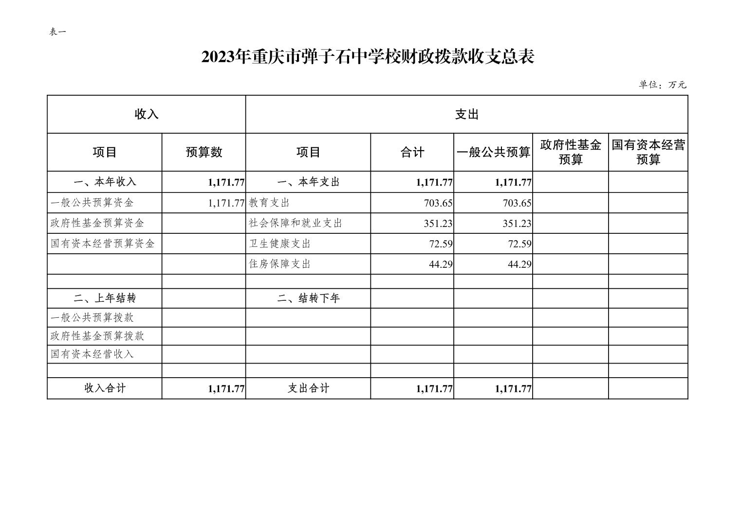 重庆市弹子石中学校2023年单位预算公开