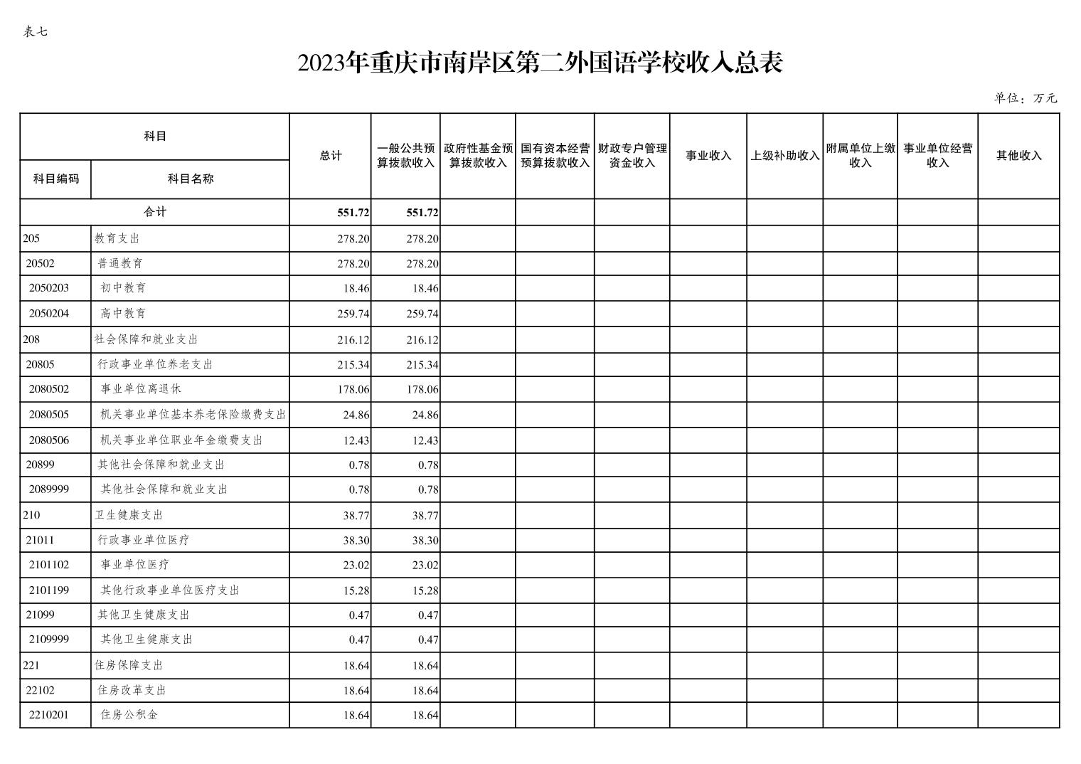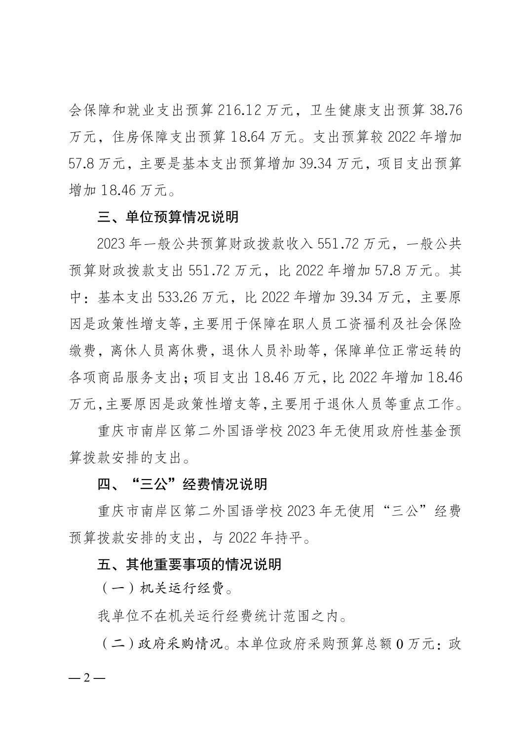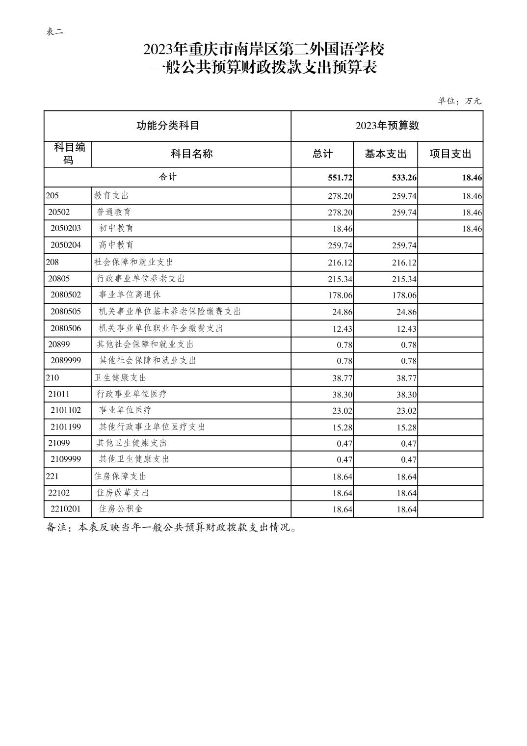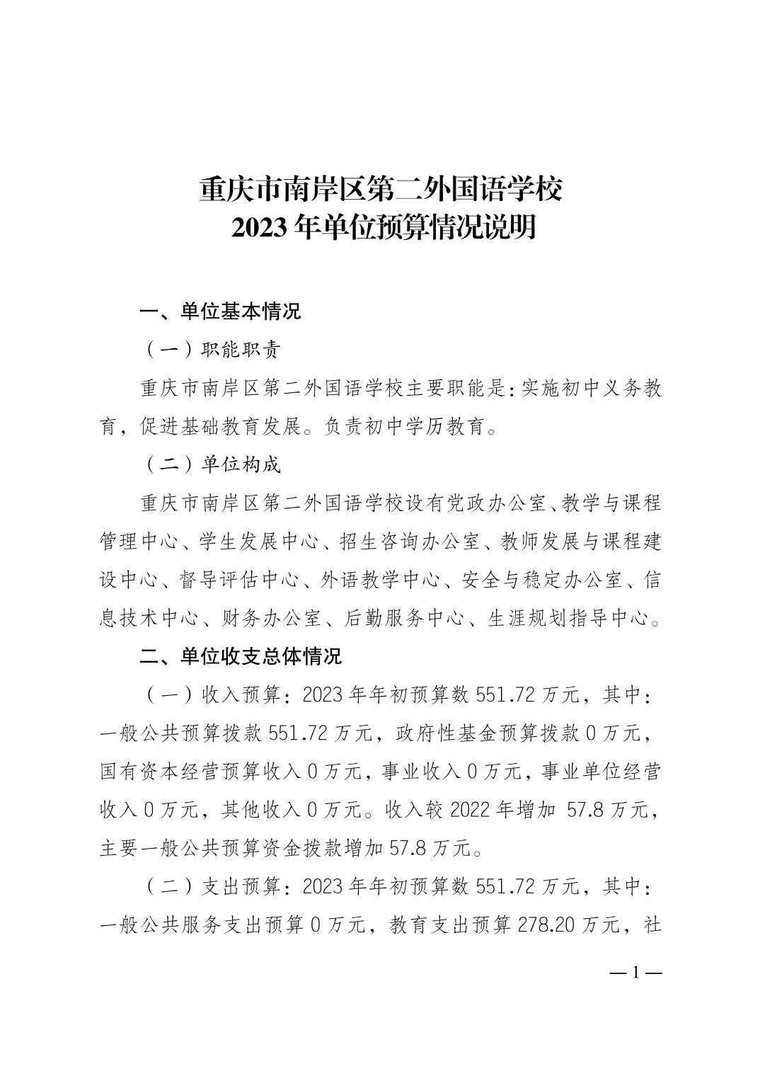 重庆市南岸区第二外国语学校2023年单位预算公开