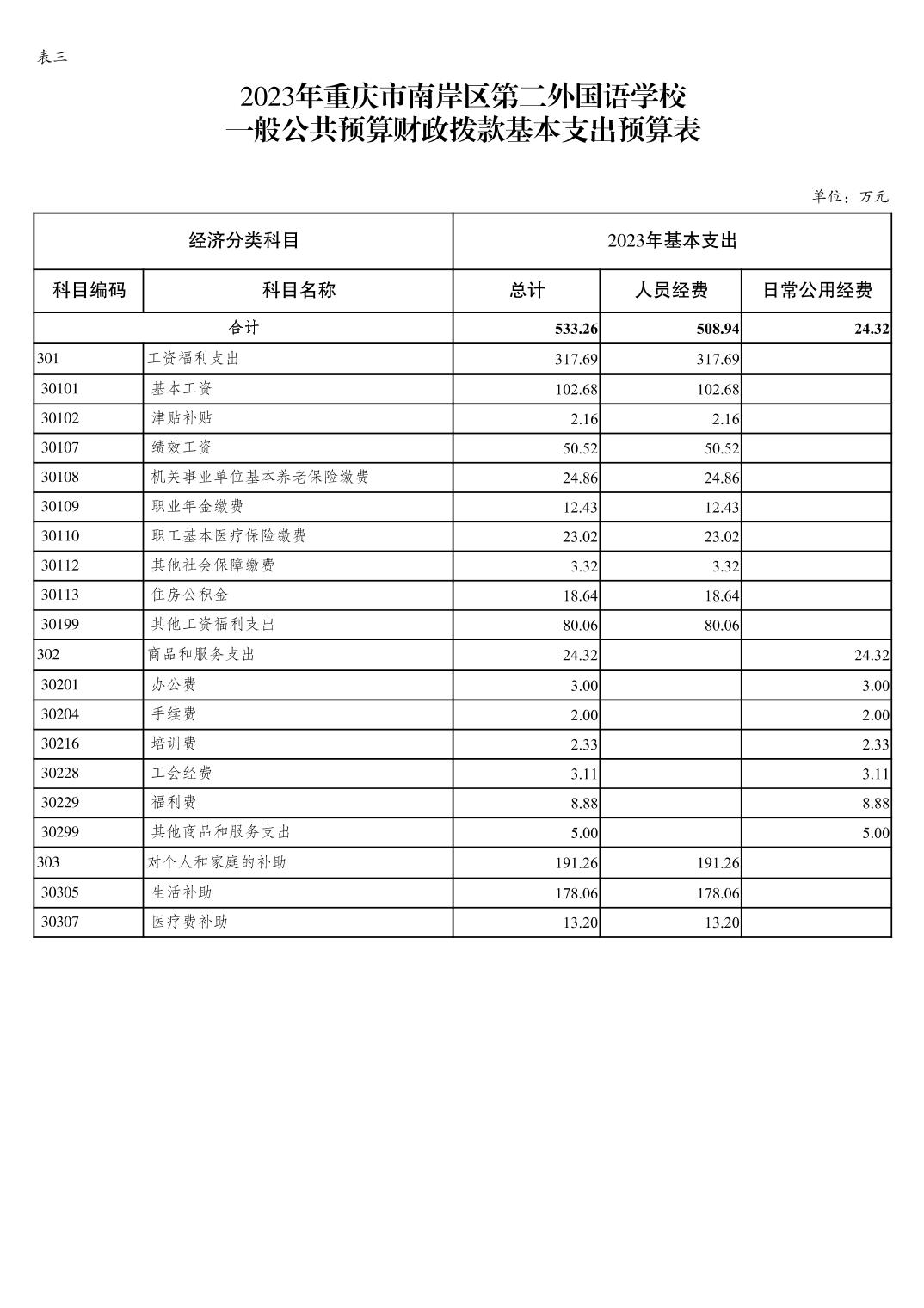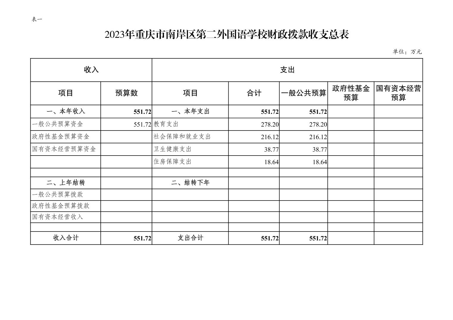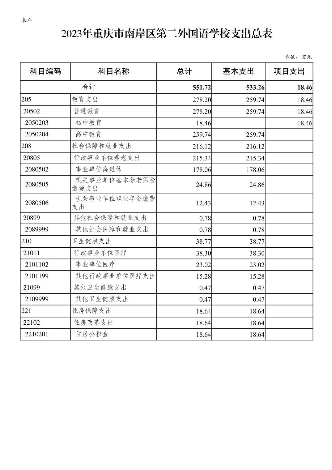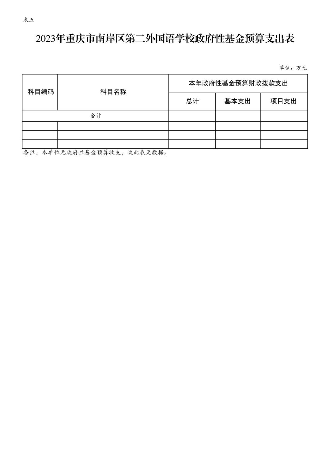 重庆市南岸区第二外国语学校2023年单位预算公开