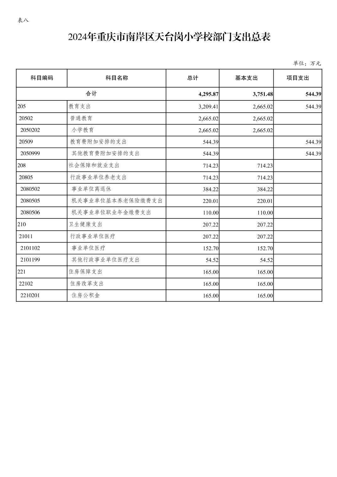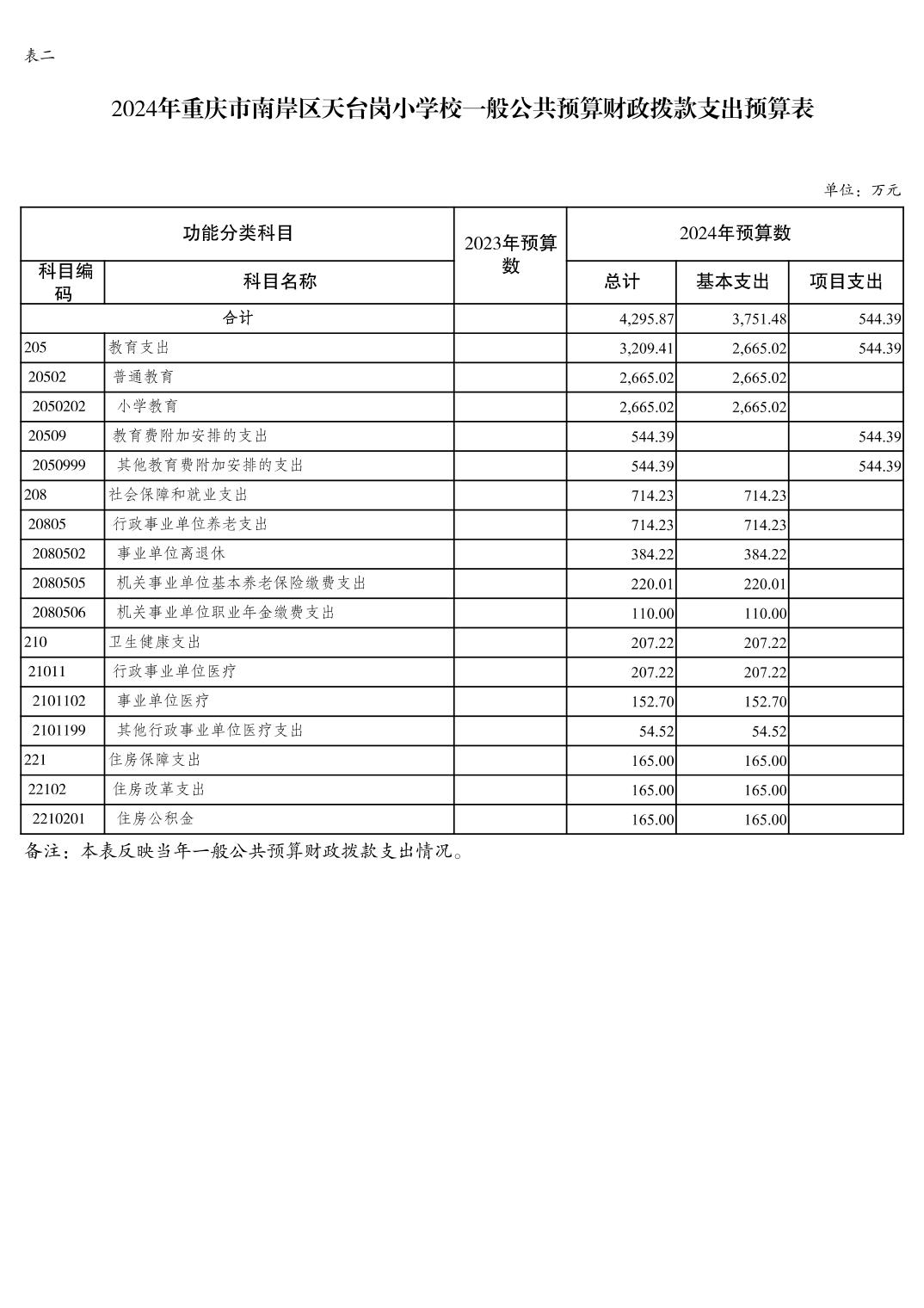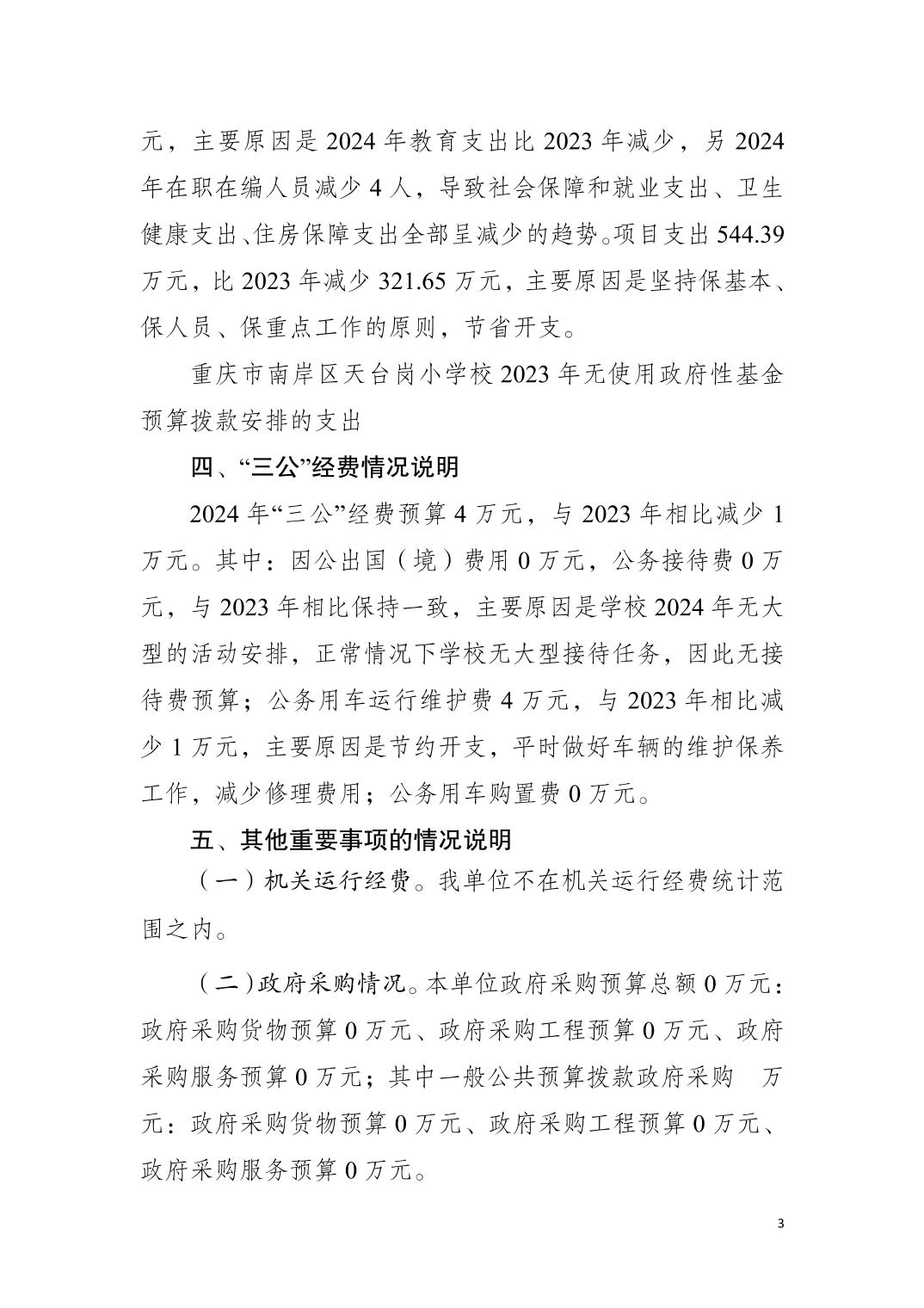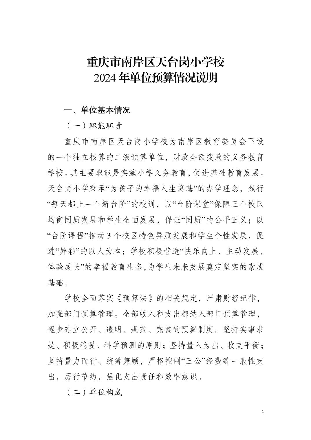 重庆市南岸区天台岗小学校2024年单位预算情况说明