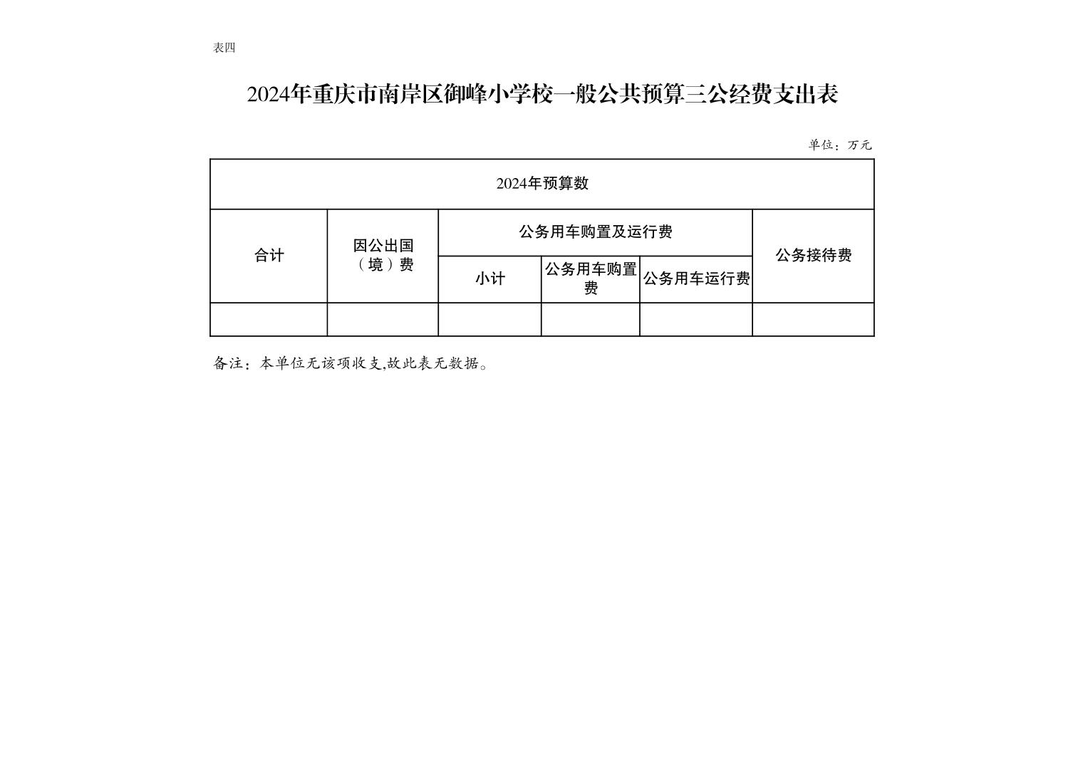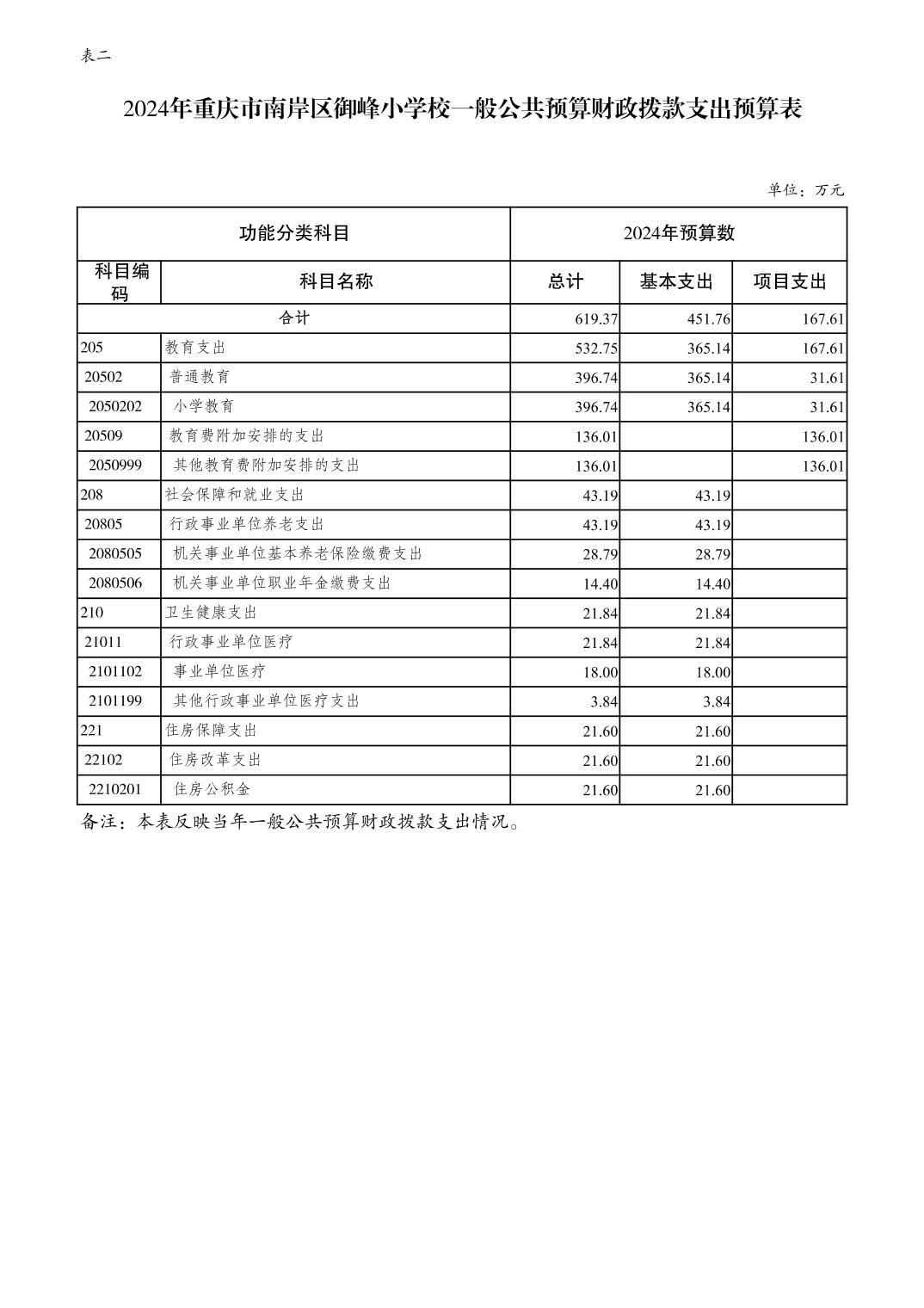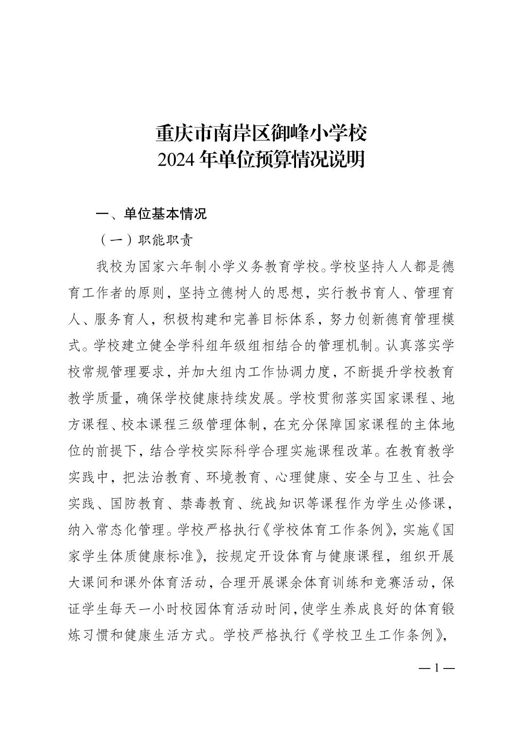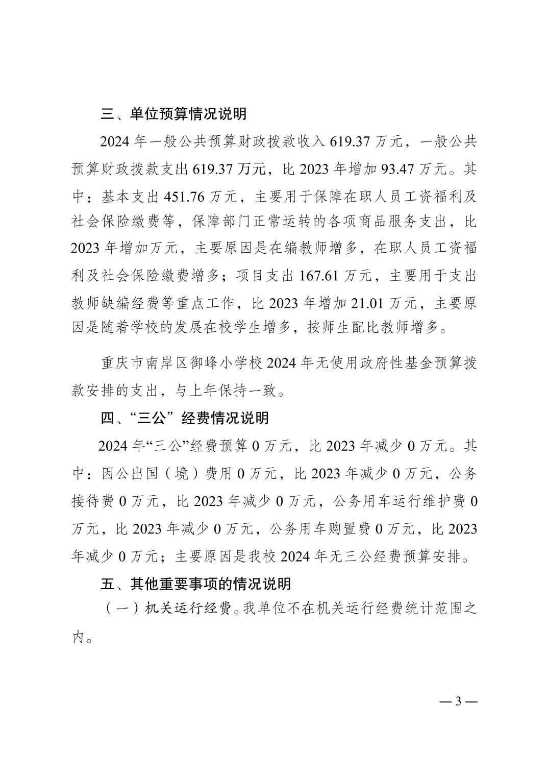 重庆市南岸区御峰小学校2024年单位预算情况说明