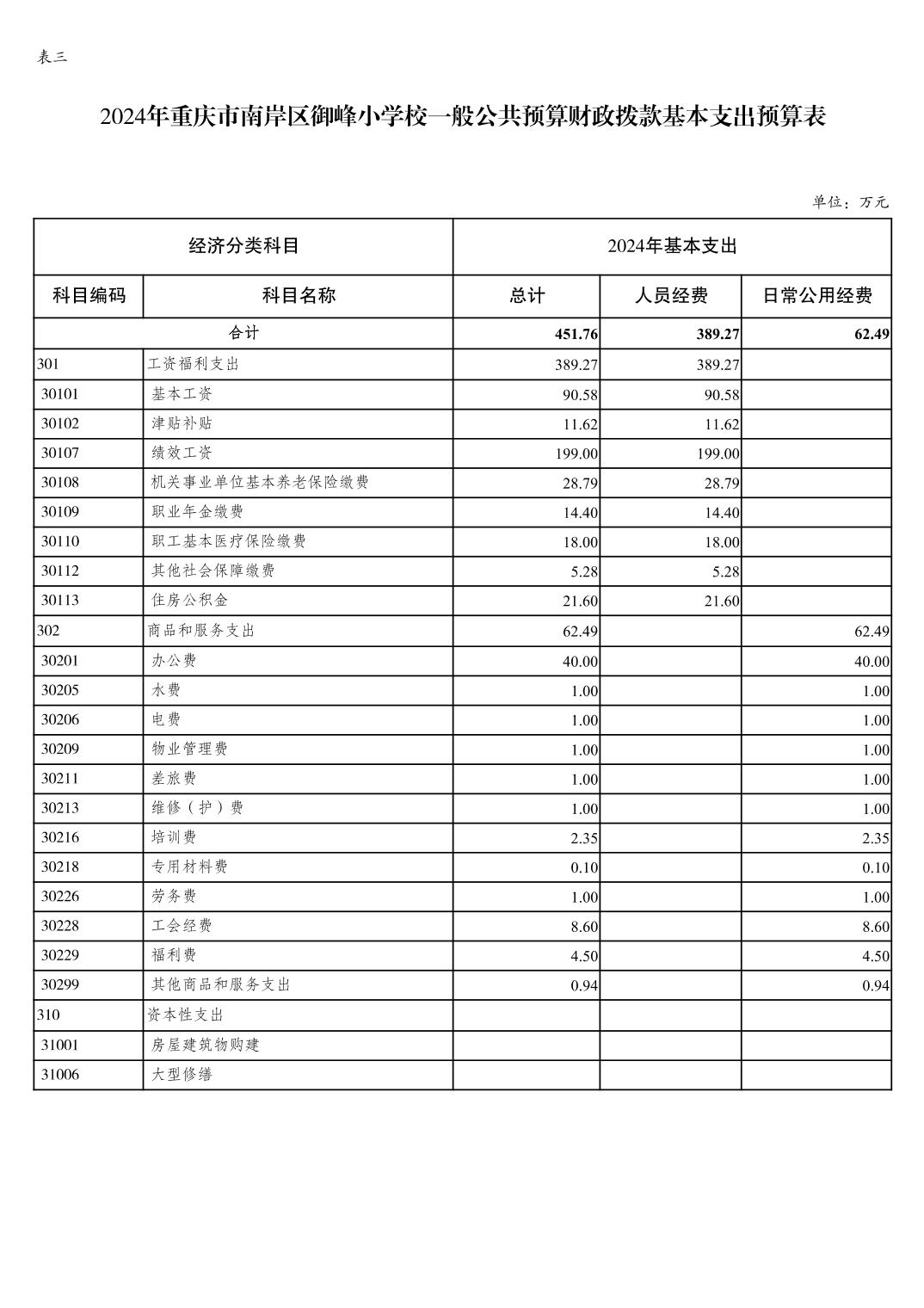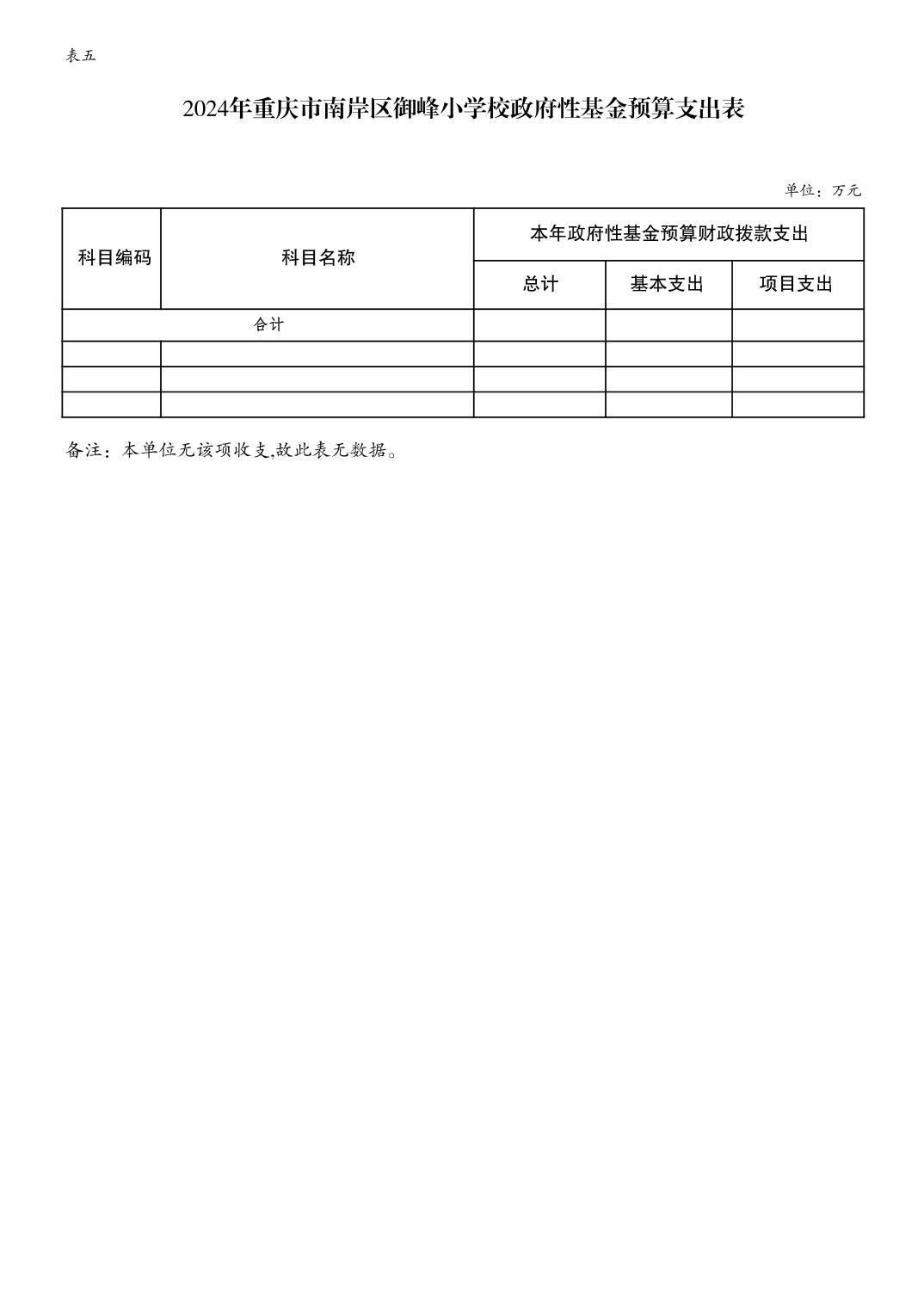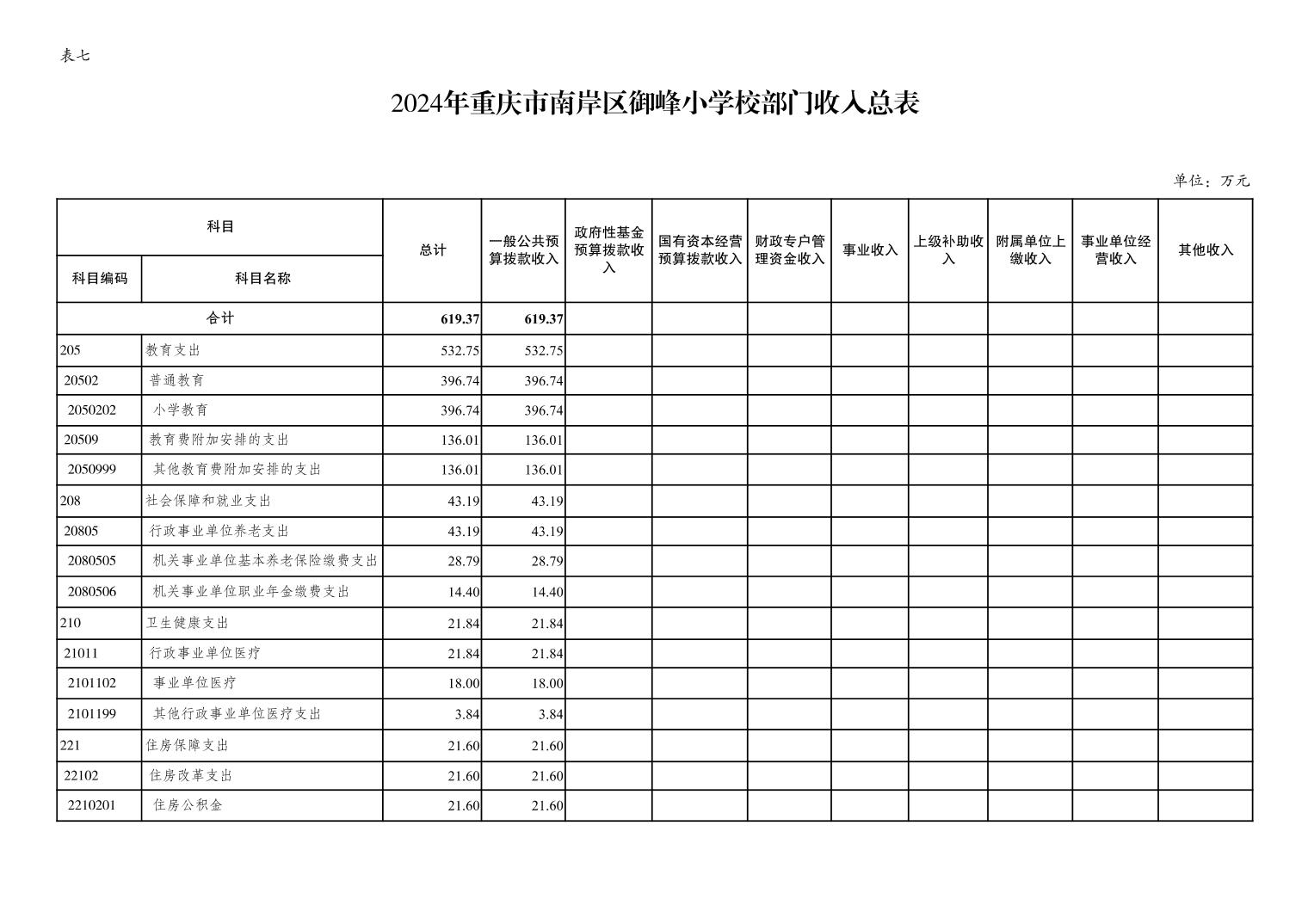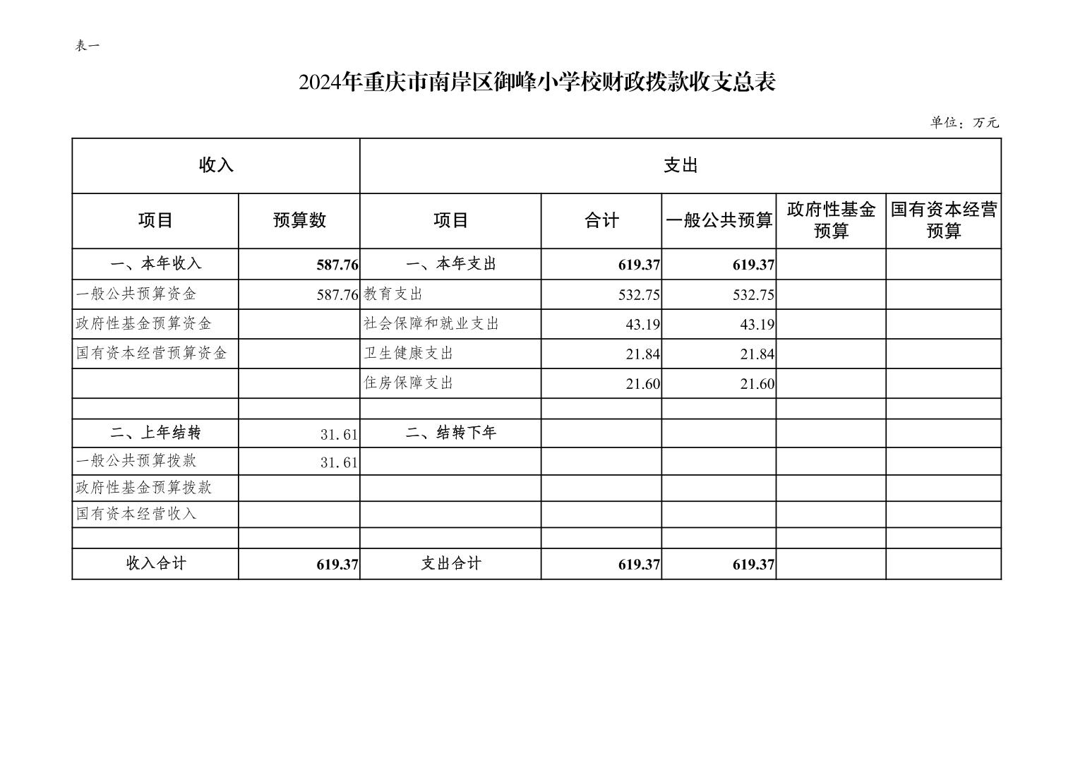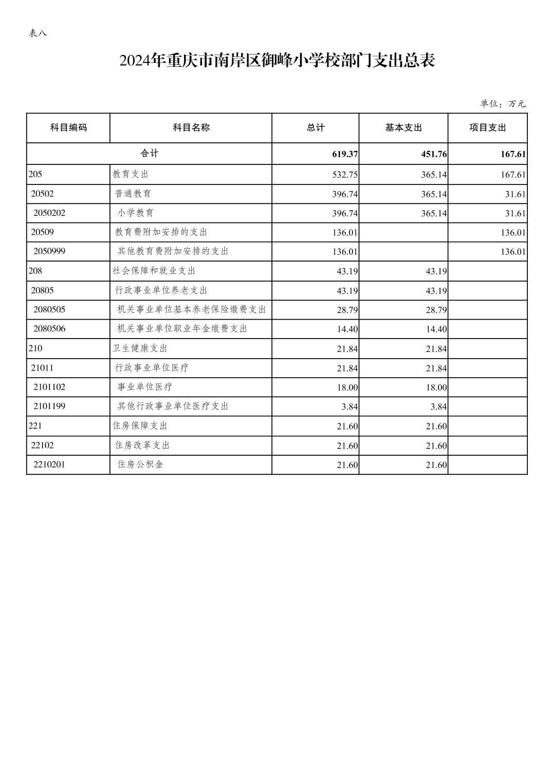 重庆市南岸区御峰小学校2024年单位预算情况说明