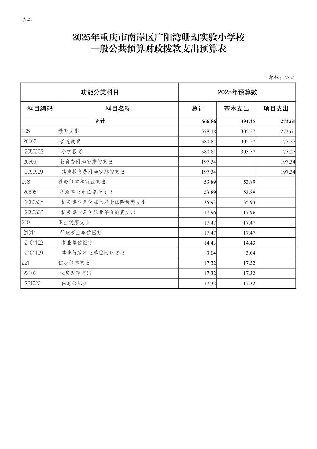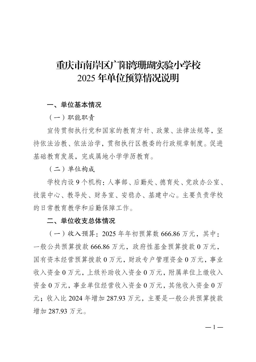 重庆市南岸区广阳湾珊瑚实验小学校2025年单位预算情况说明