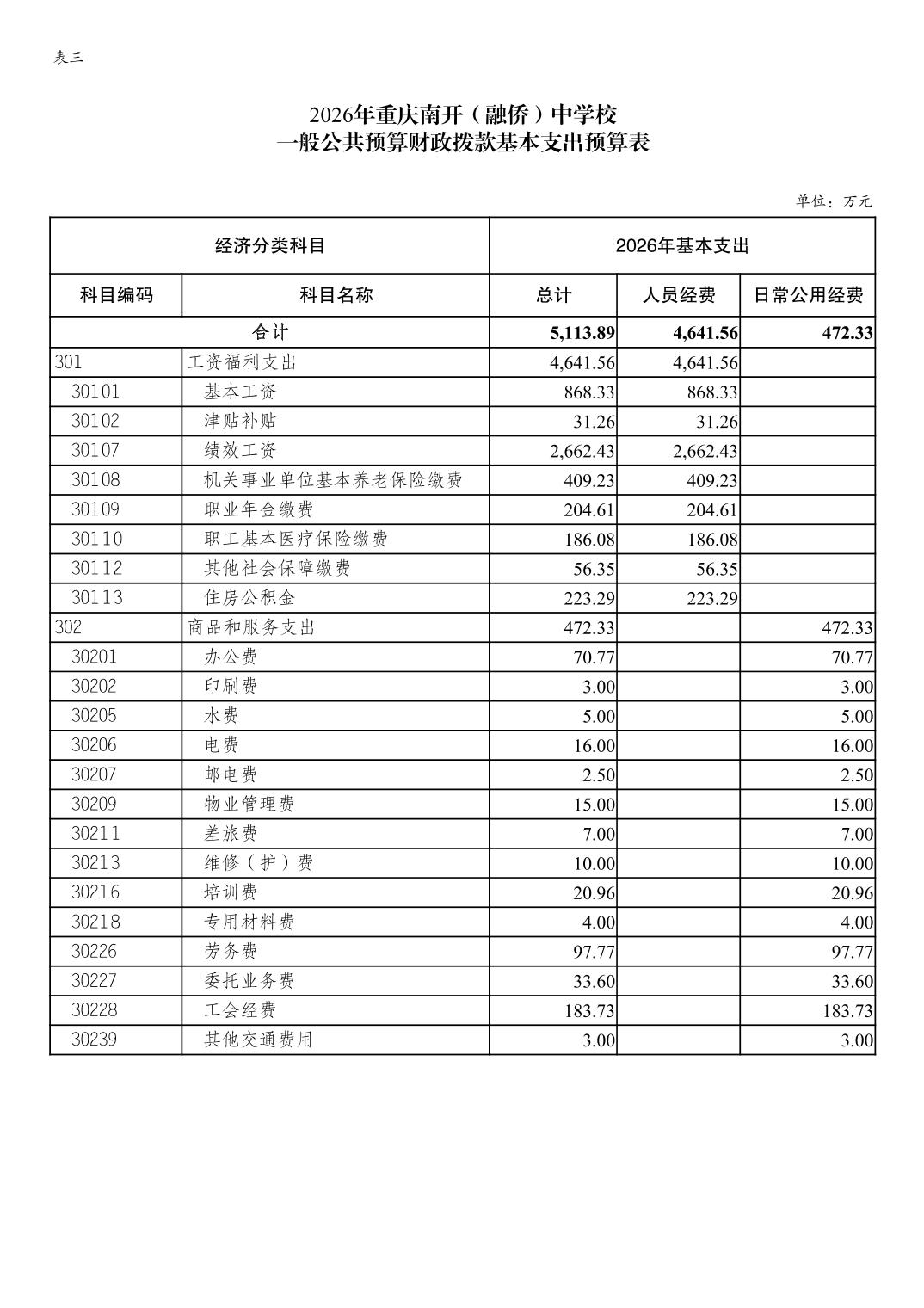 重庆南开(融侨)中学校2026年单位预算情况说明