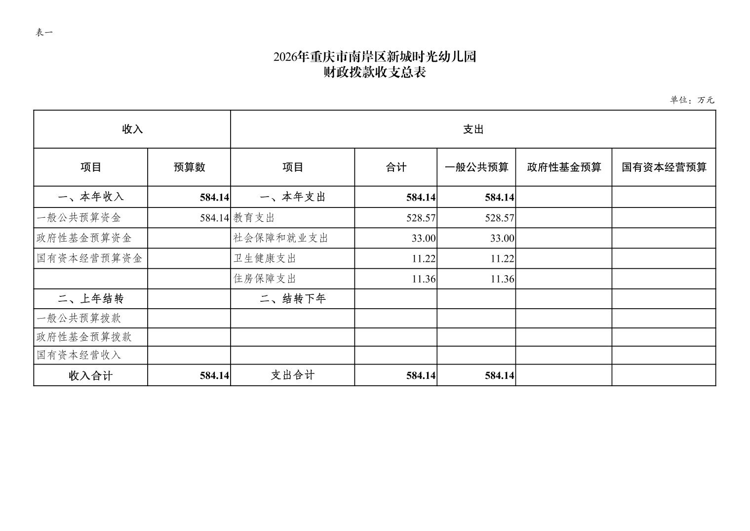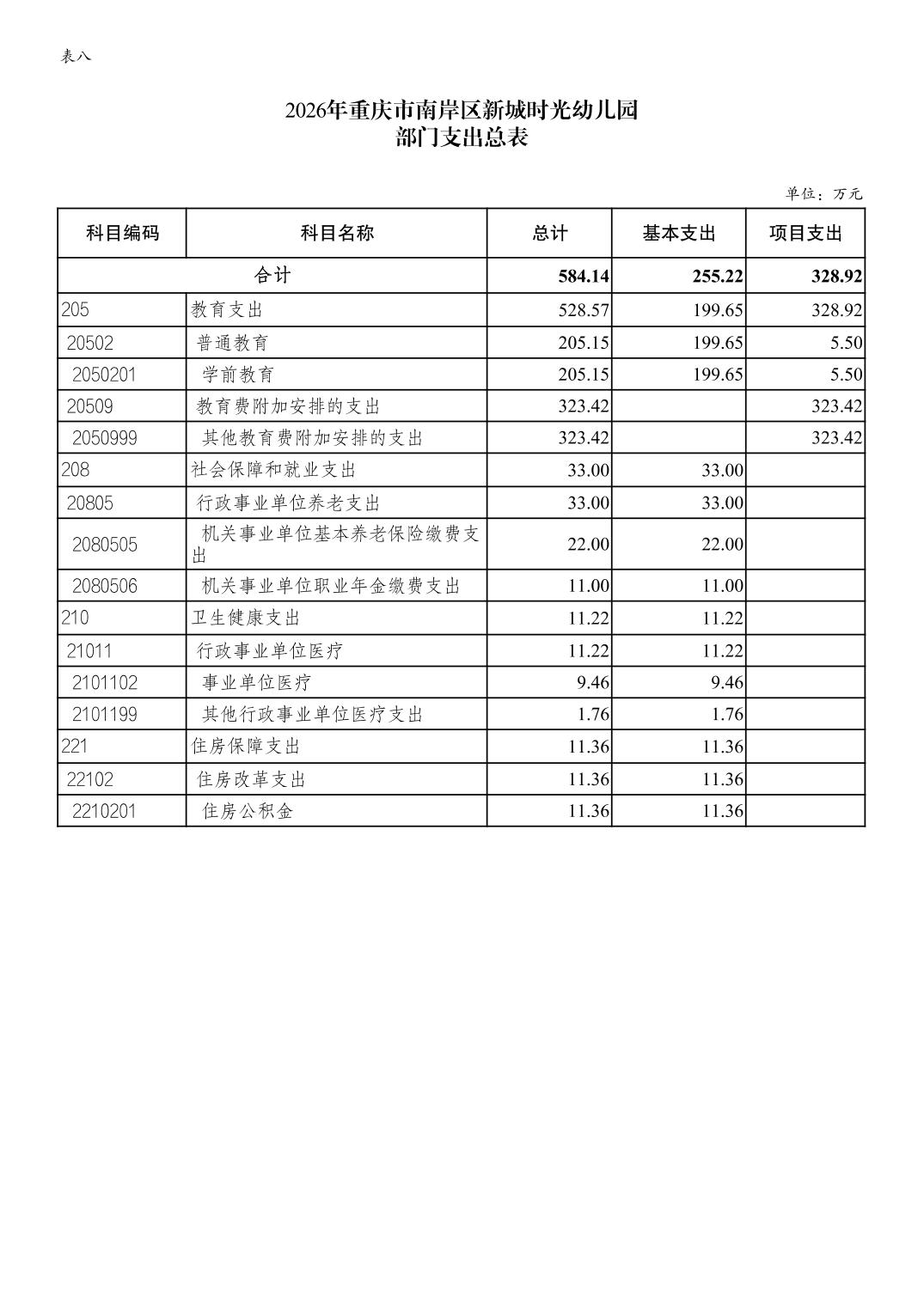 重庆市南岸区新城时光幼儿园2026年单位预算情况说明