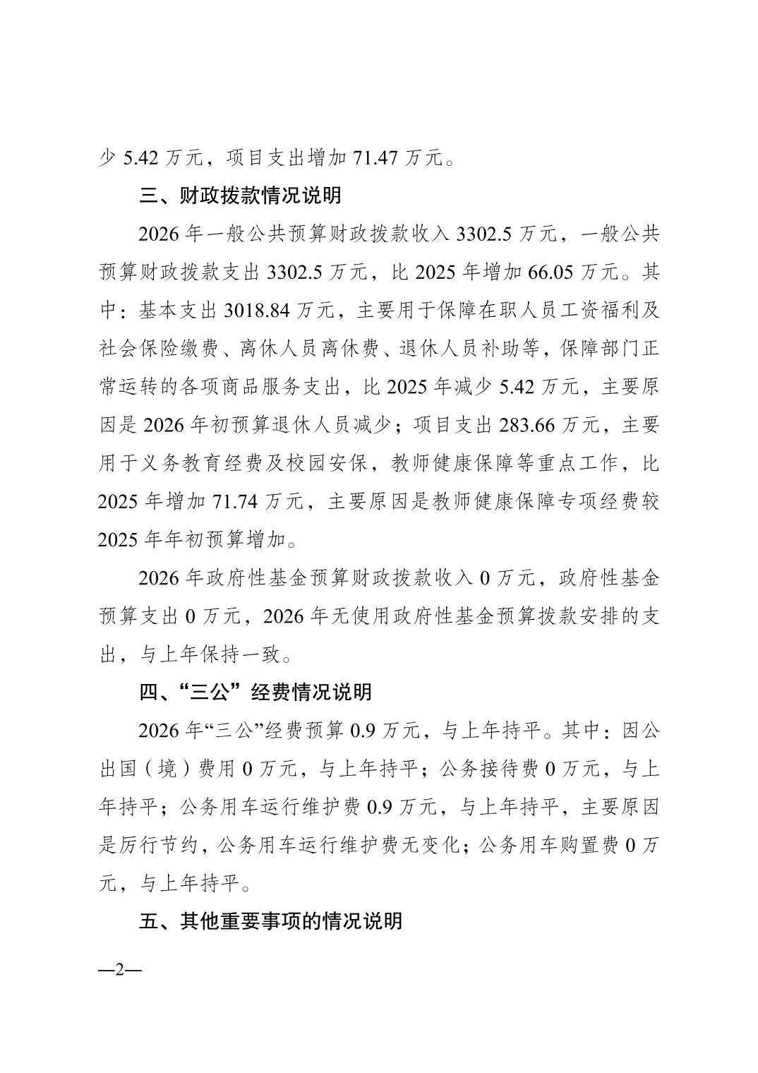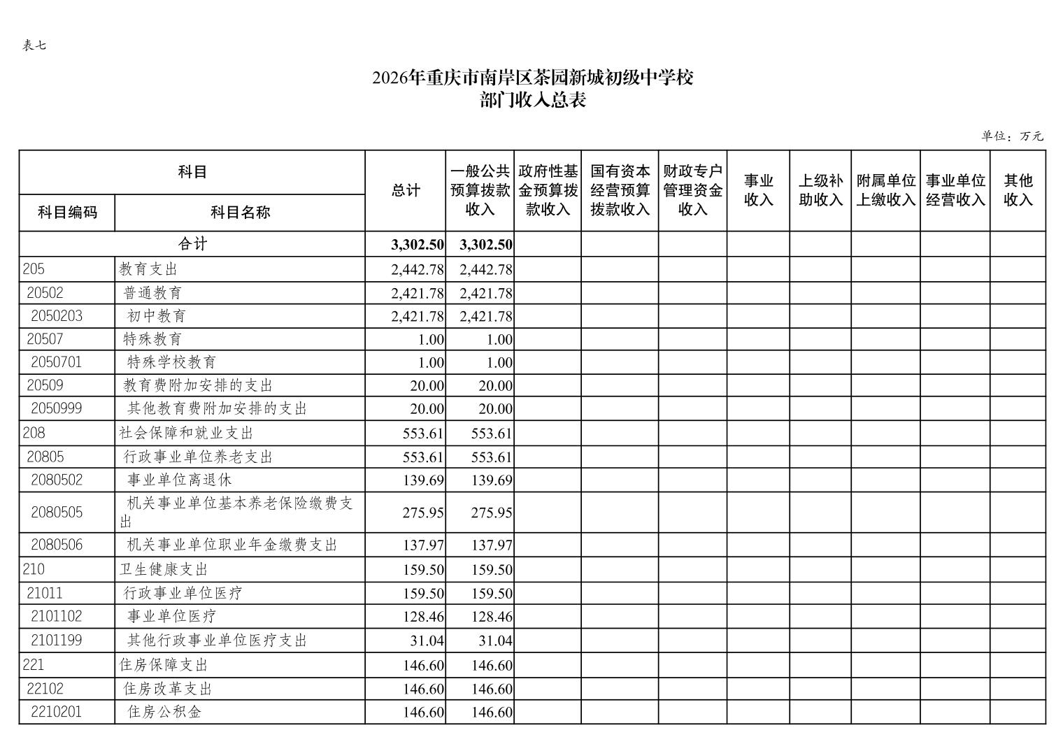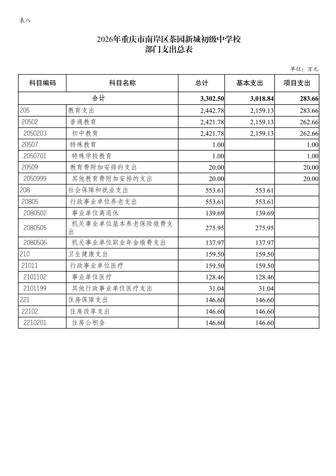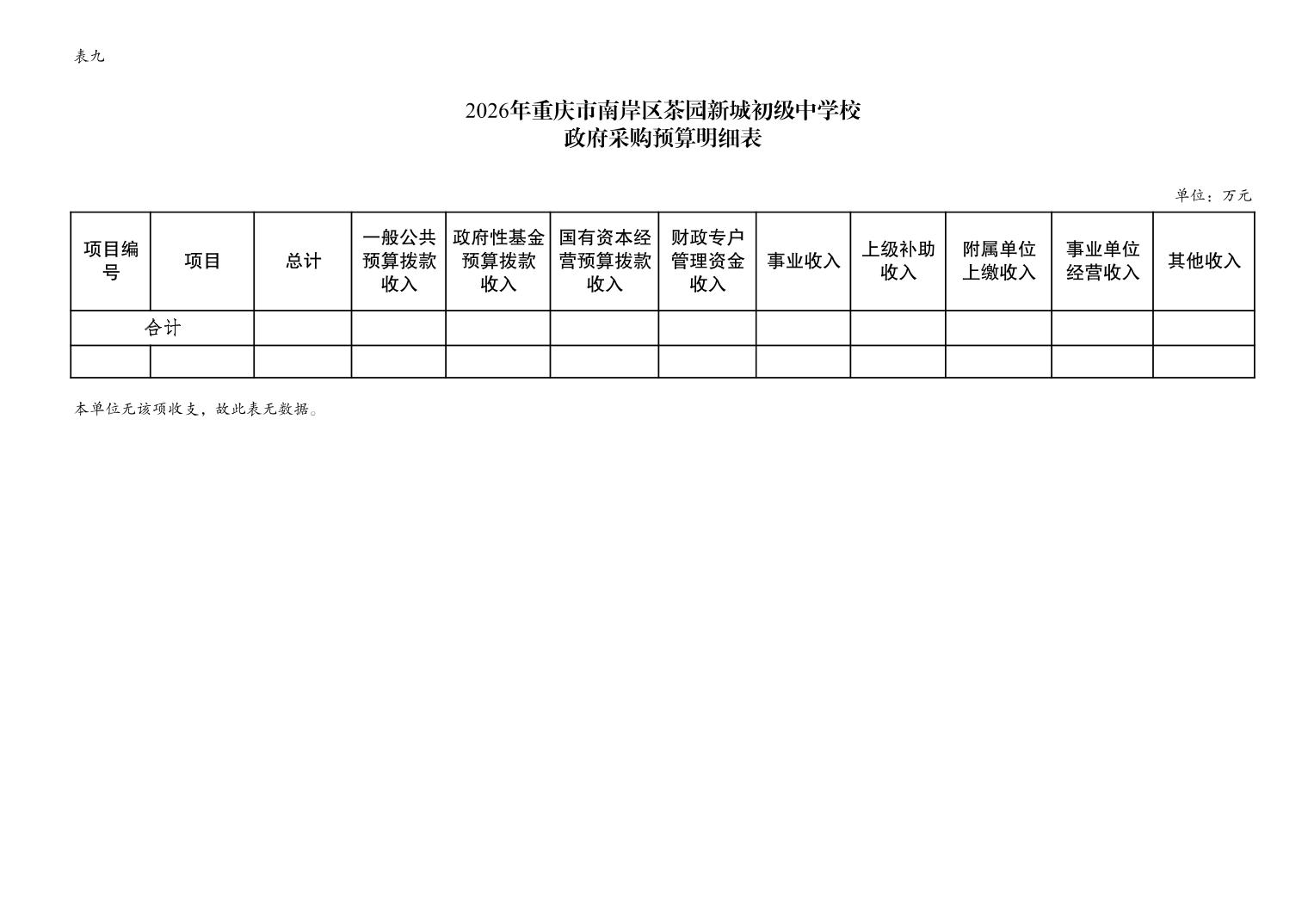 重庆市南岸区茶园新城初级中学校2026年单位预算情况说明