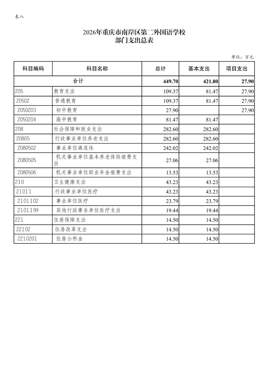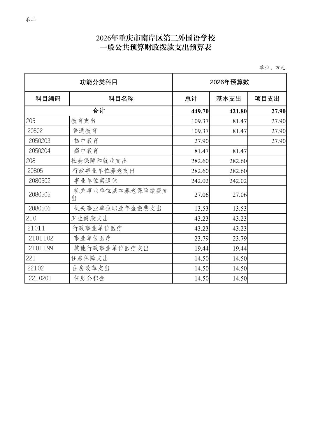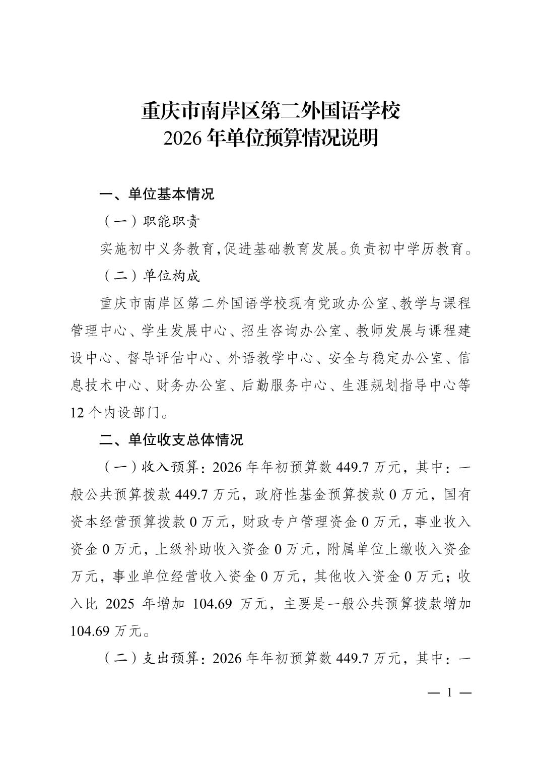 重庆市南岸区第二外国语学校2026年单位预算情况说明