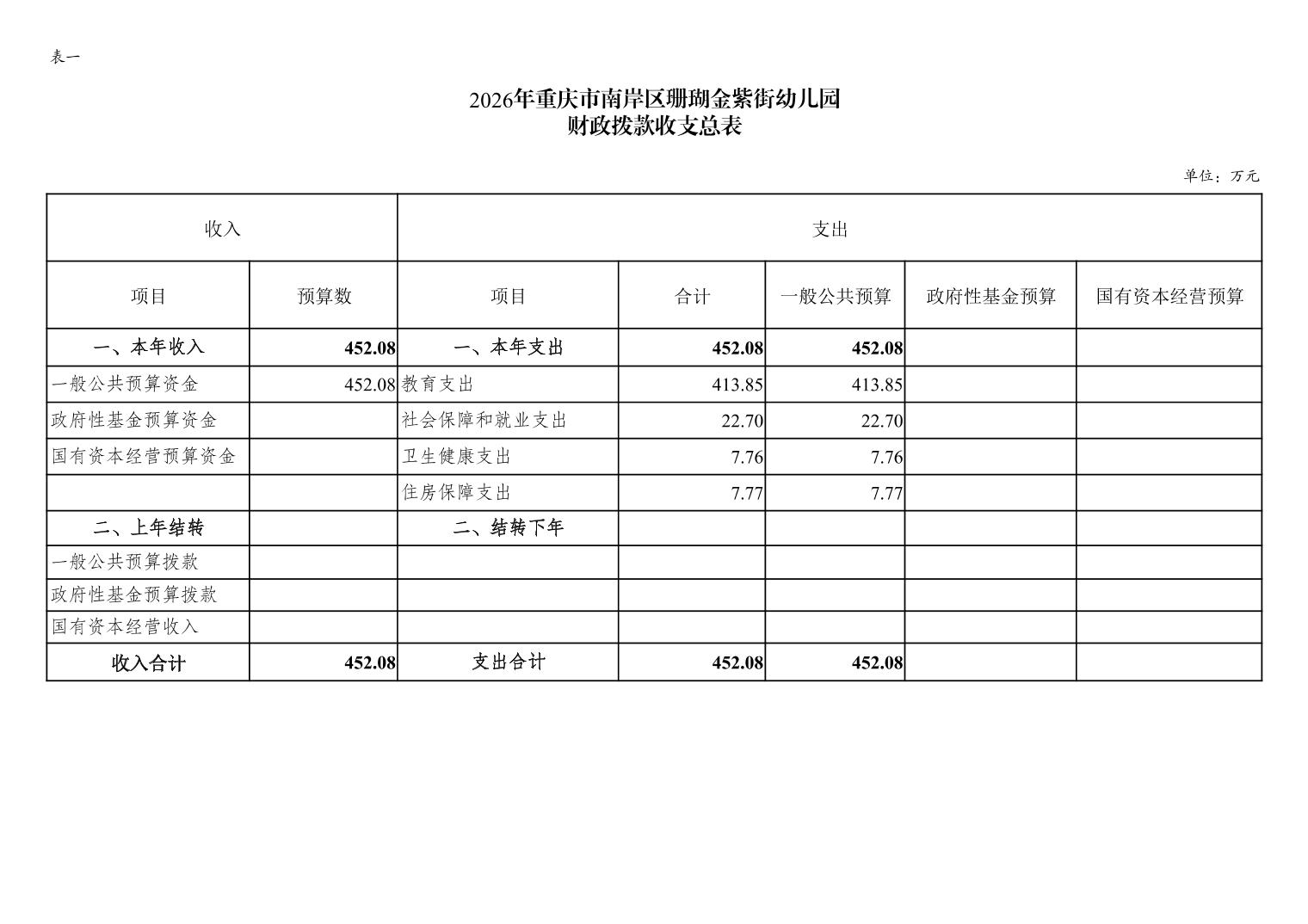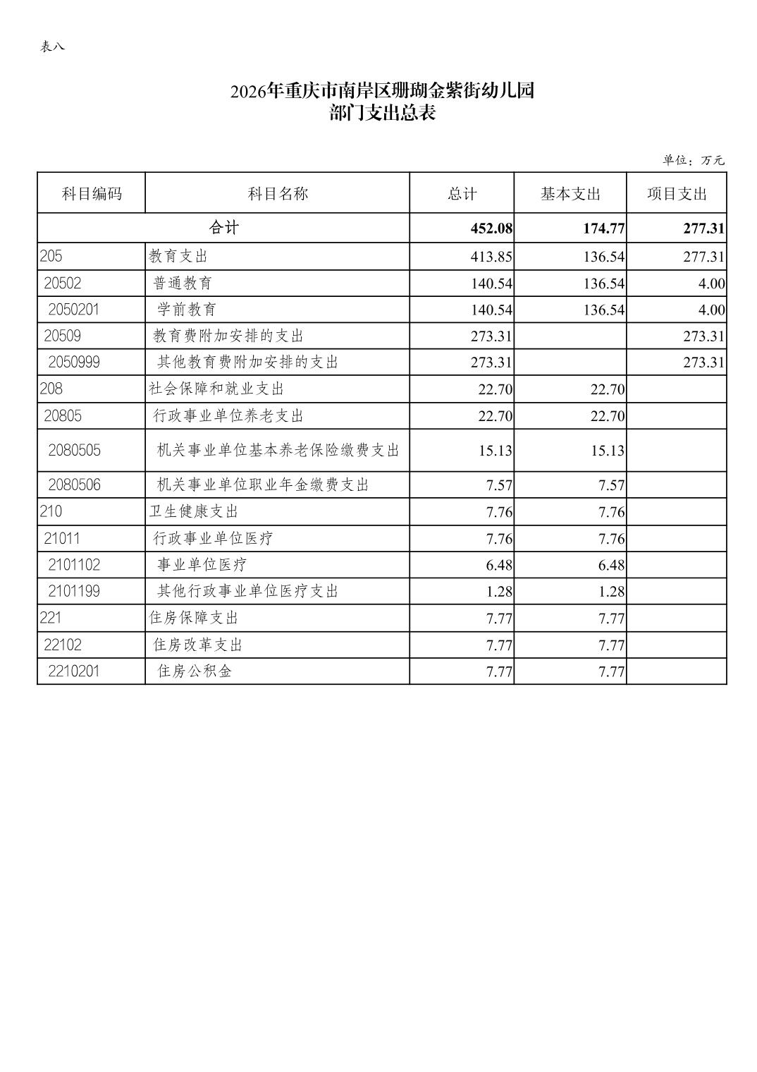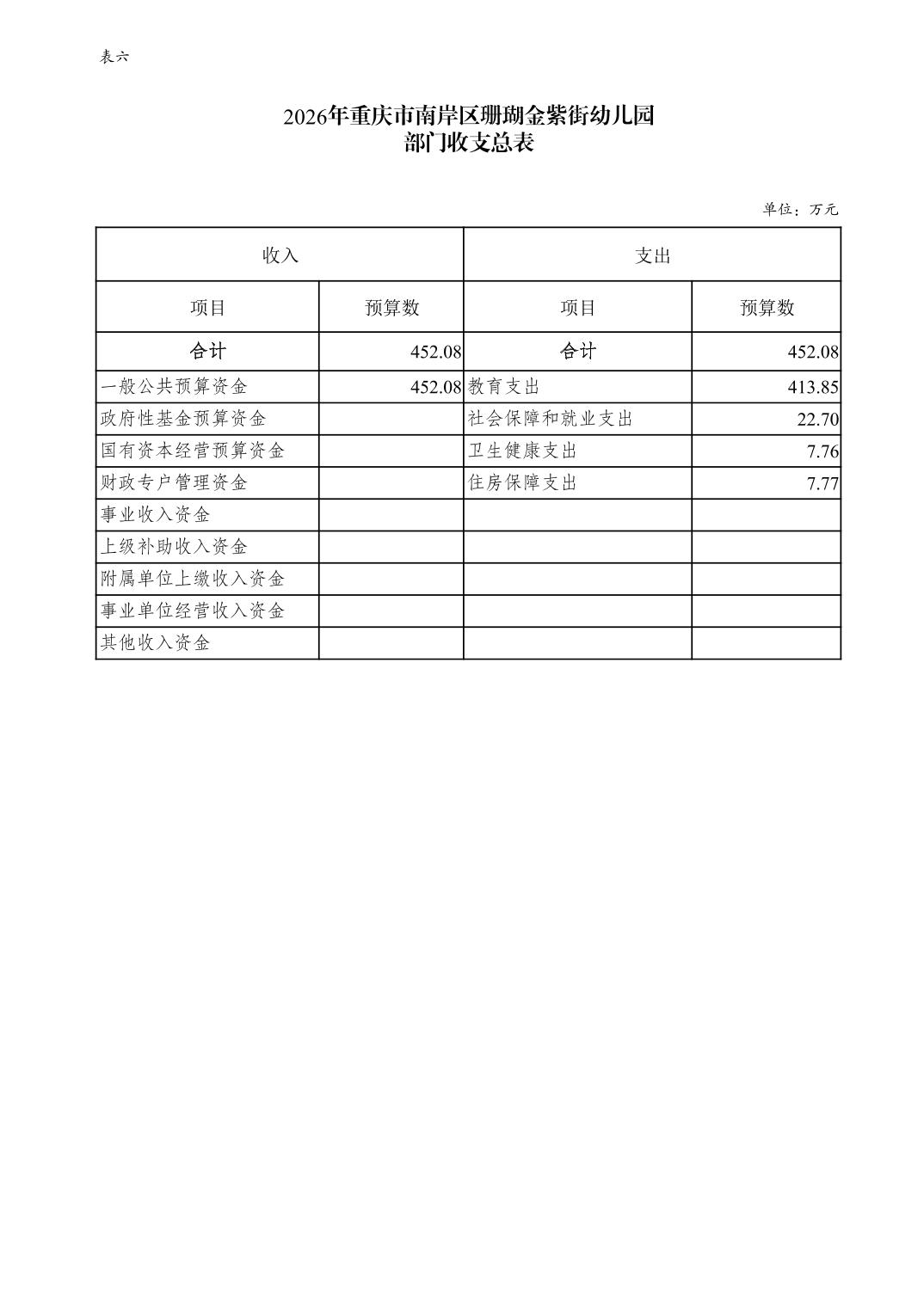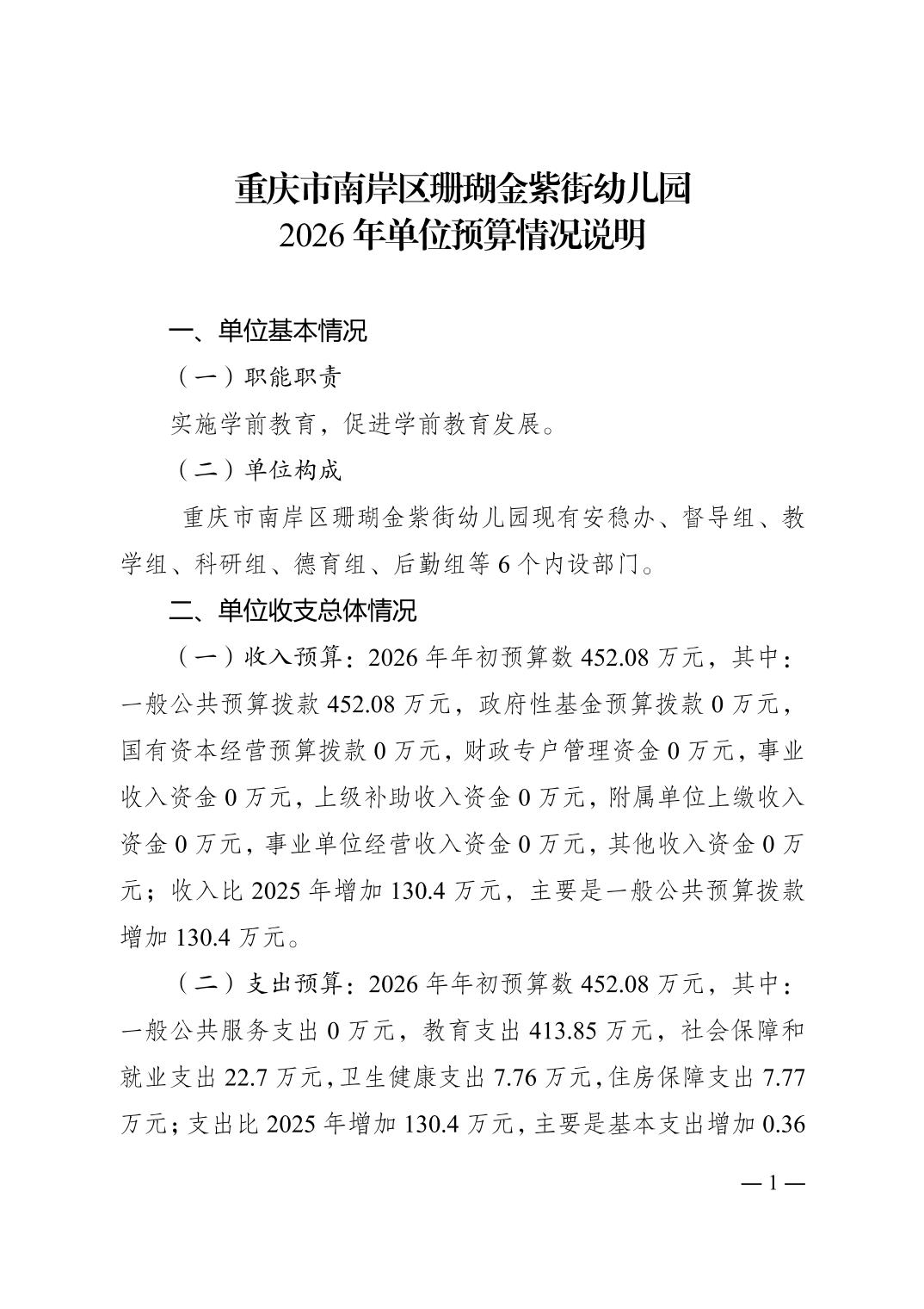 重庆市南岸区珊瑚金紫街幼儿园2026年单位预算情况说明