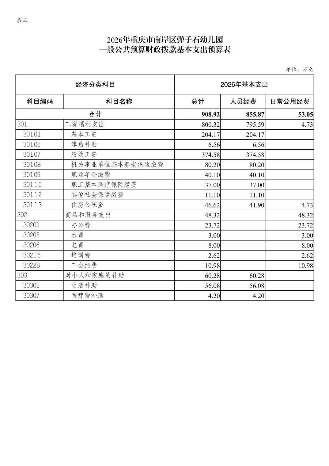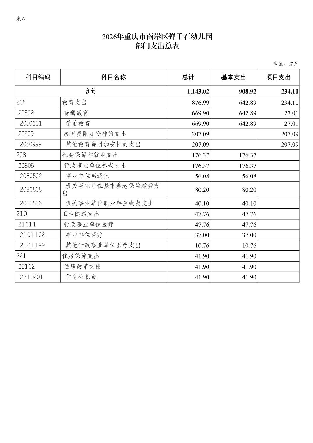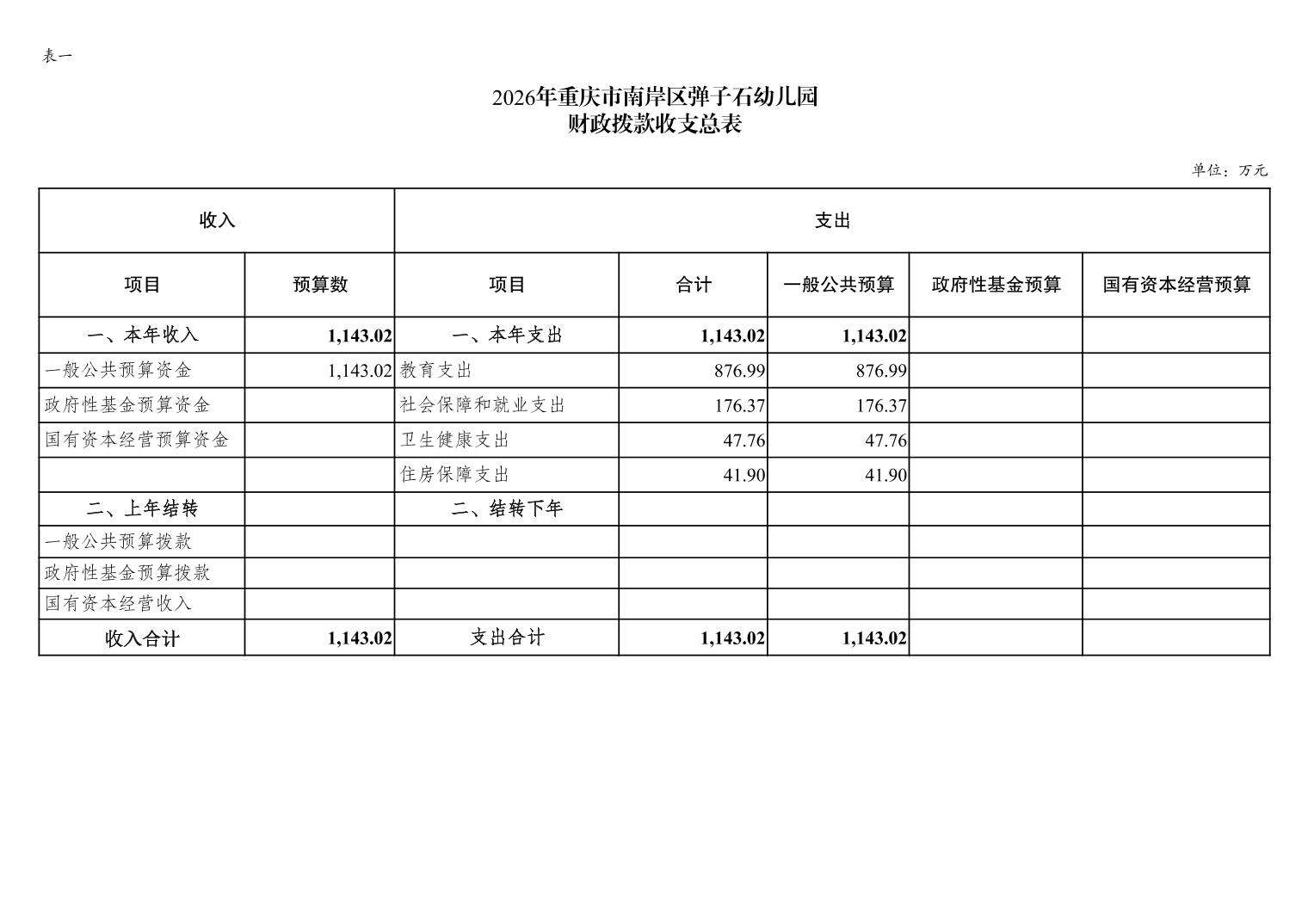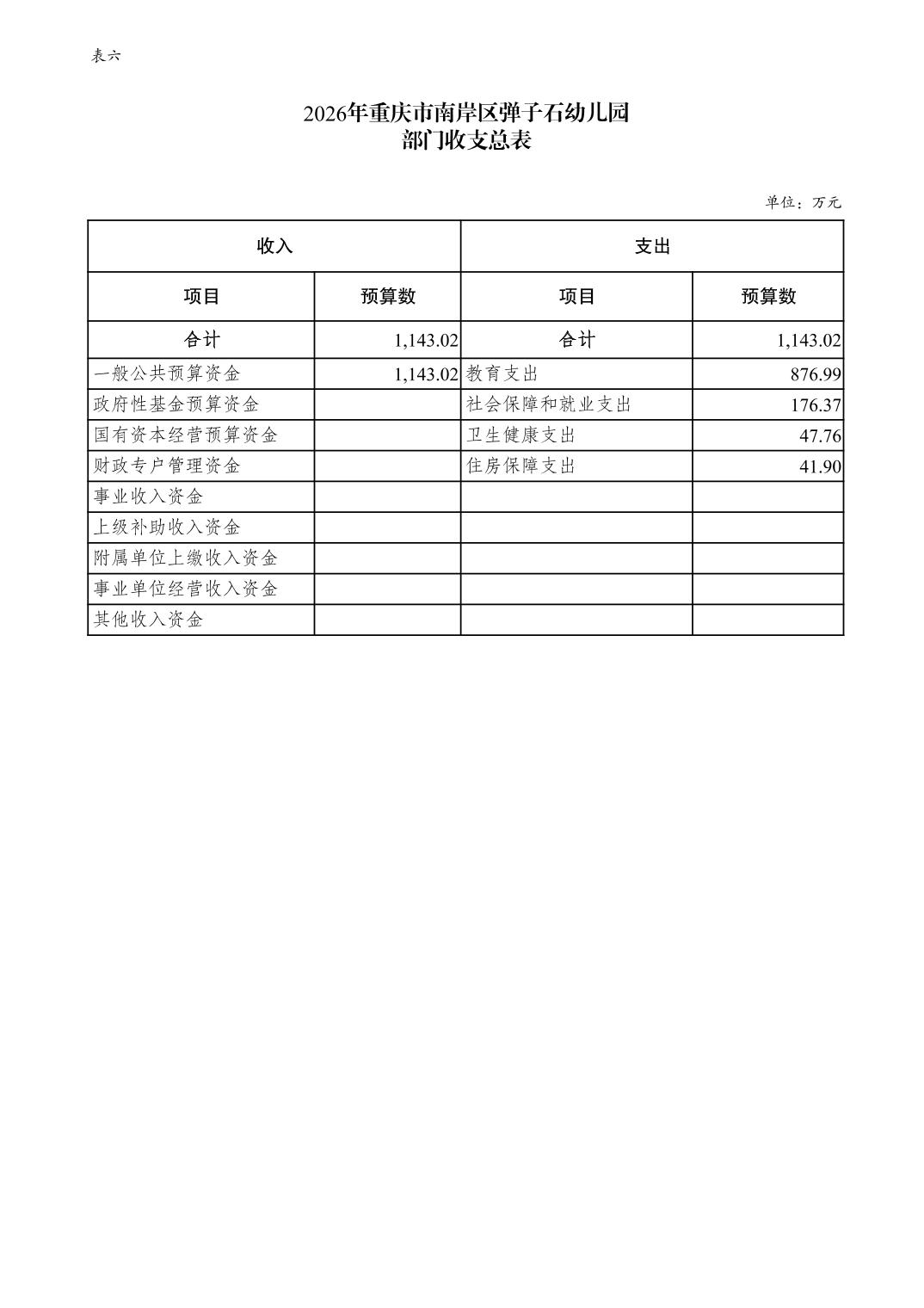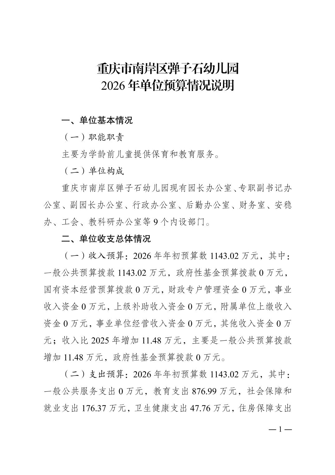 重庆市南岸区弹子石幼儿园2026年单位预算情况说明