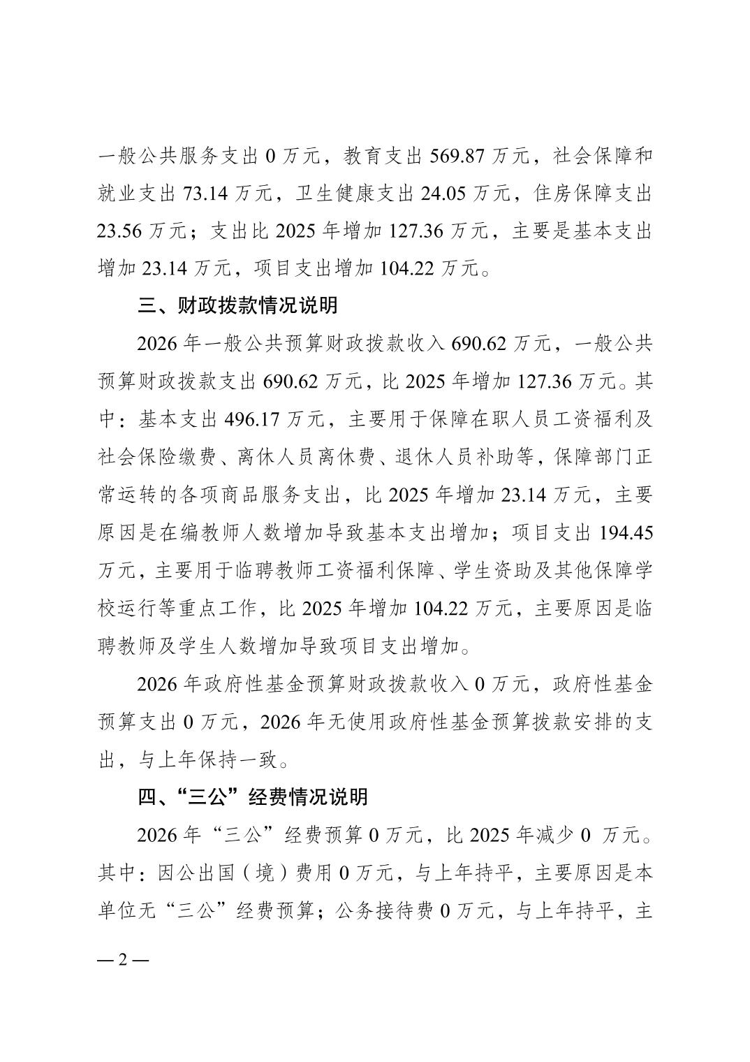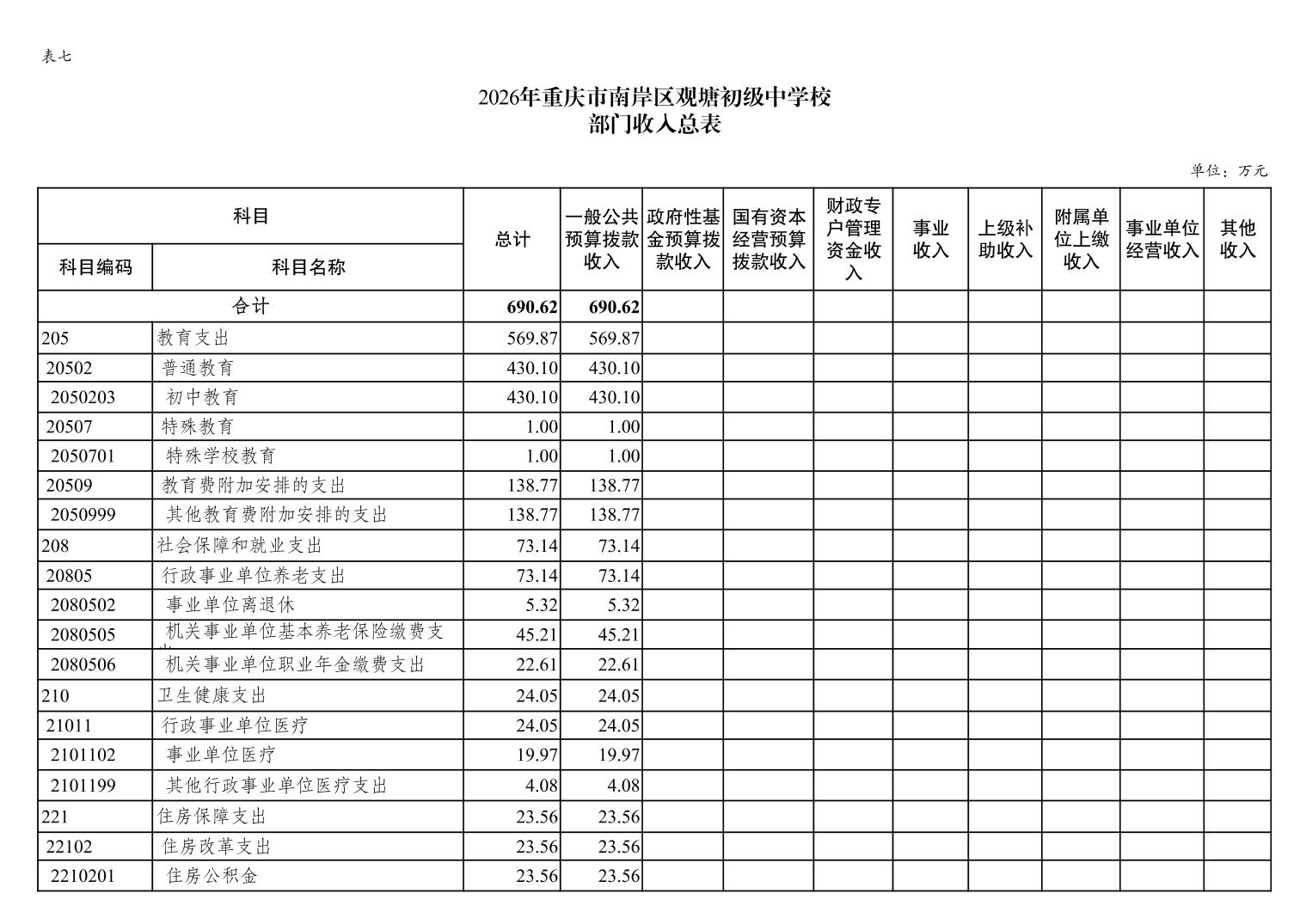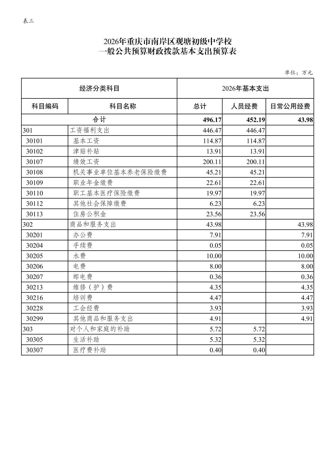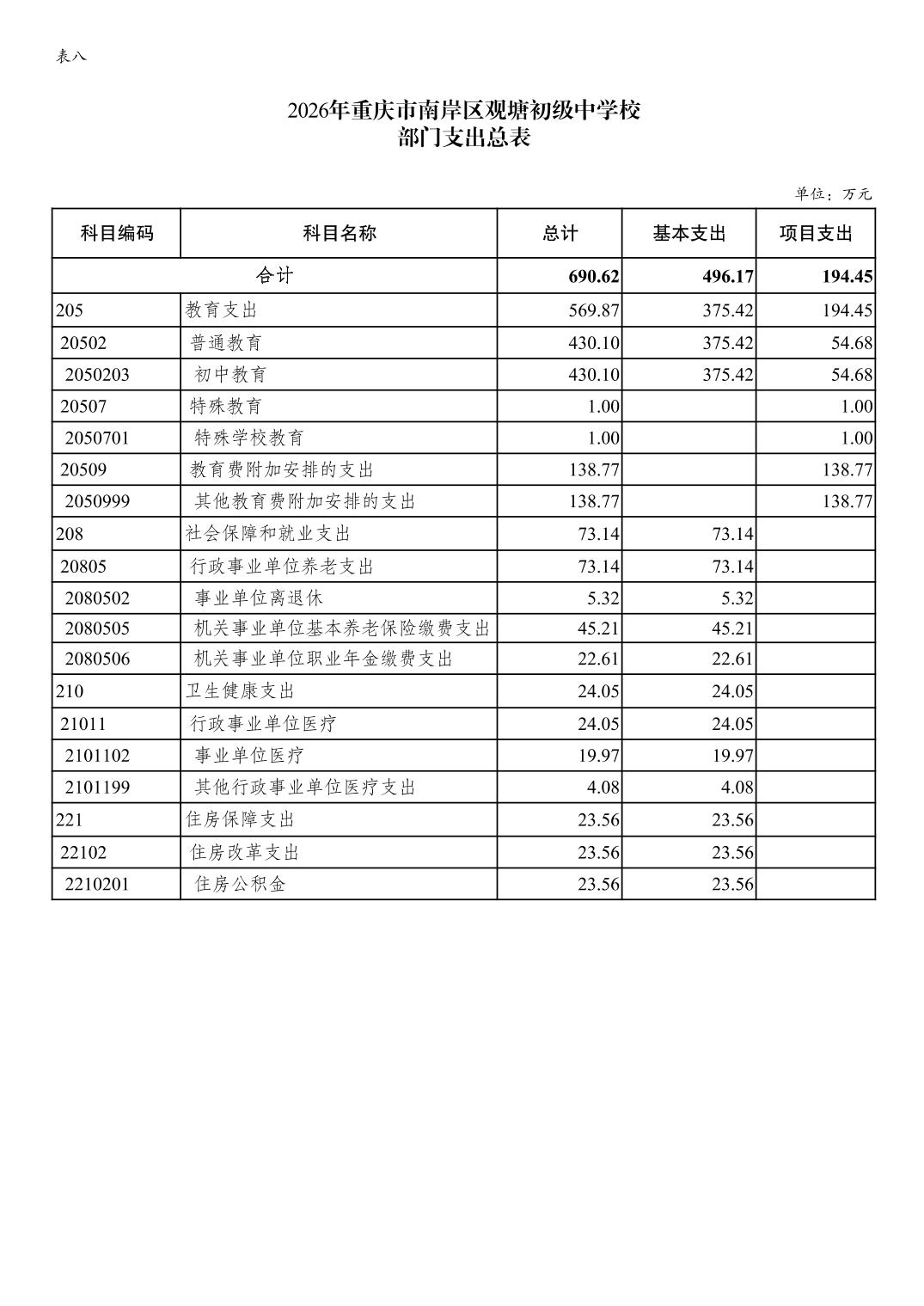 重庆市南岸区观塘初级中学校2026年单位预算情况说明