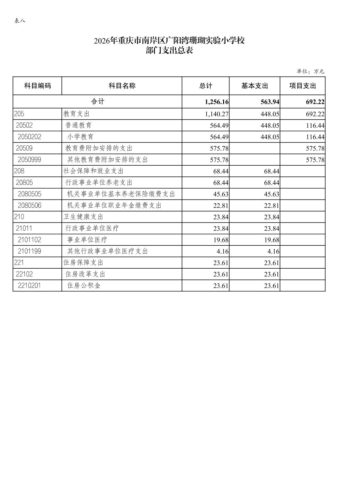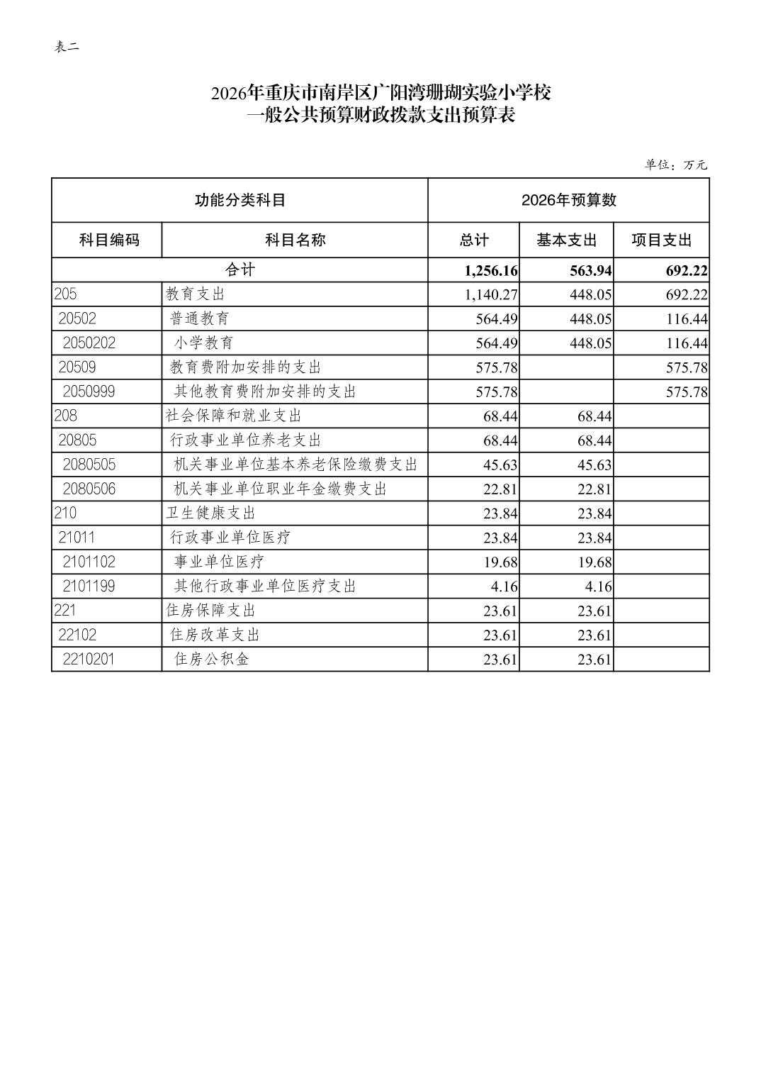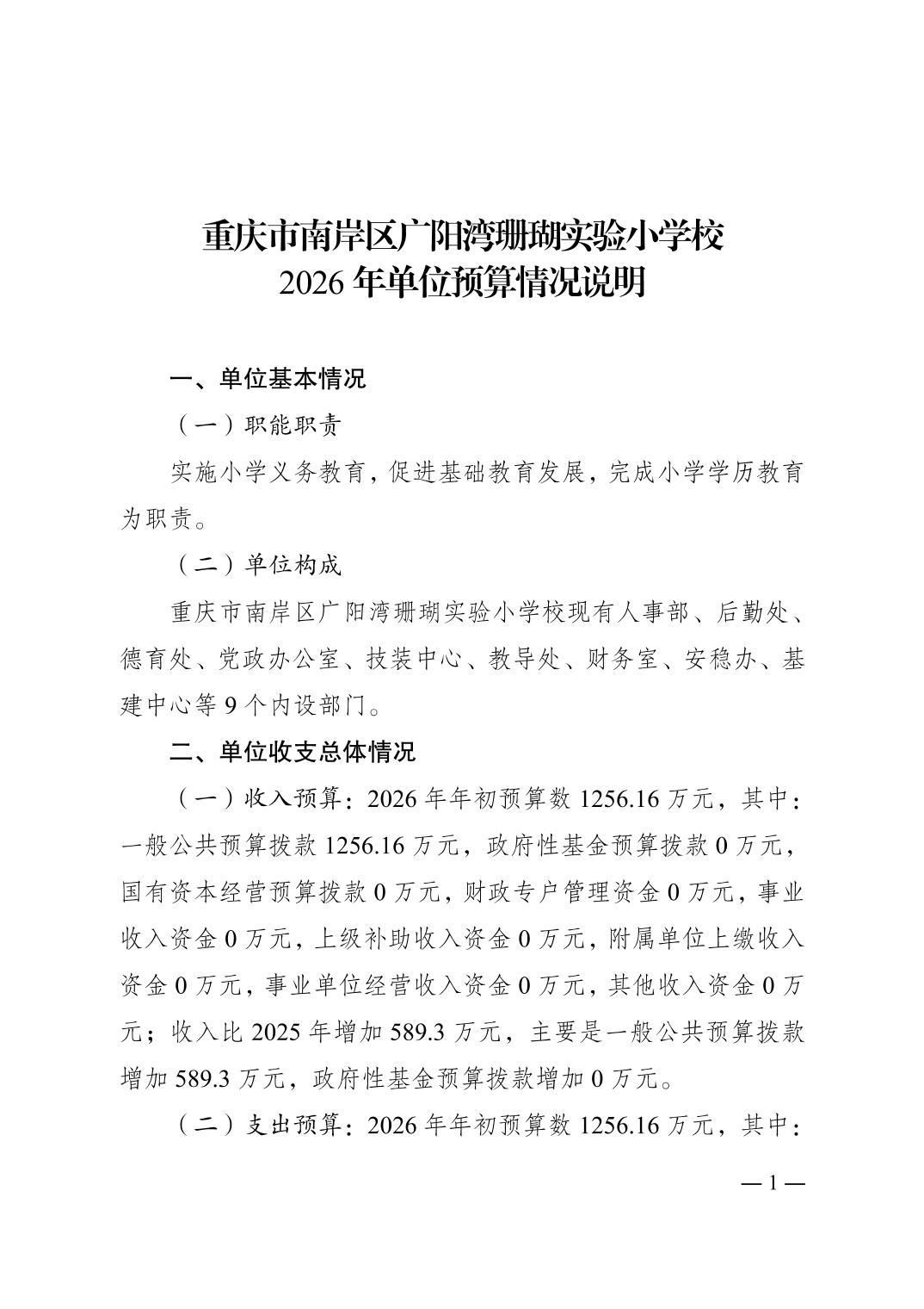 重庆市南岸区广阳湾珊瑚实验小学校2026年单位预算情况说明