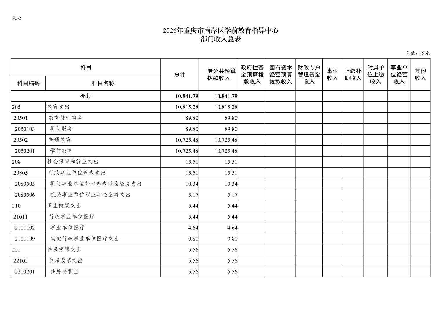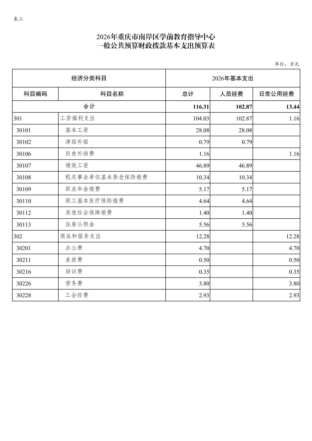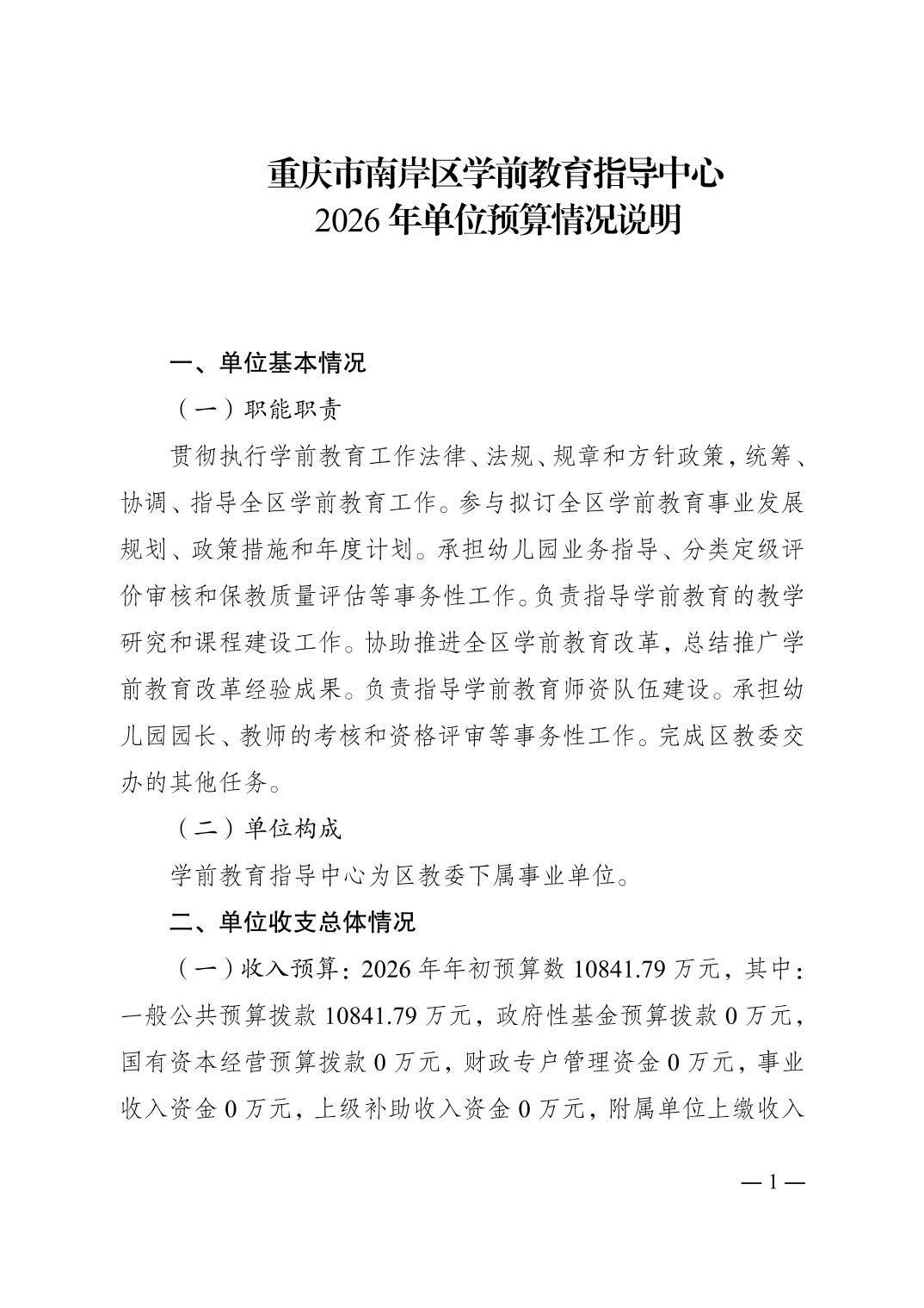 重庆市南岸区学前教育指导中心2026年单位预算情况说明
