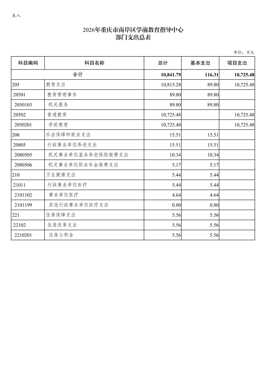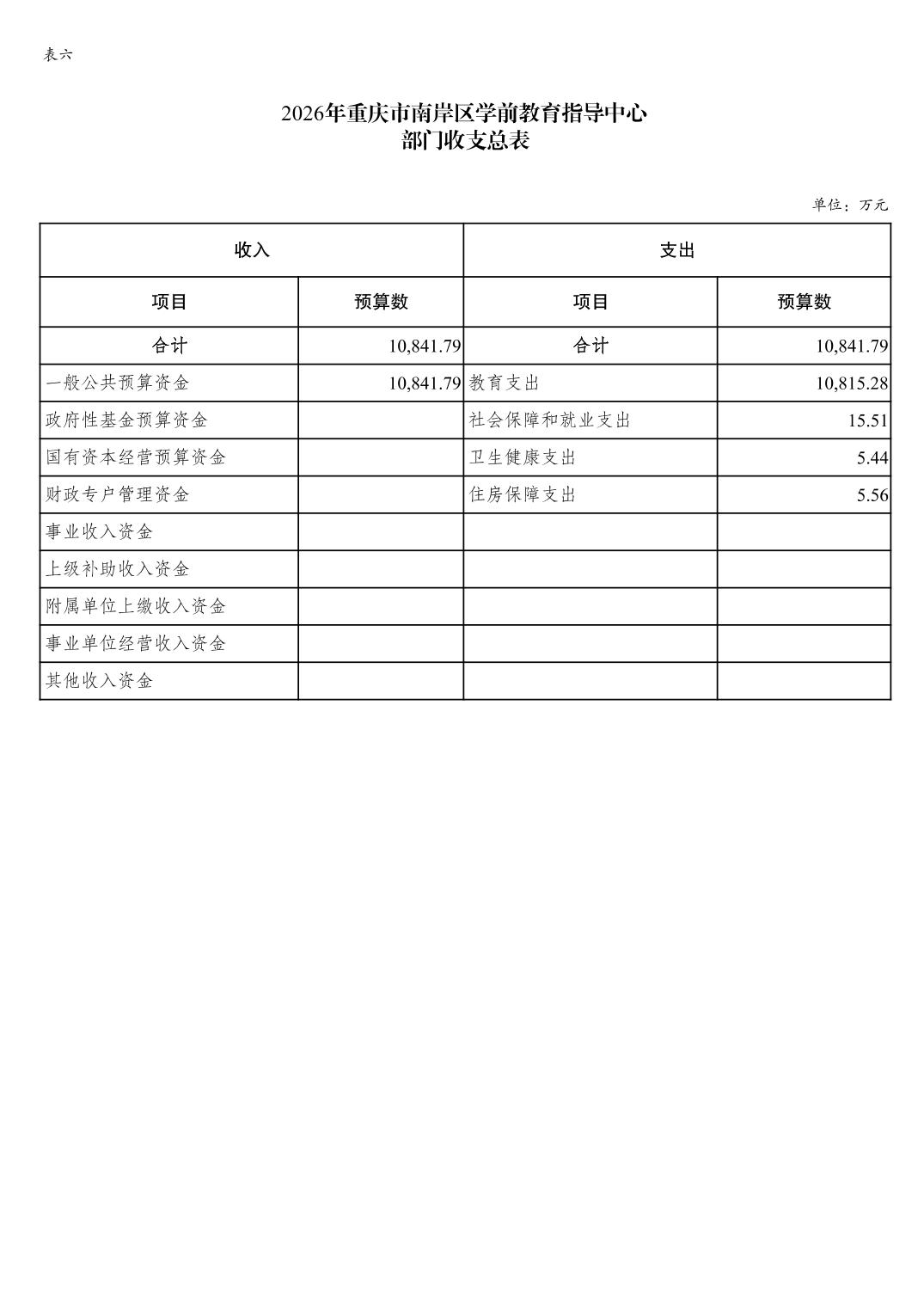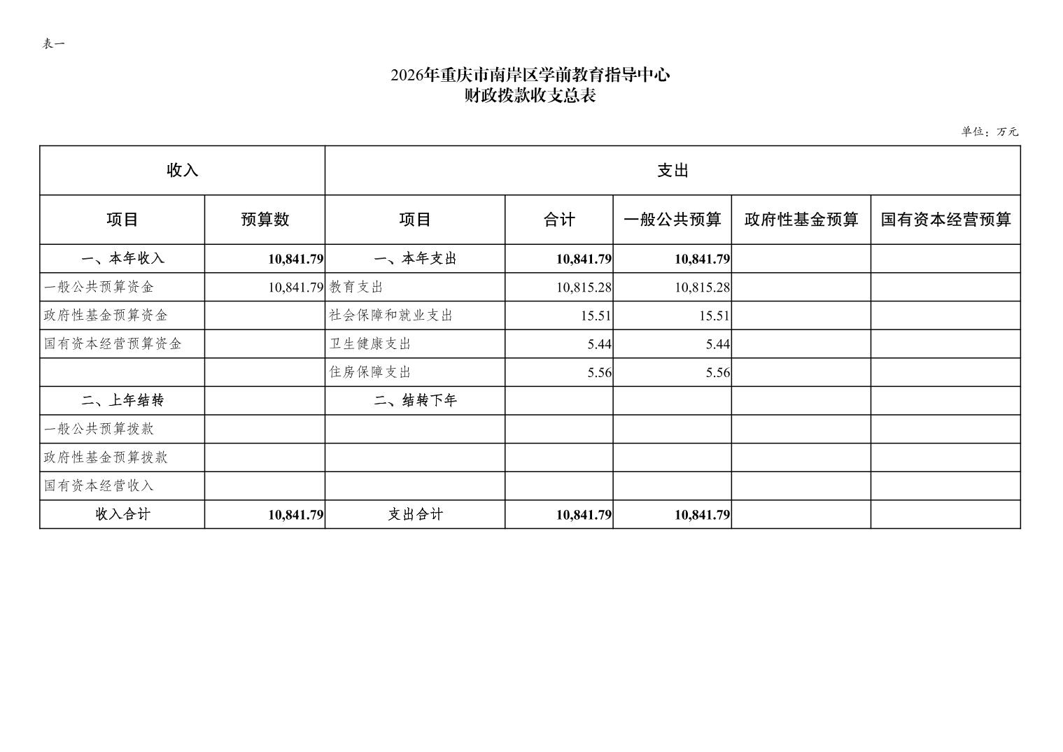 重庆市南岸区学前教育指导中心2026年单位预算情况说明