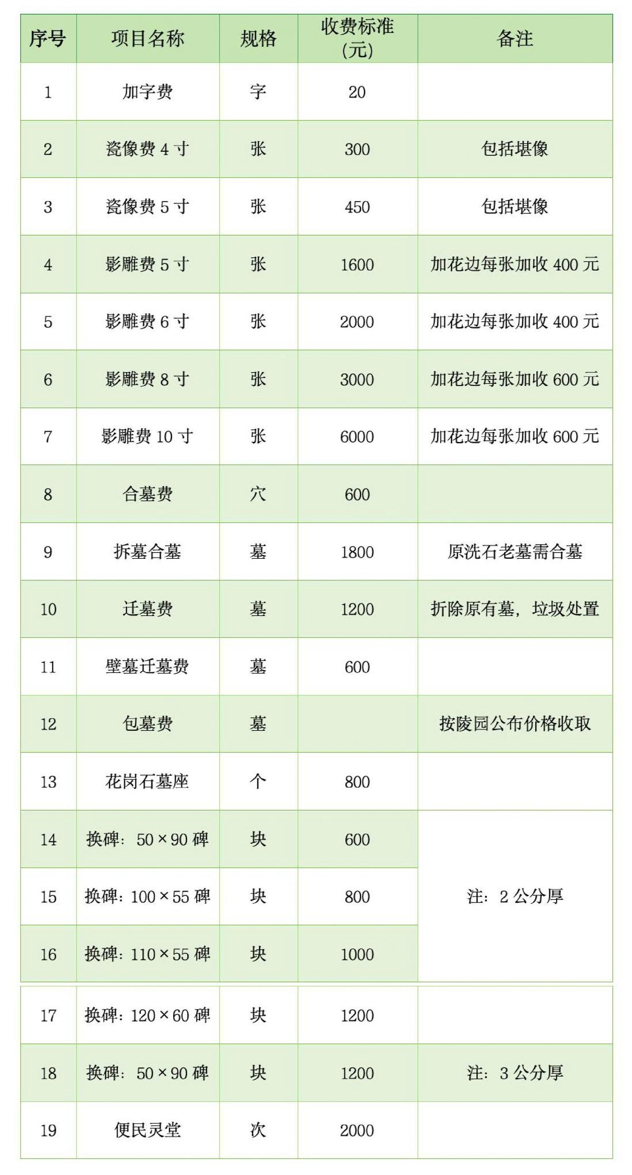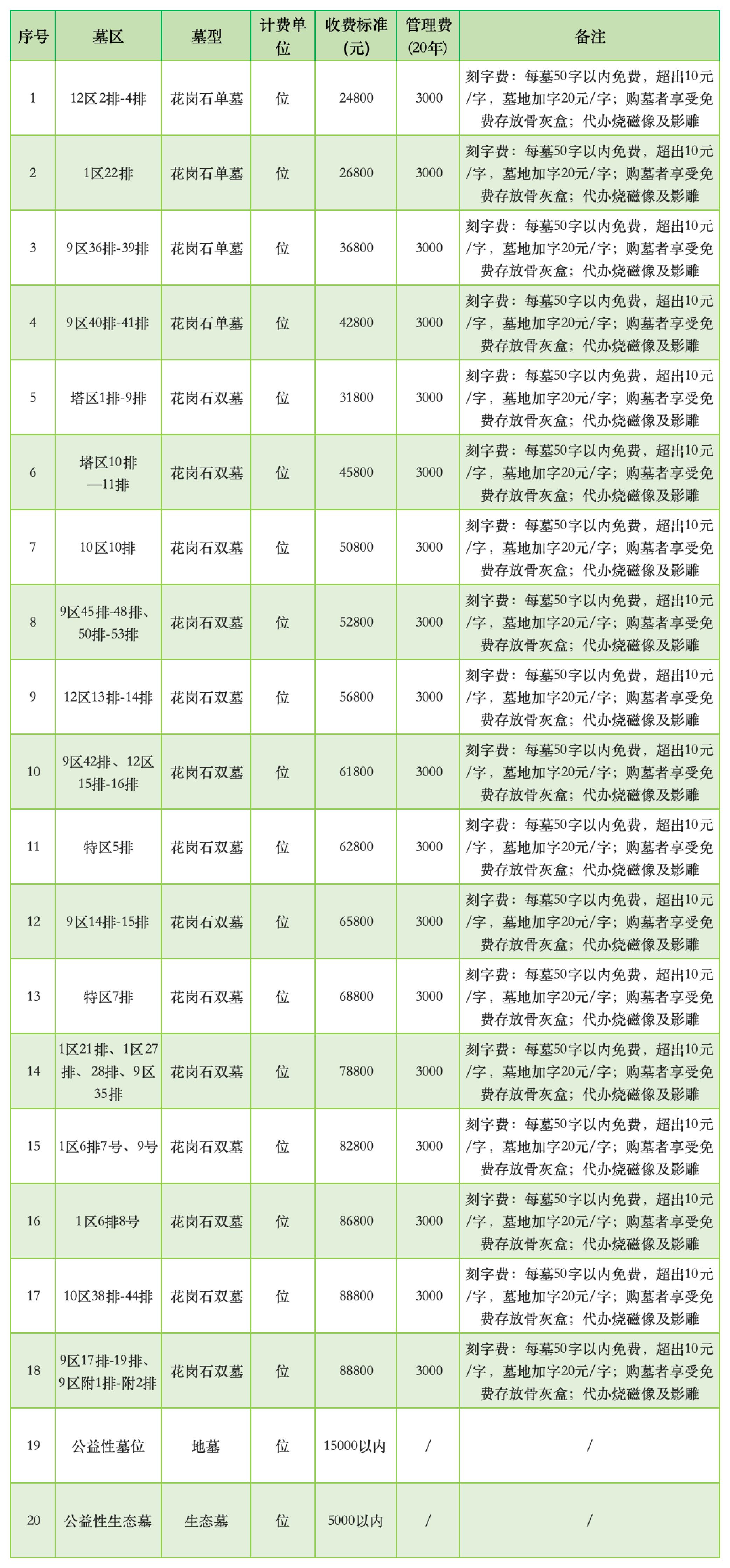 观音山陵园价格公示