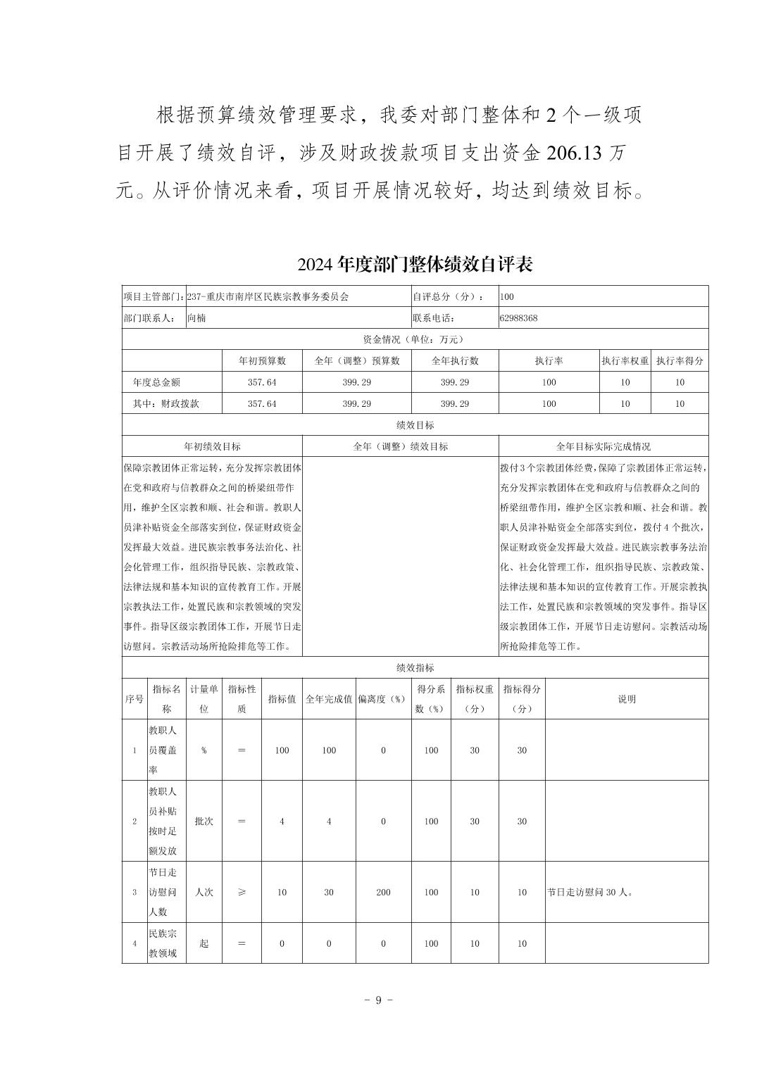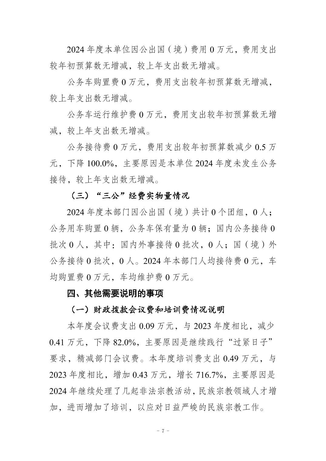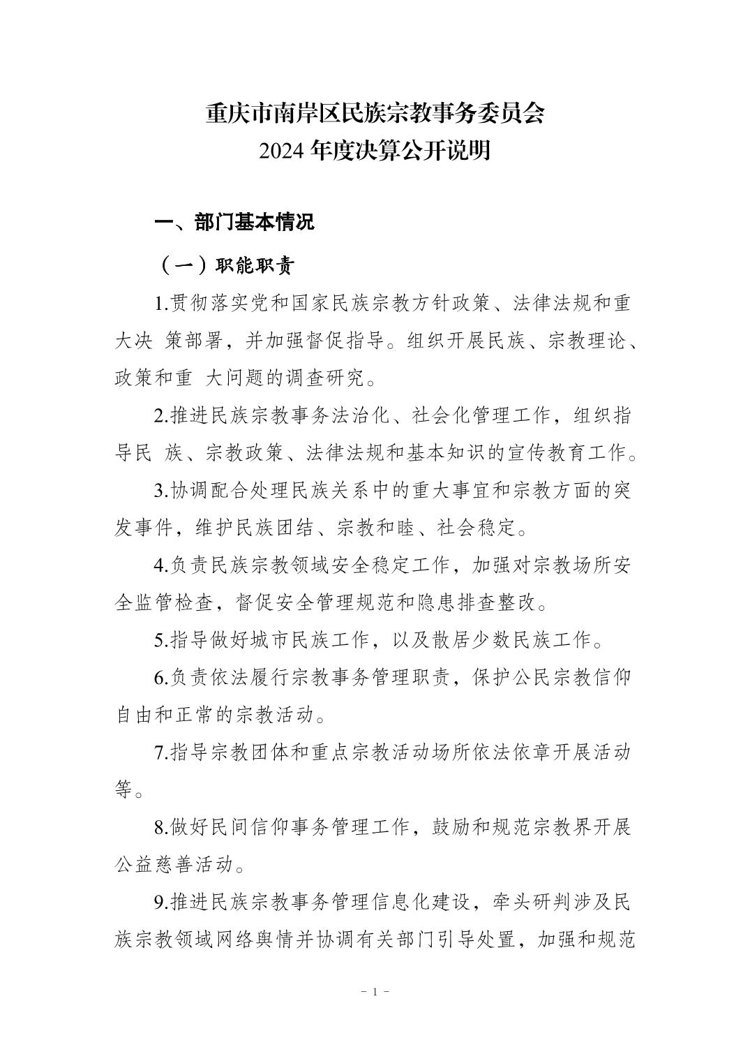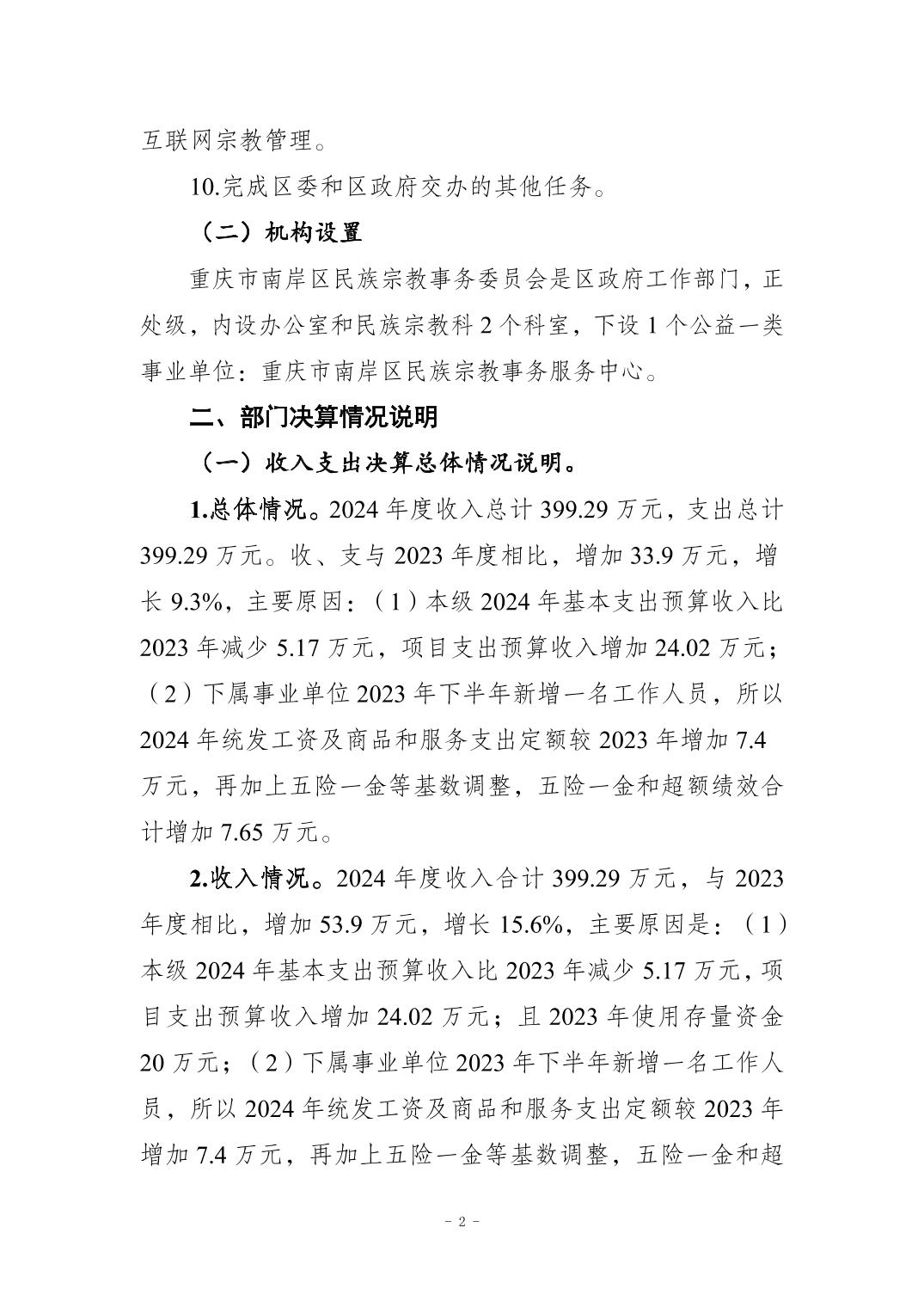 重庆市南岸区民族宗教事务委员会2024年度决算公开说明