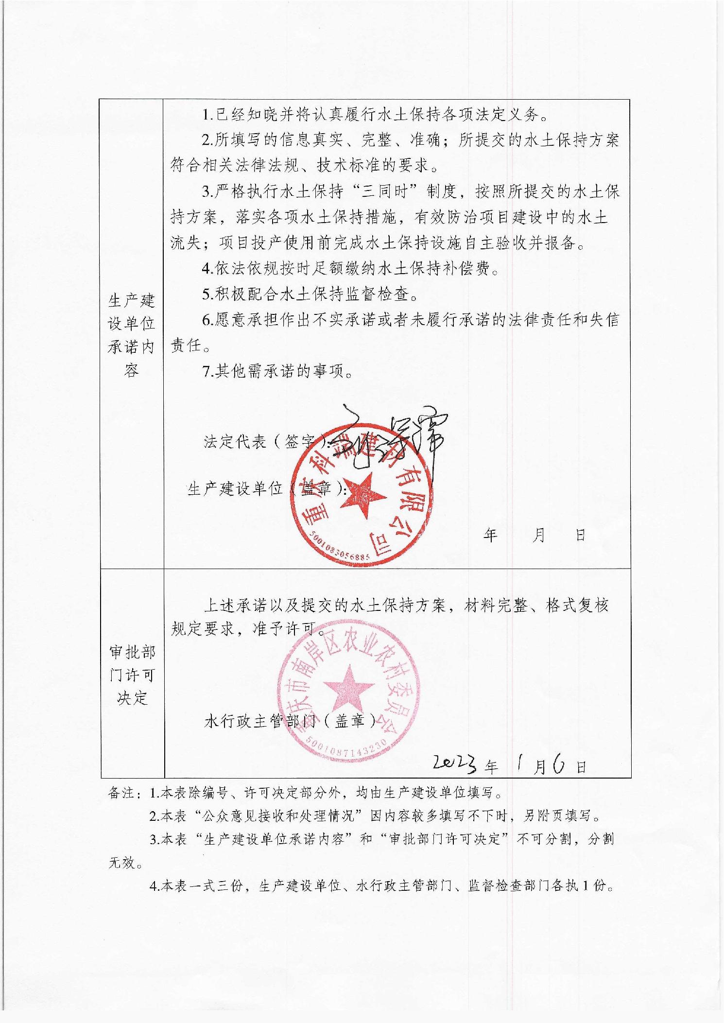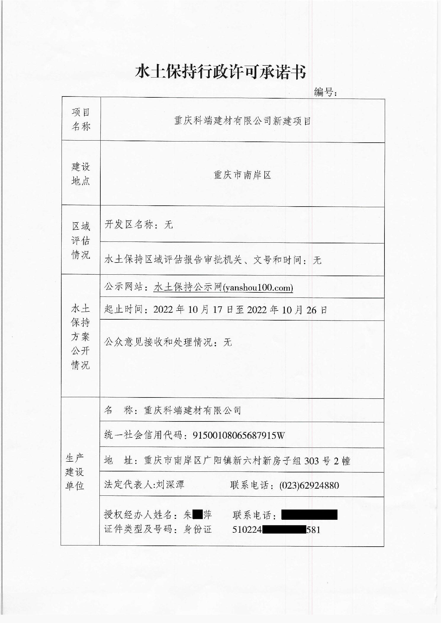 重庆科端建材有限公司新建项目水土保持行政许可承诺书