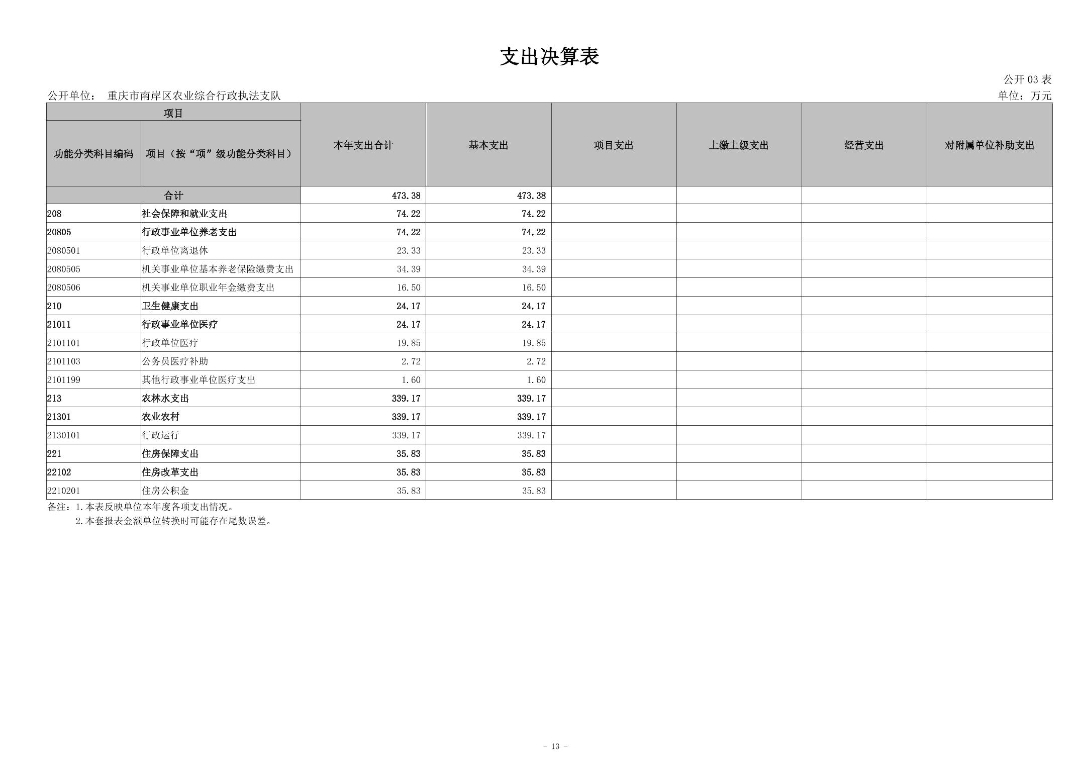 重庆市南岸区农业综合行政执法支队2024年度决算公开说明