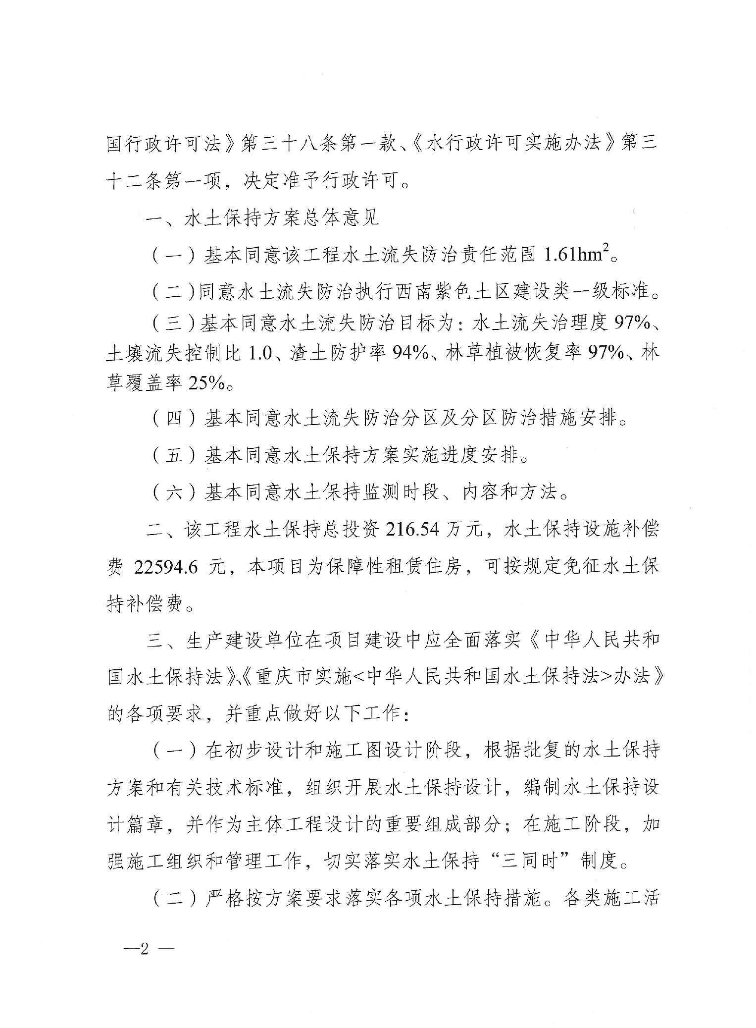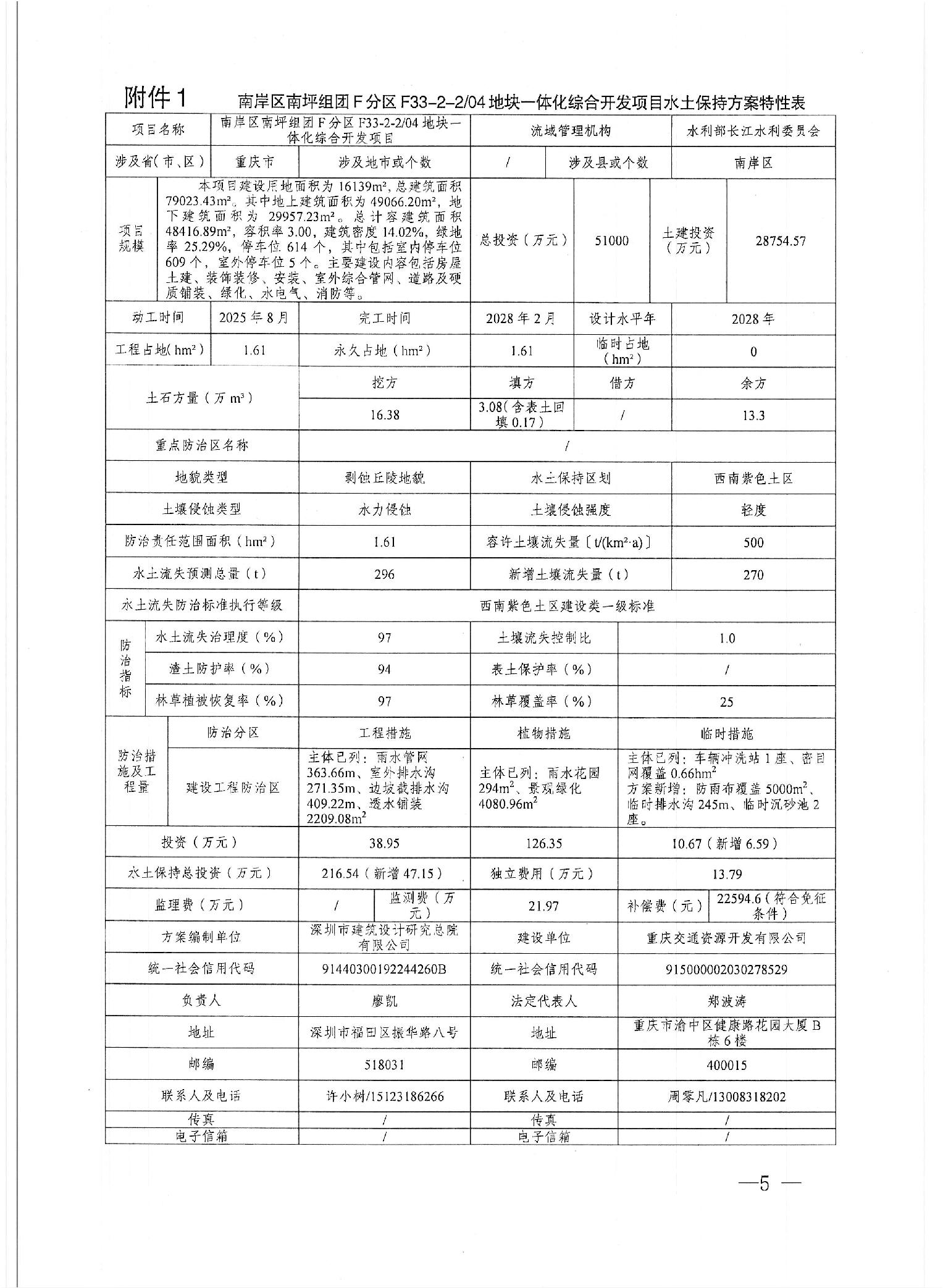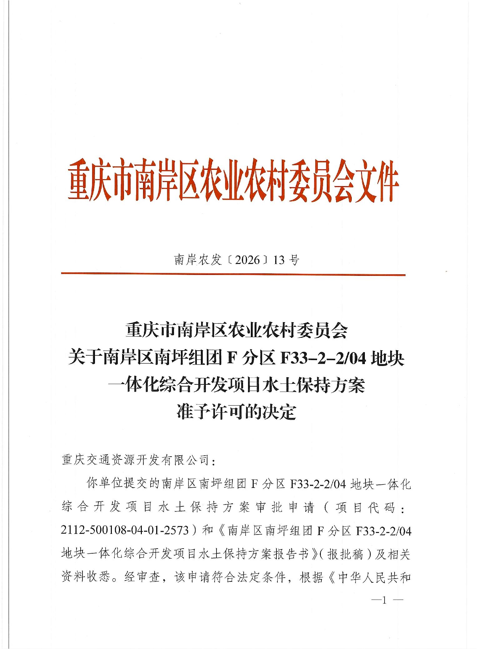 关于南岸区南坪组团F分区F33-2-204地块一体化综合开发项目水土保持方案准予许可的决定