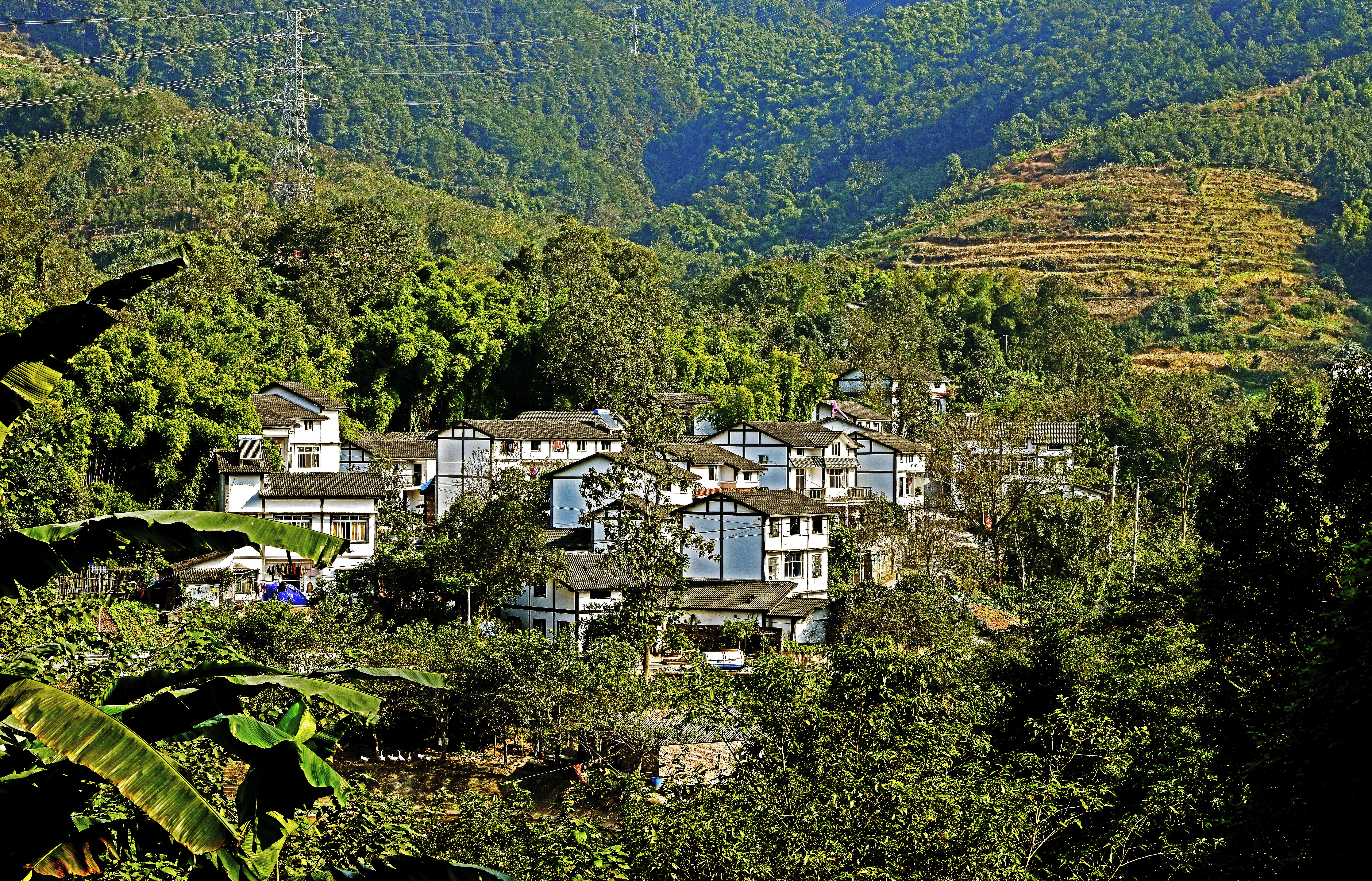 南山街道广阳镇银湖村绿树掩映小山村