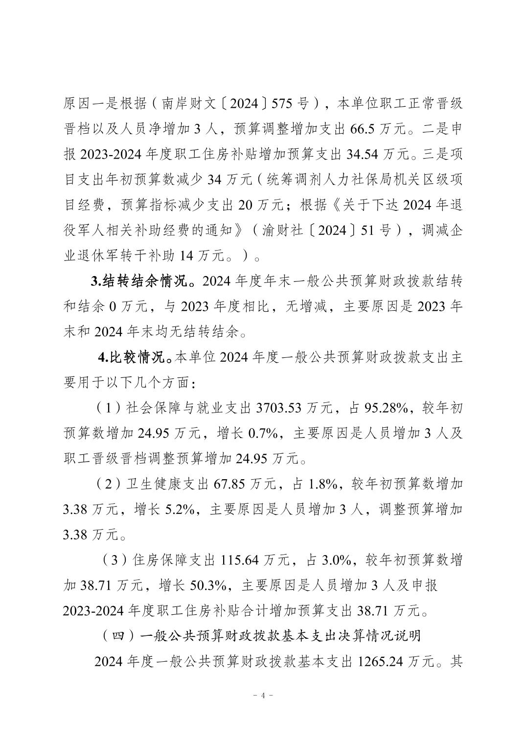 重庆市南岸区社会保险事务中心2024年度决算公开说明