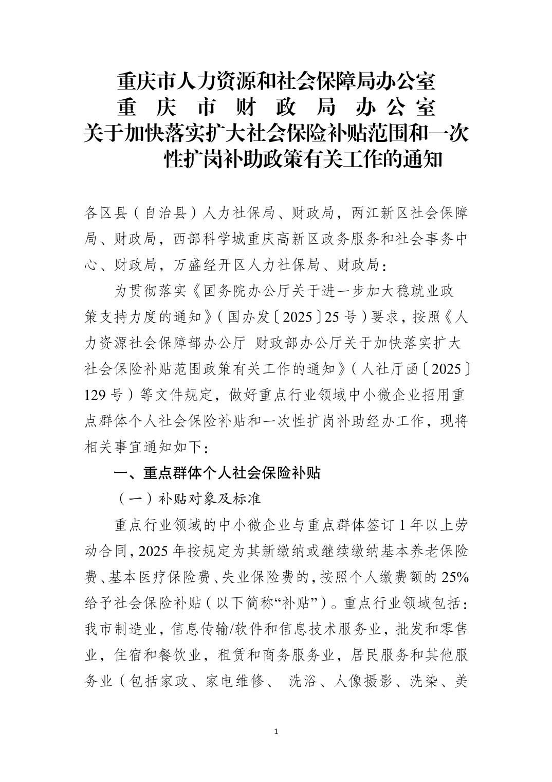 关于加快落实扩大社会保险补贴范围和一次性扩岗补助政策有关工作的通知