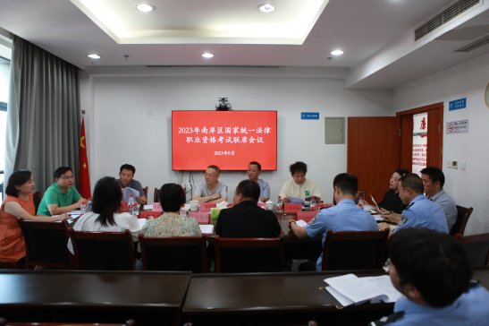 为做好南岸区2023年国家统一法律职业资格考试组织实施工作,9月8日上午,南岸区组织召开了2023年国家统一法律职业资格考试联席会议。区政府办公室副主任、区信访办主任王武主持会议并讲话,区司法局、区委网信办、区保密局、区公安分局、考点学校等14家单位的分管负责人参加了会议。