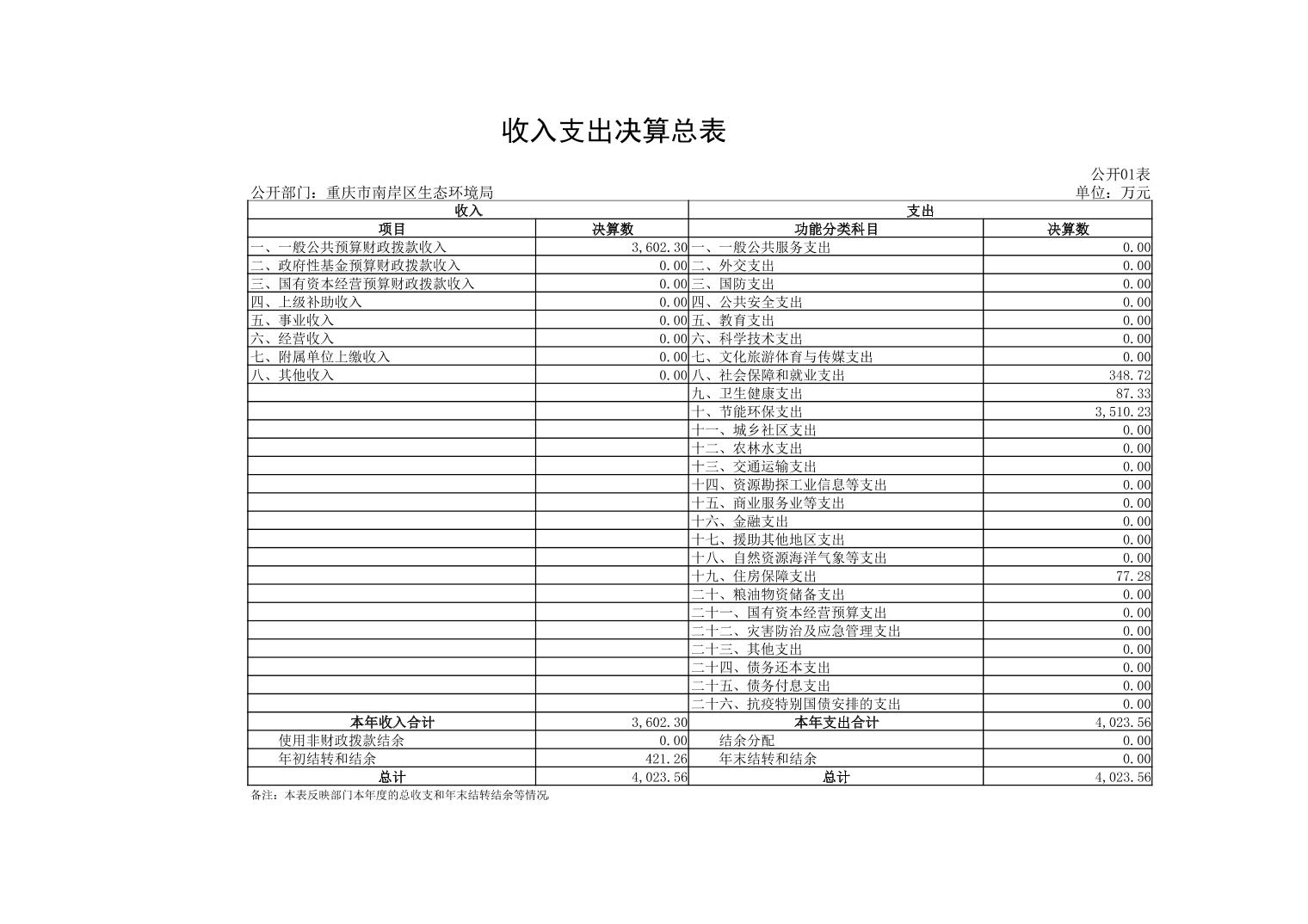 区生态环境局>政务公开>法定主动公开内容>预算/决算>财政决算