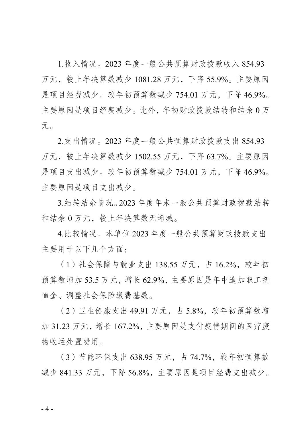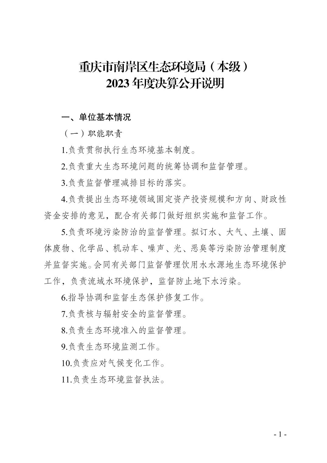 重庆市南岸区生态环境局(本级)2023年度决算公开说明