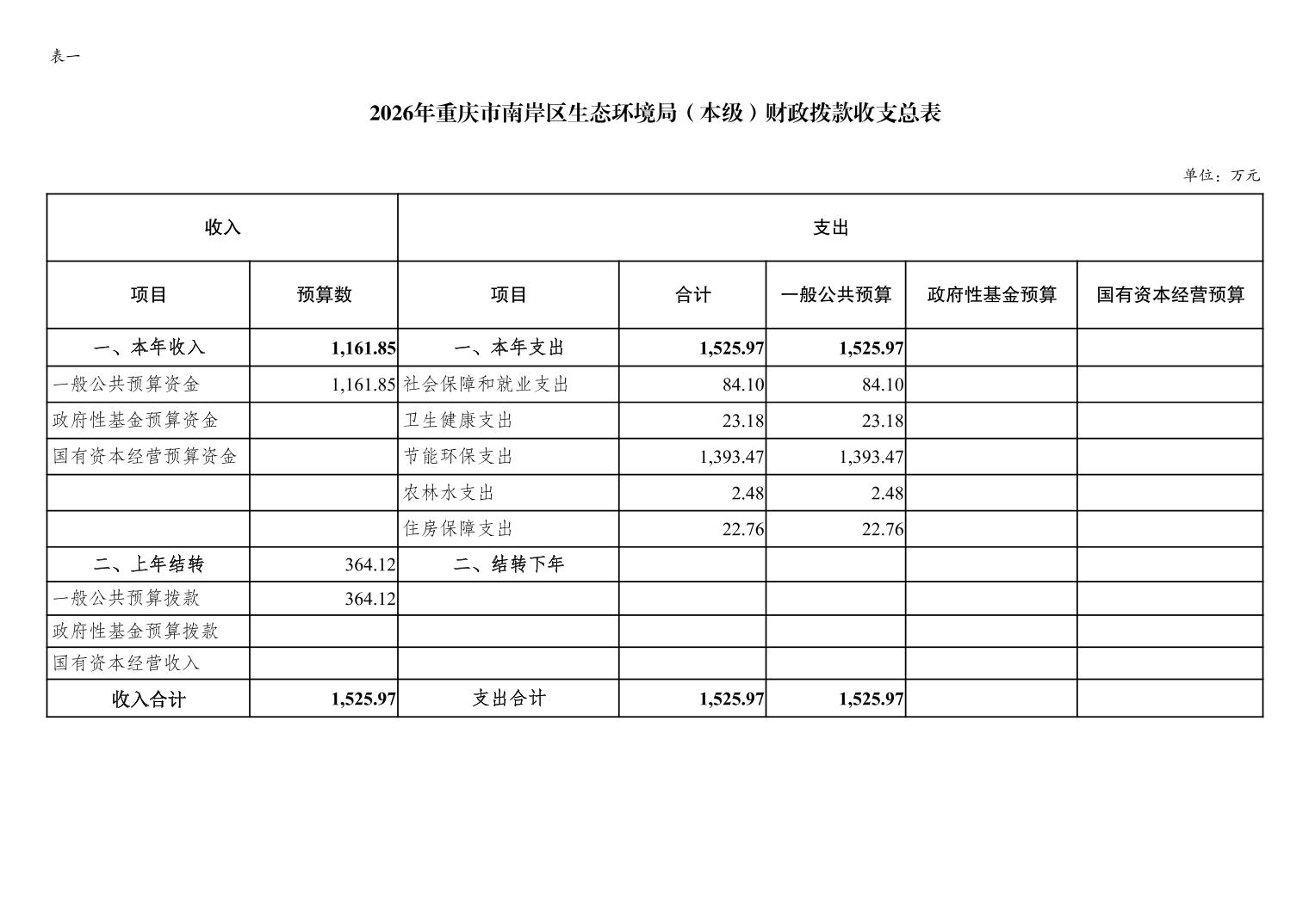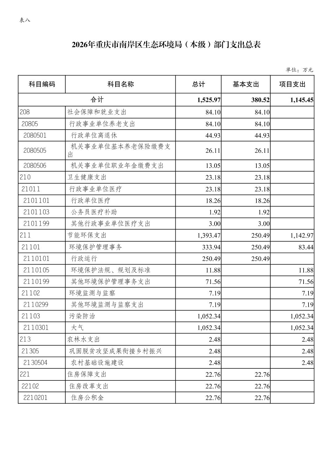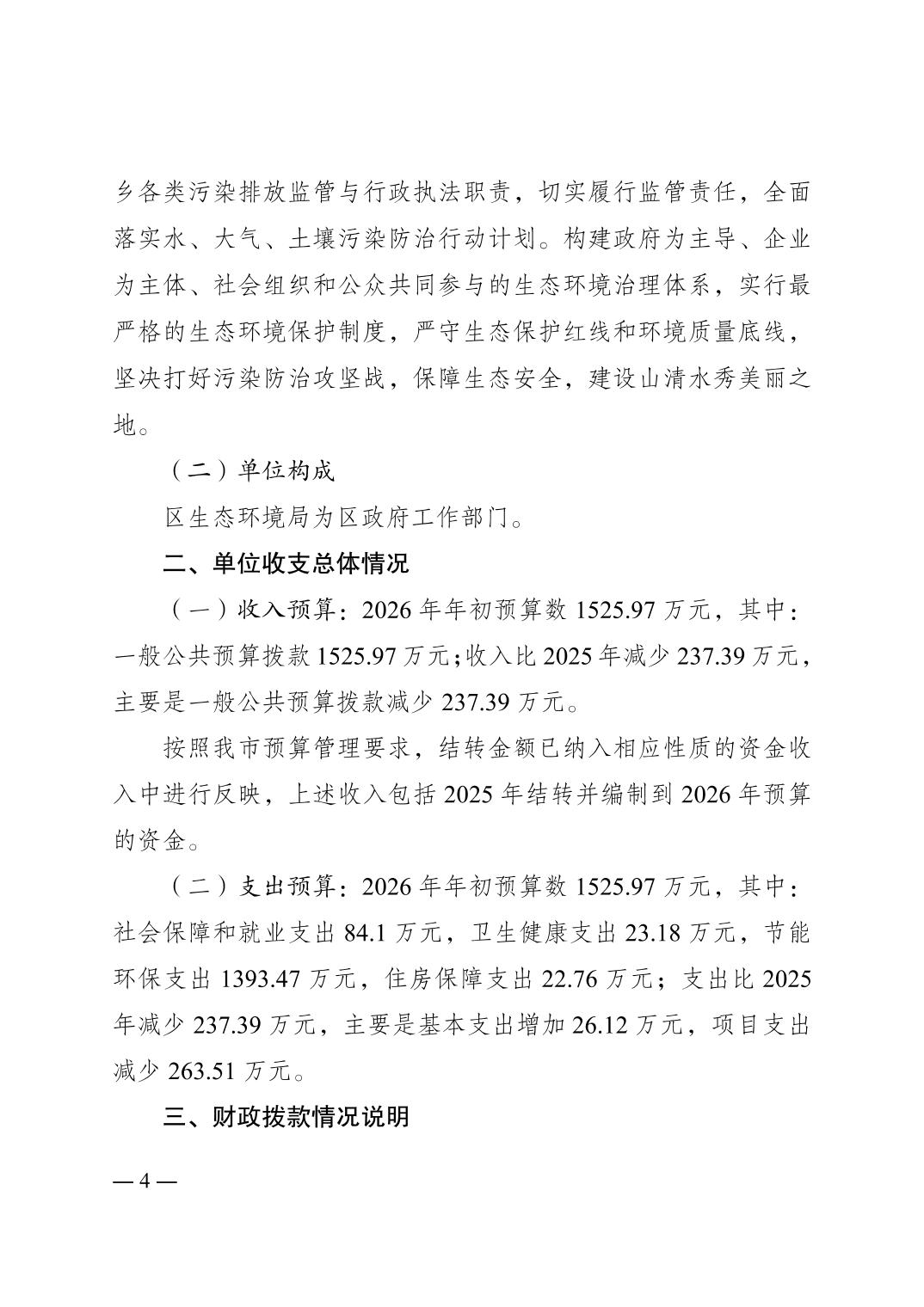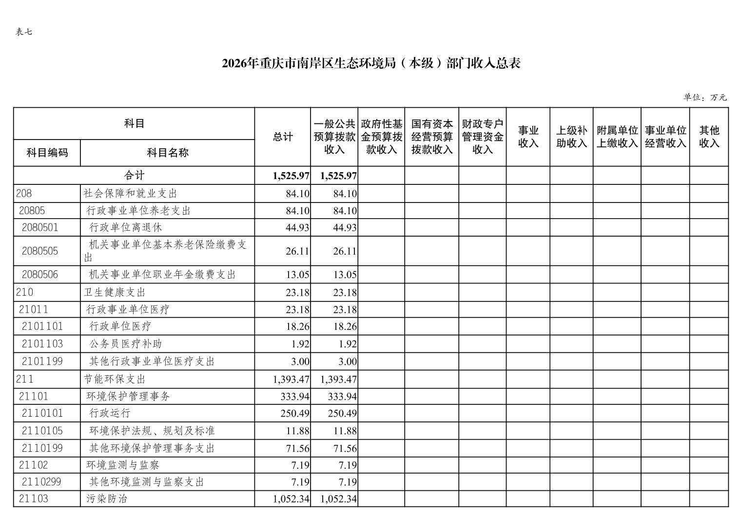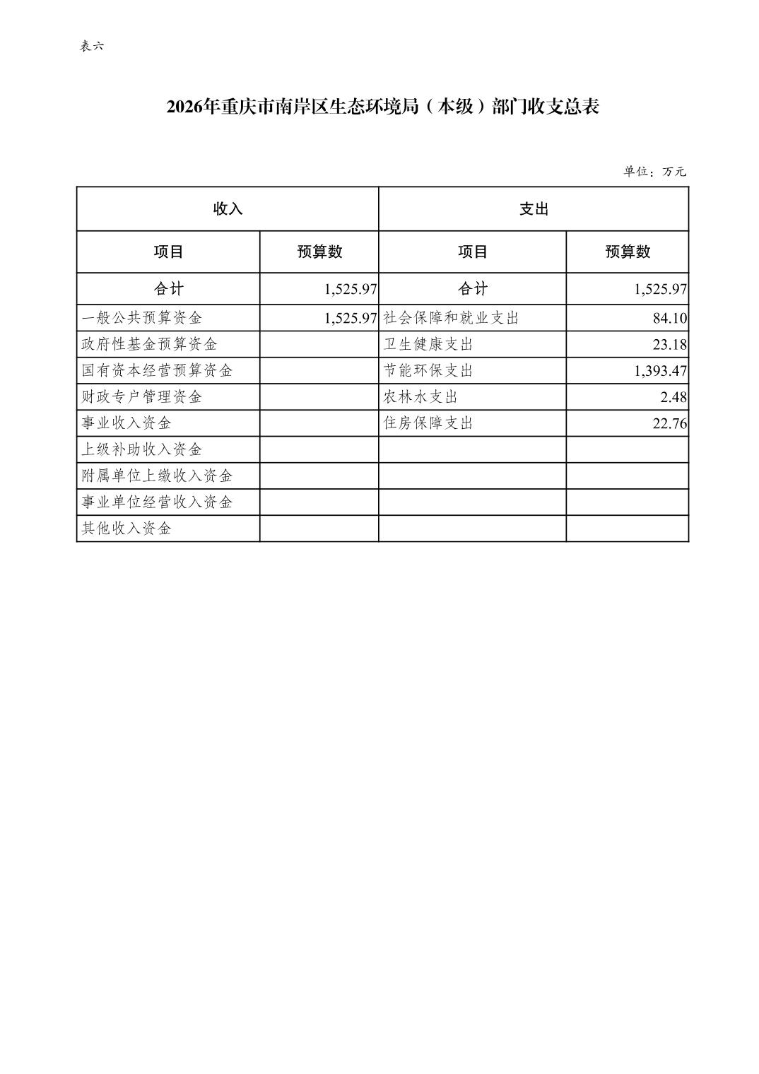 重庆市南岸区生态环境局2026年单位预算情况说明