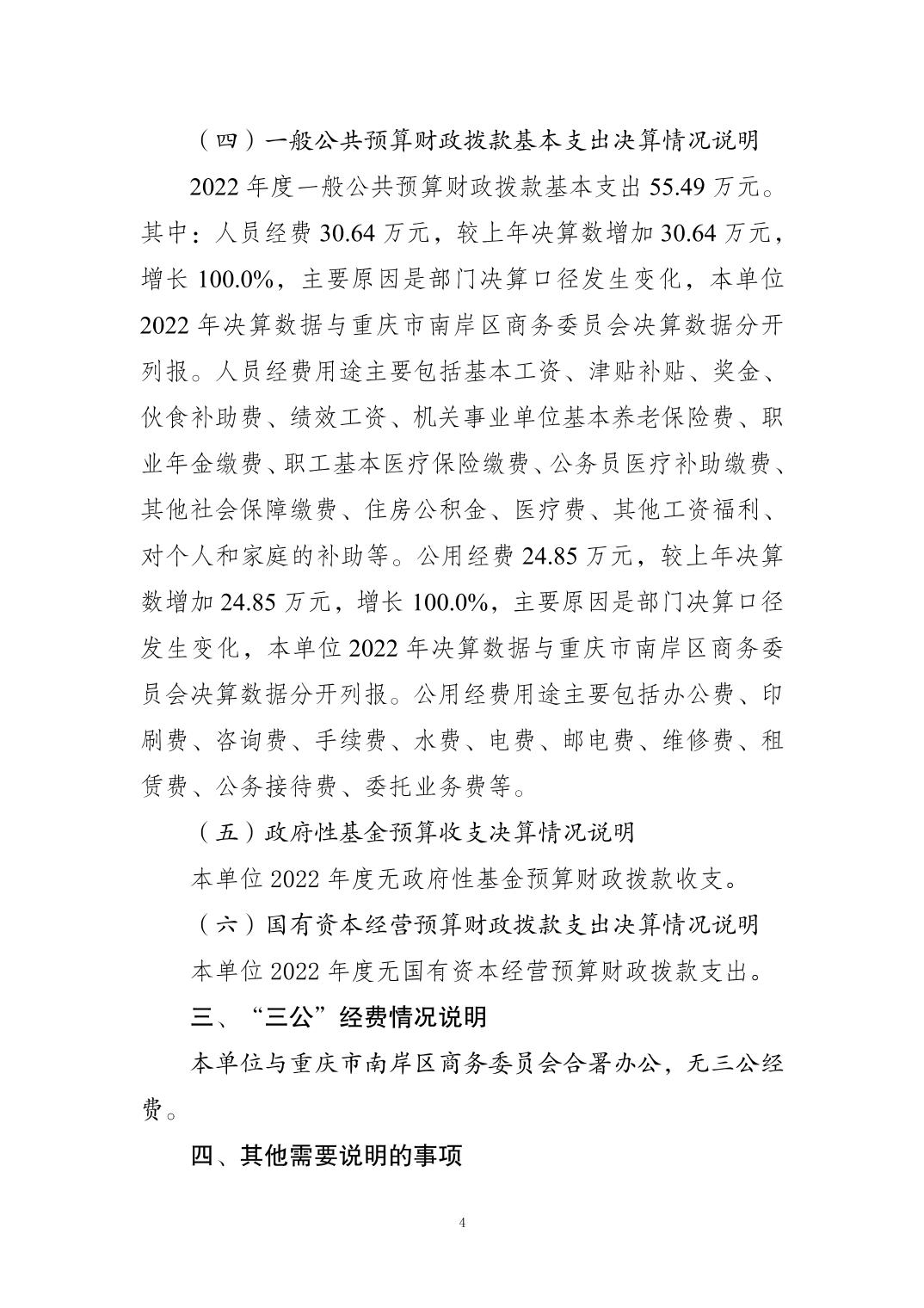 重庆市南岸区口岸物流服务中心2022年度部门决算情况说明