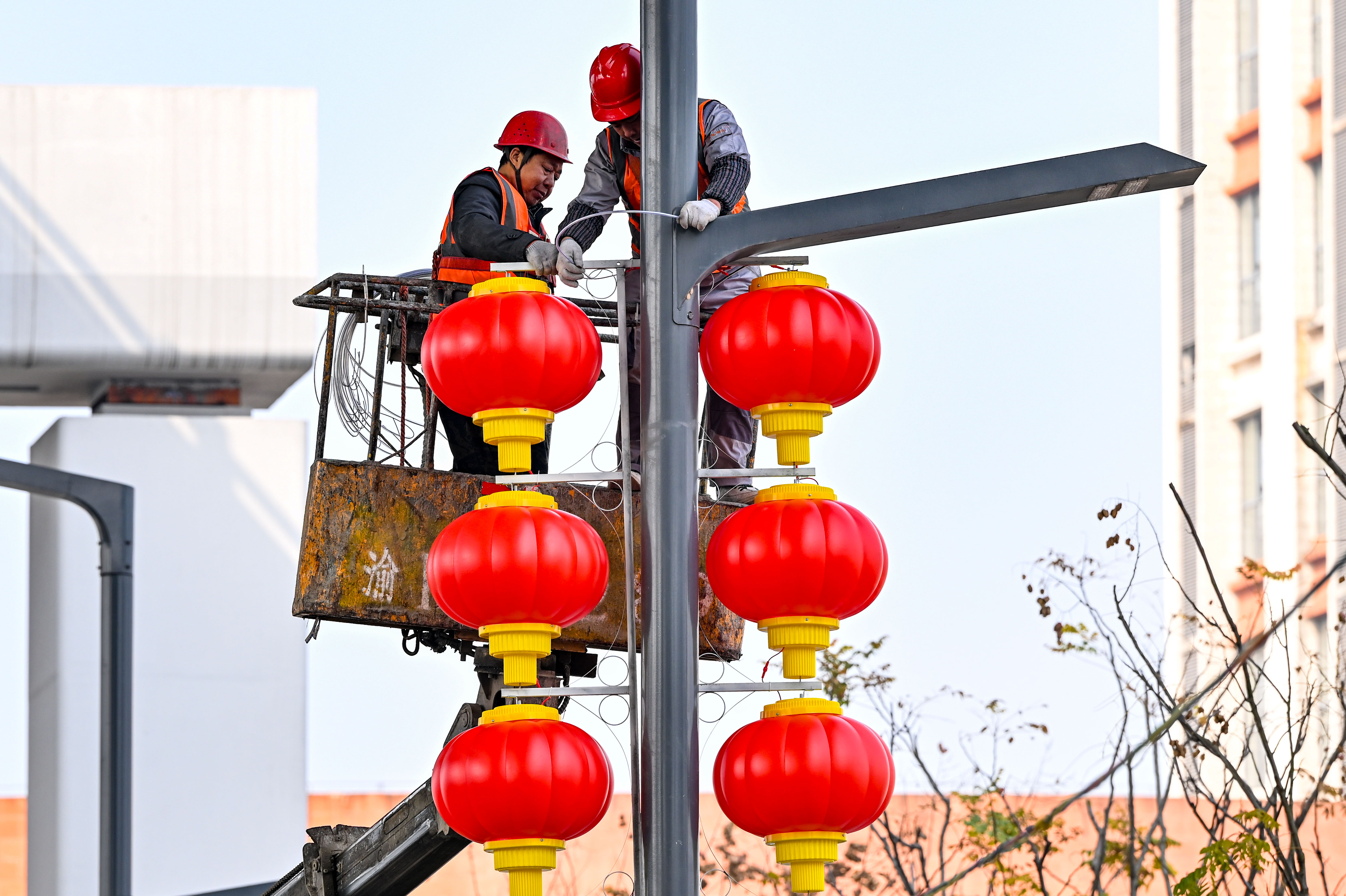 1月27日下午,南岸区广福大道、玉马路,工作人员正忙着悬挂灯笼,营造浓厚的节日氛围。随着春节的日益临近,年味也逐渐浓了起来。
