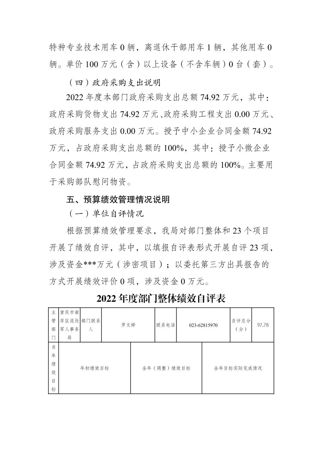 重庆市南岸区退役军人事务局2022年度部门决算情况说明