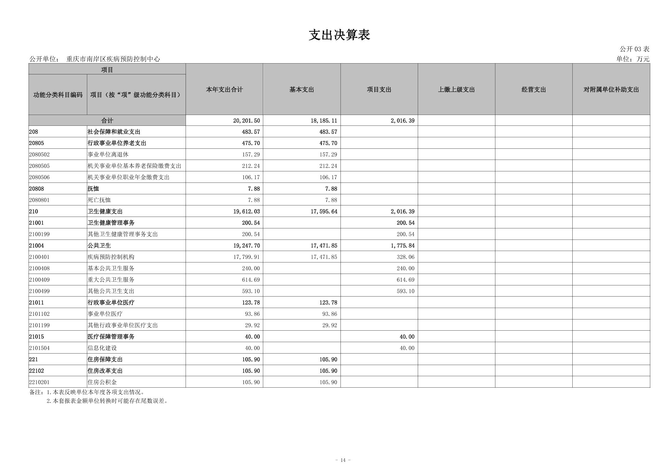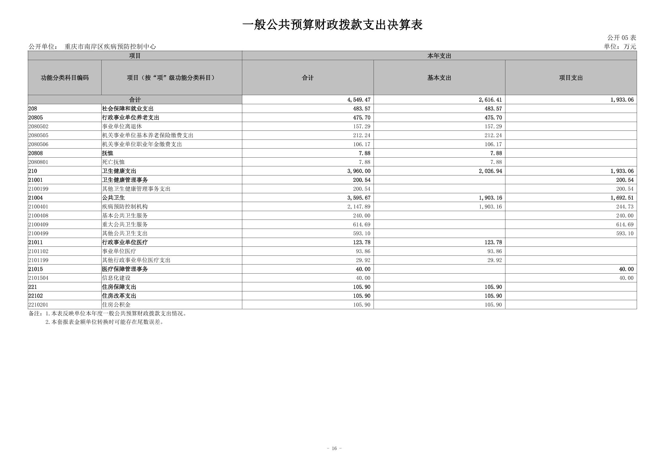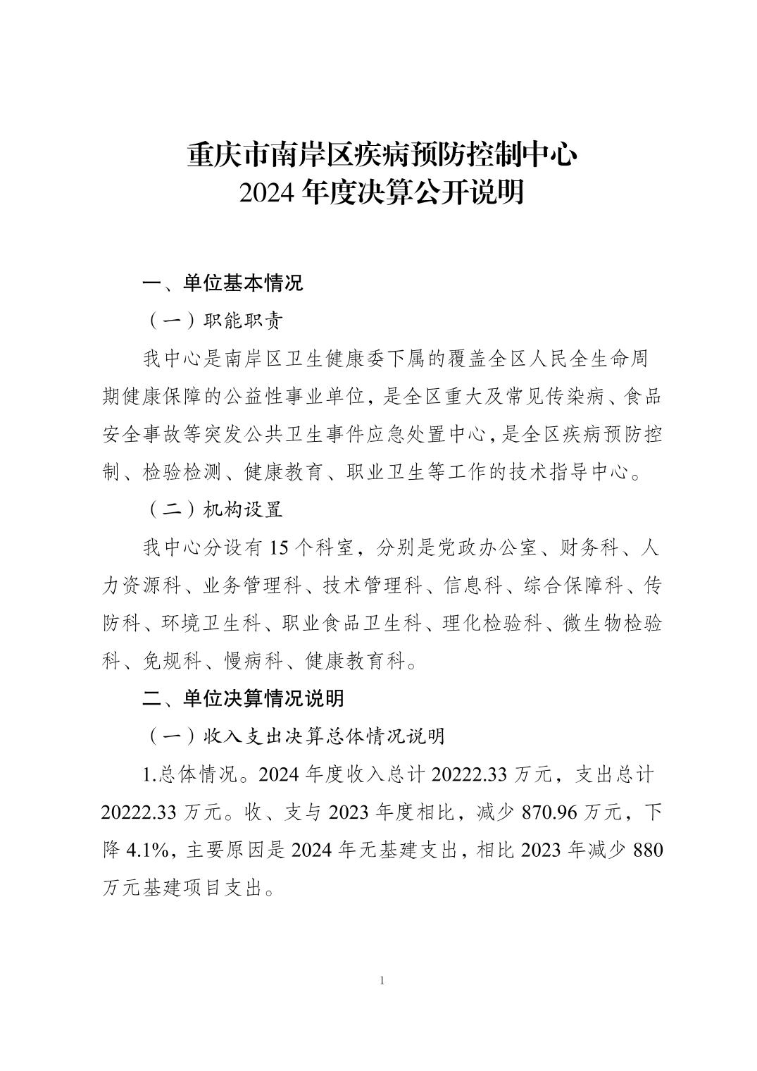 2024年度重庆市南岸区疾病预防控制中心决算公开