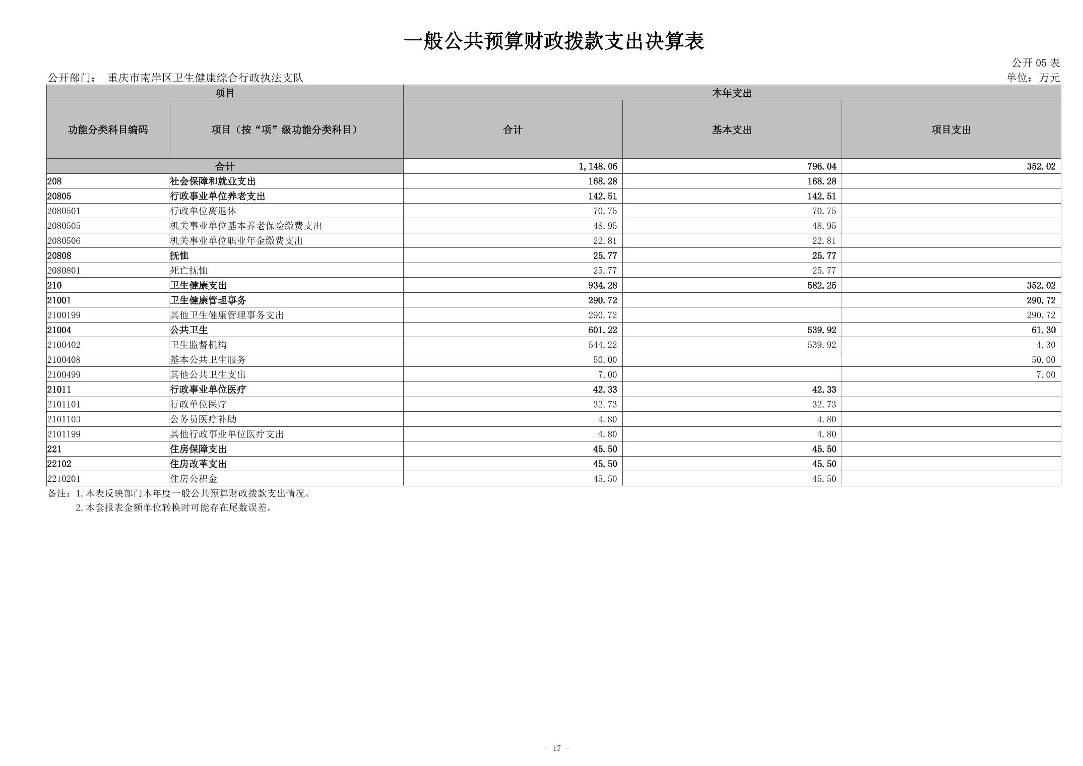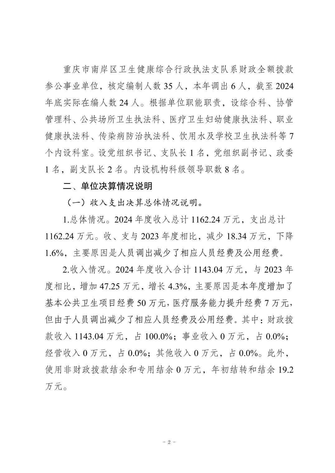 2024年度重庆市南岸区卫生健康综合行政执法支队决算公开