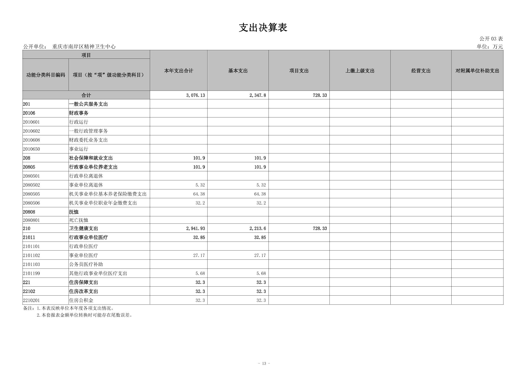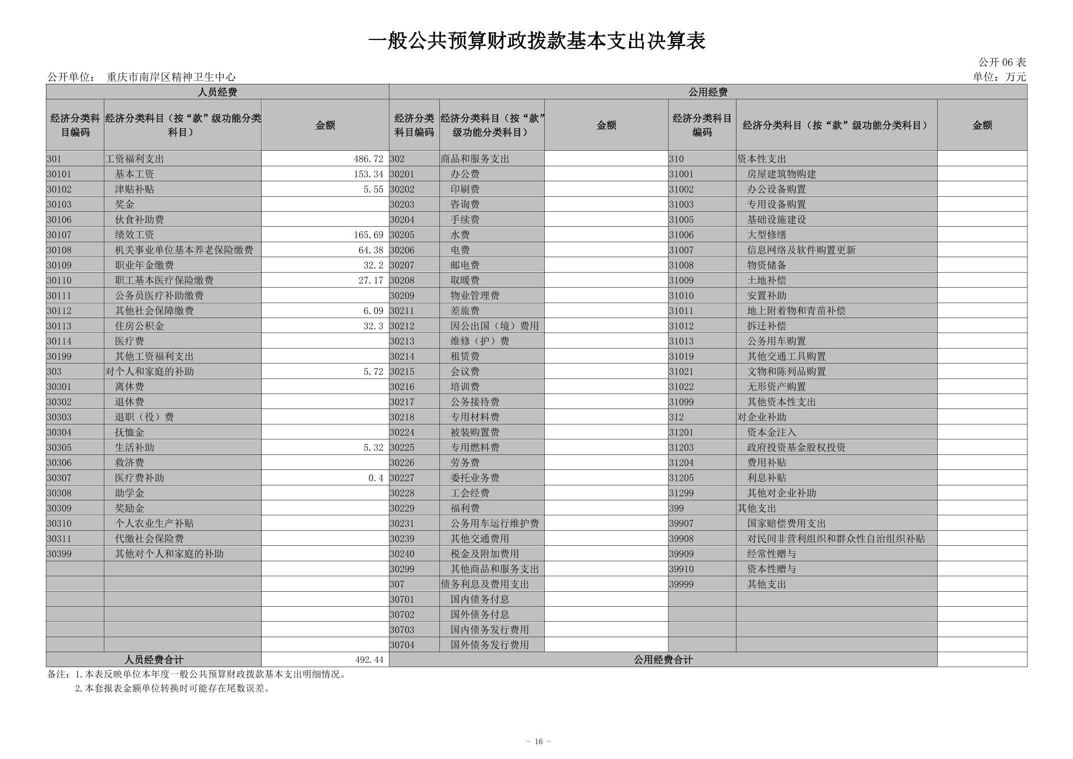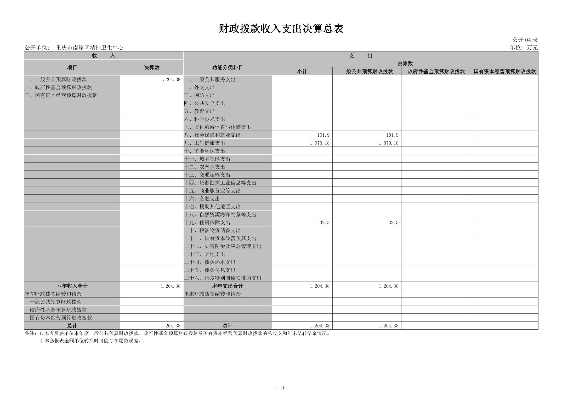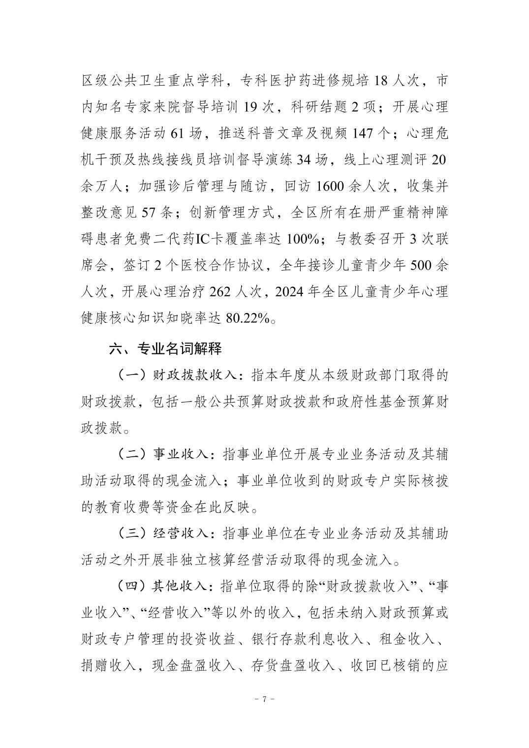 2024年度重庆市南岸区精神卫生中心决算公开