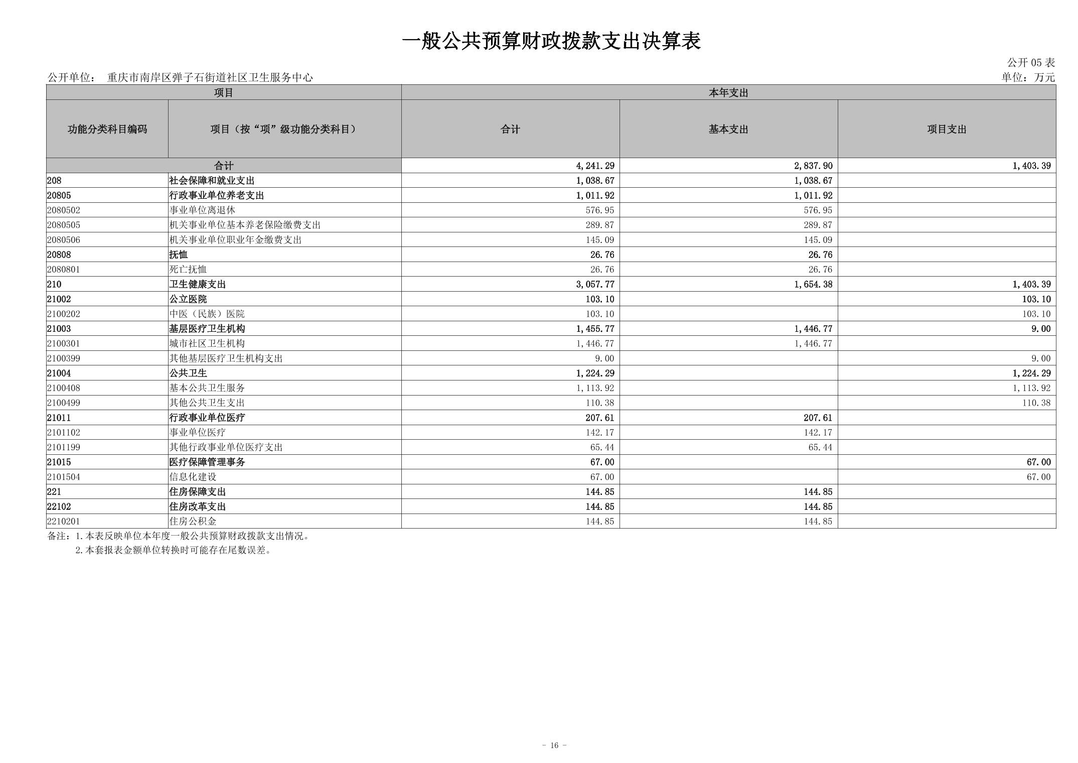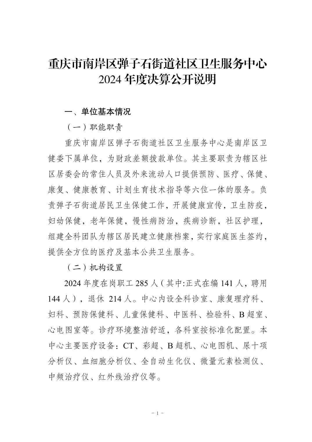 2024年度重庆市南岸区弹子石街道社区卫生服务中心决算公开